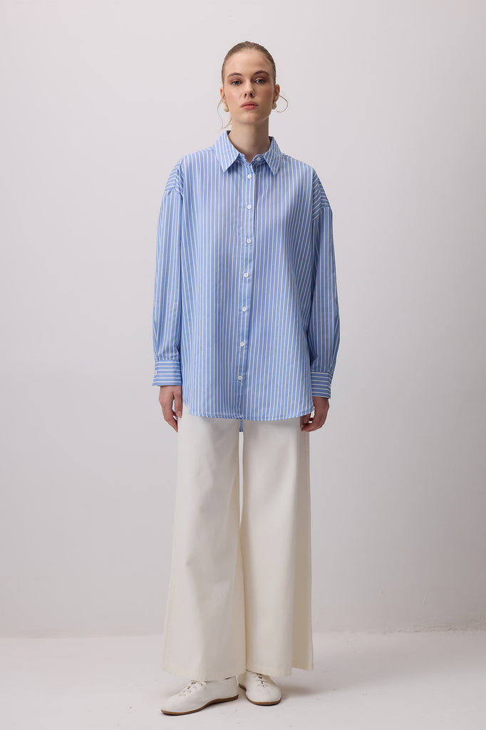 Bisiklet yaka. Uzun kollu ve manşetleri düğmeli. Kemerli ve çiçek aksesuarlı.