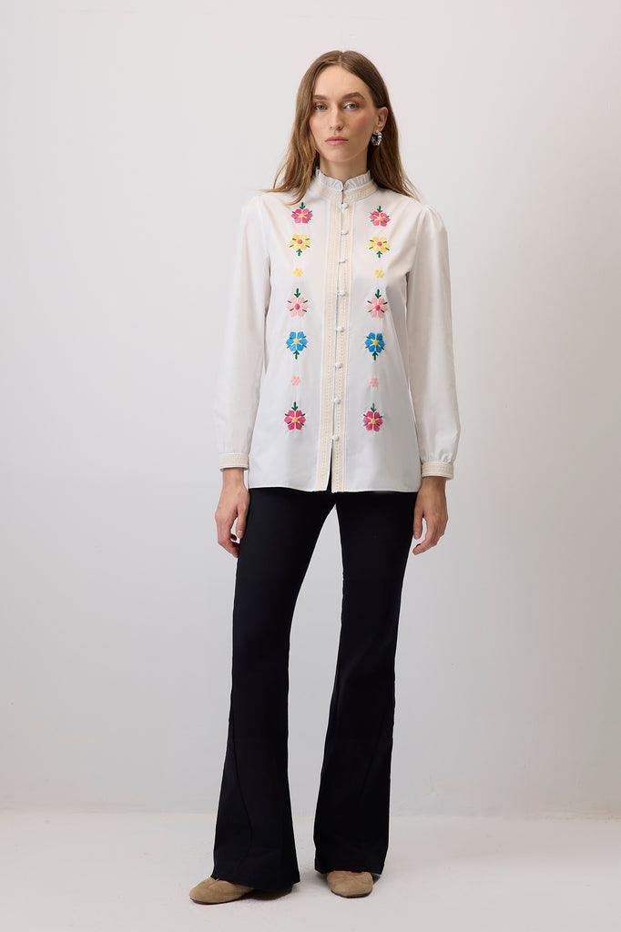 ÇİÇEK NAKIŞLI POPLİN GÖMLEK