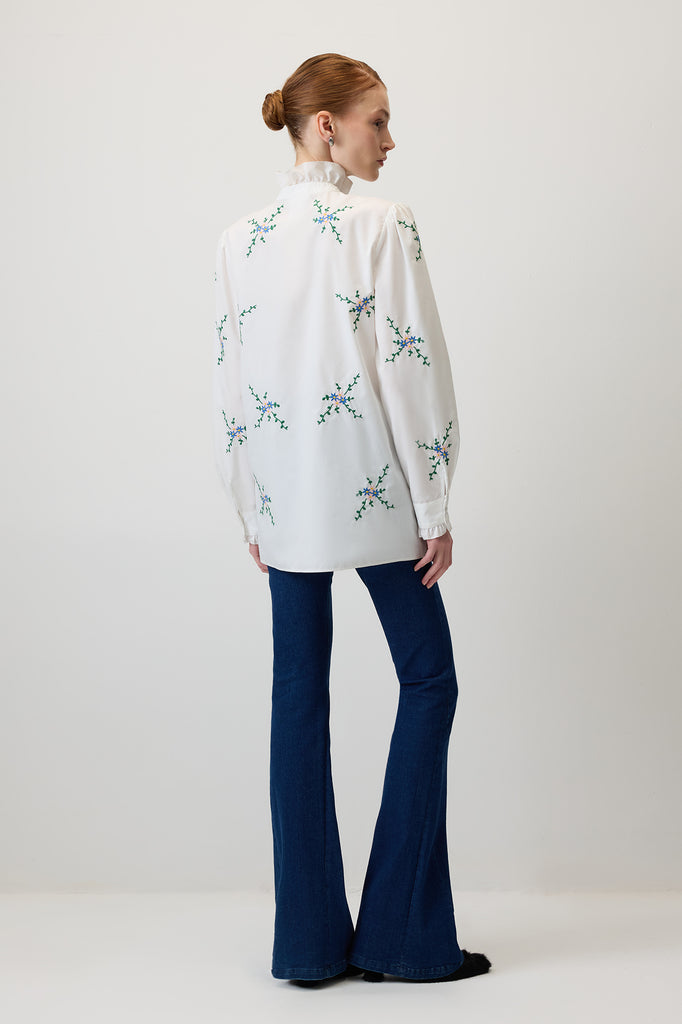 ÇİÇEK NAKIŞLI POPLİN GÖMLEK