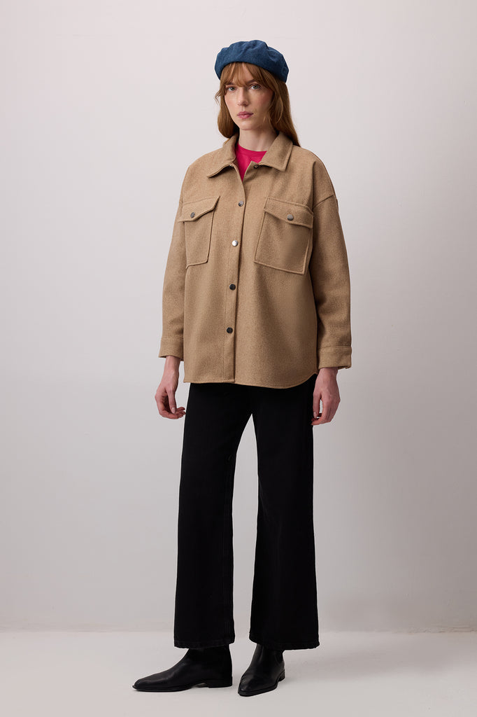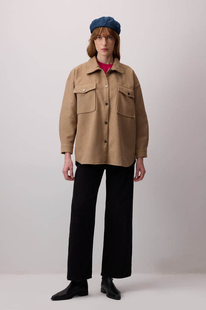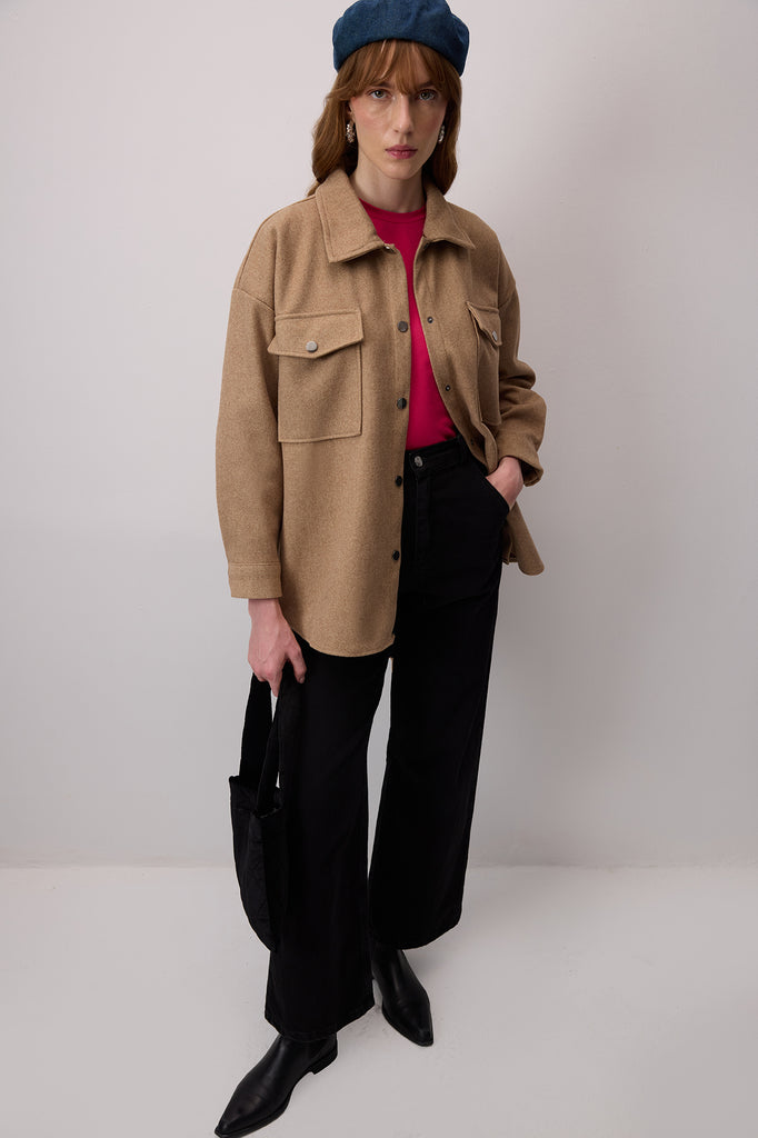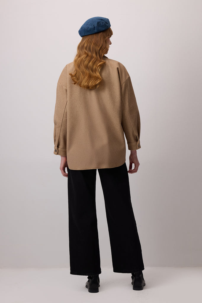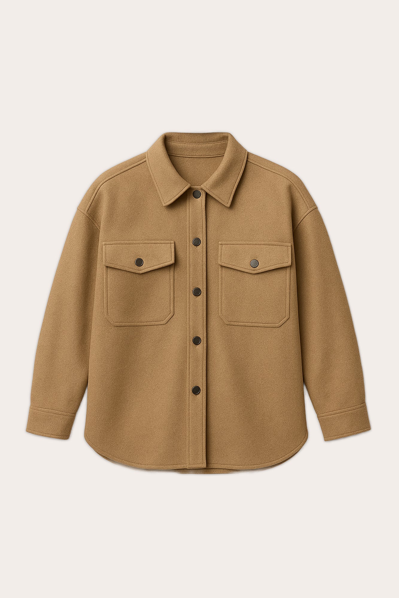 Klasik yaka. Uzun kollu ve manşetleri çıt çıt kapama. Göğüs hizasında kapaklı yama cepli. Önden çıt çıt kapama.