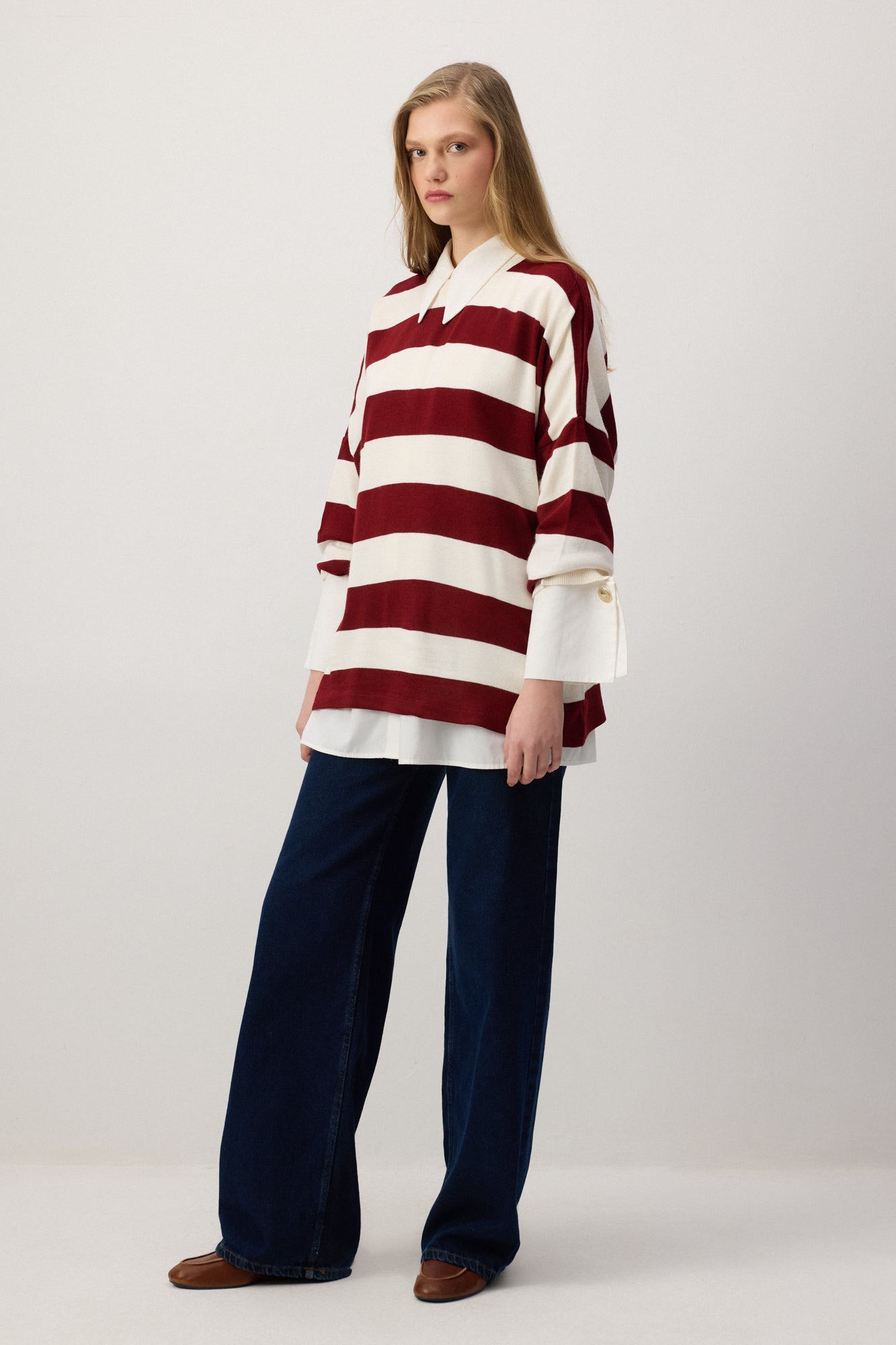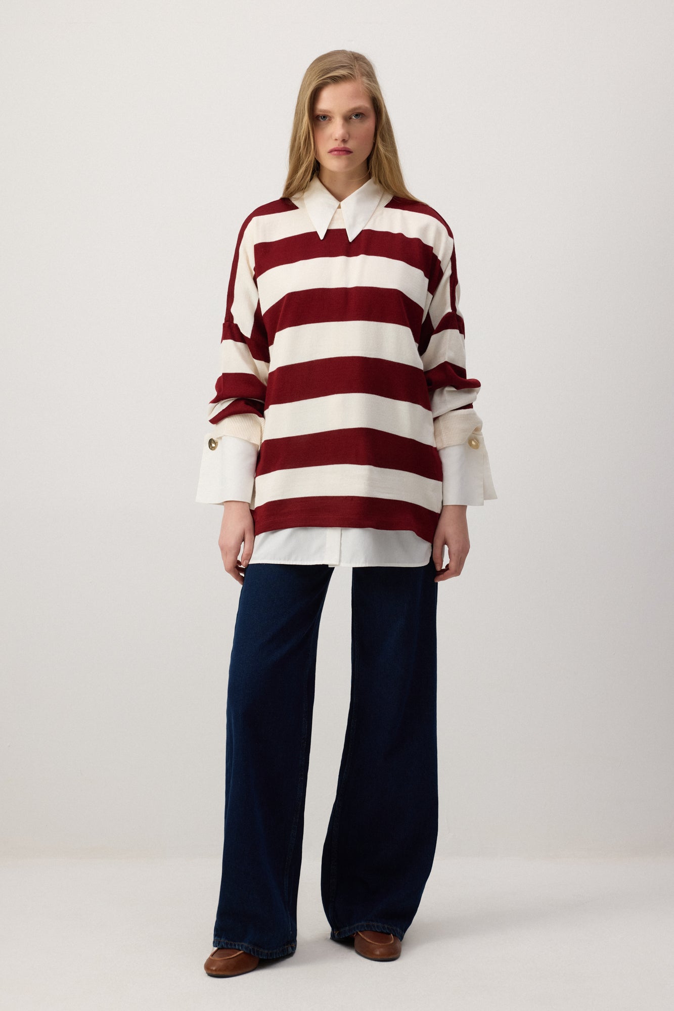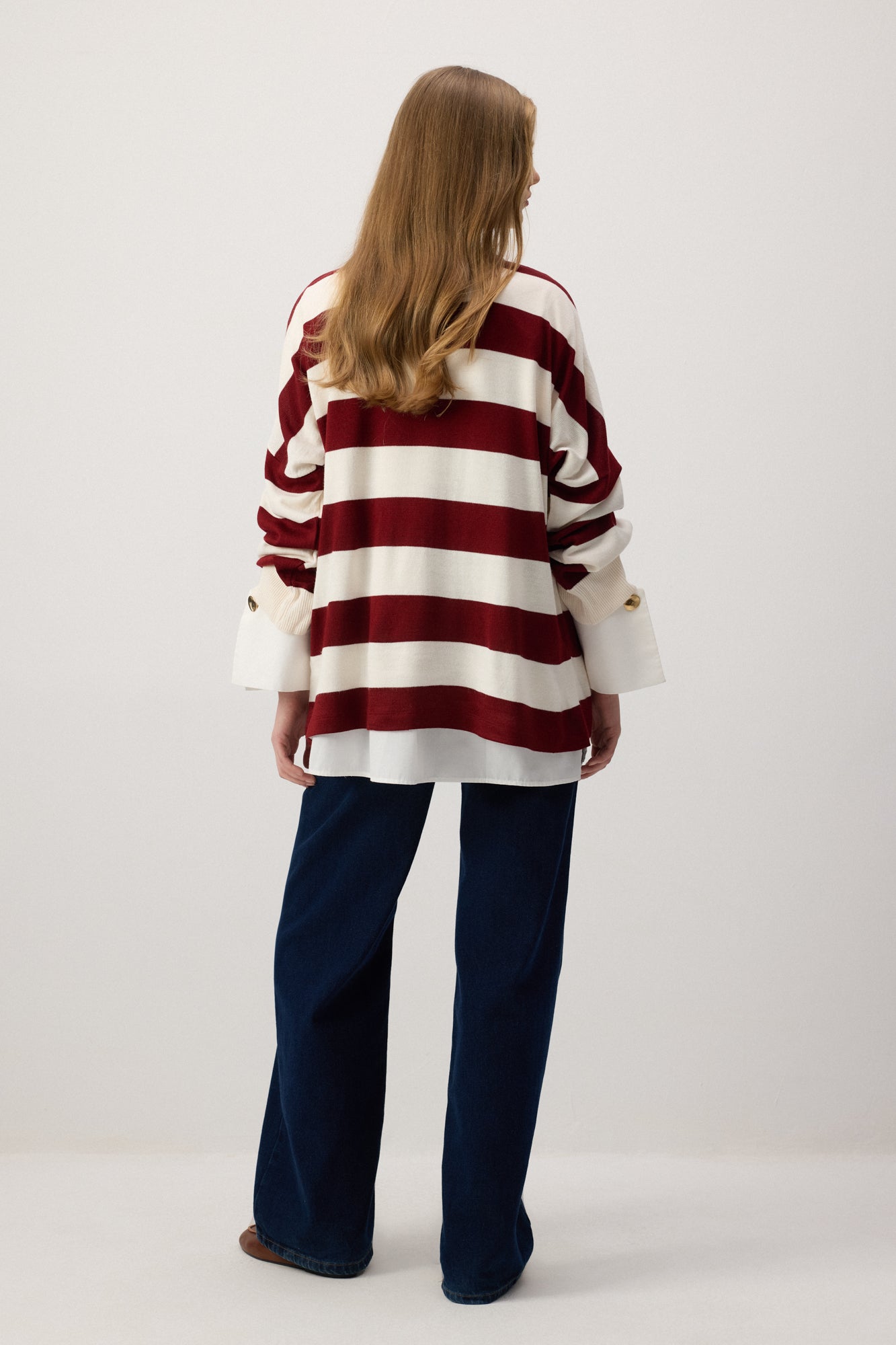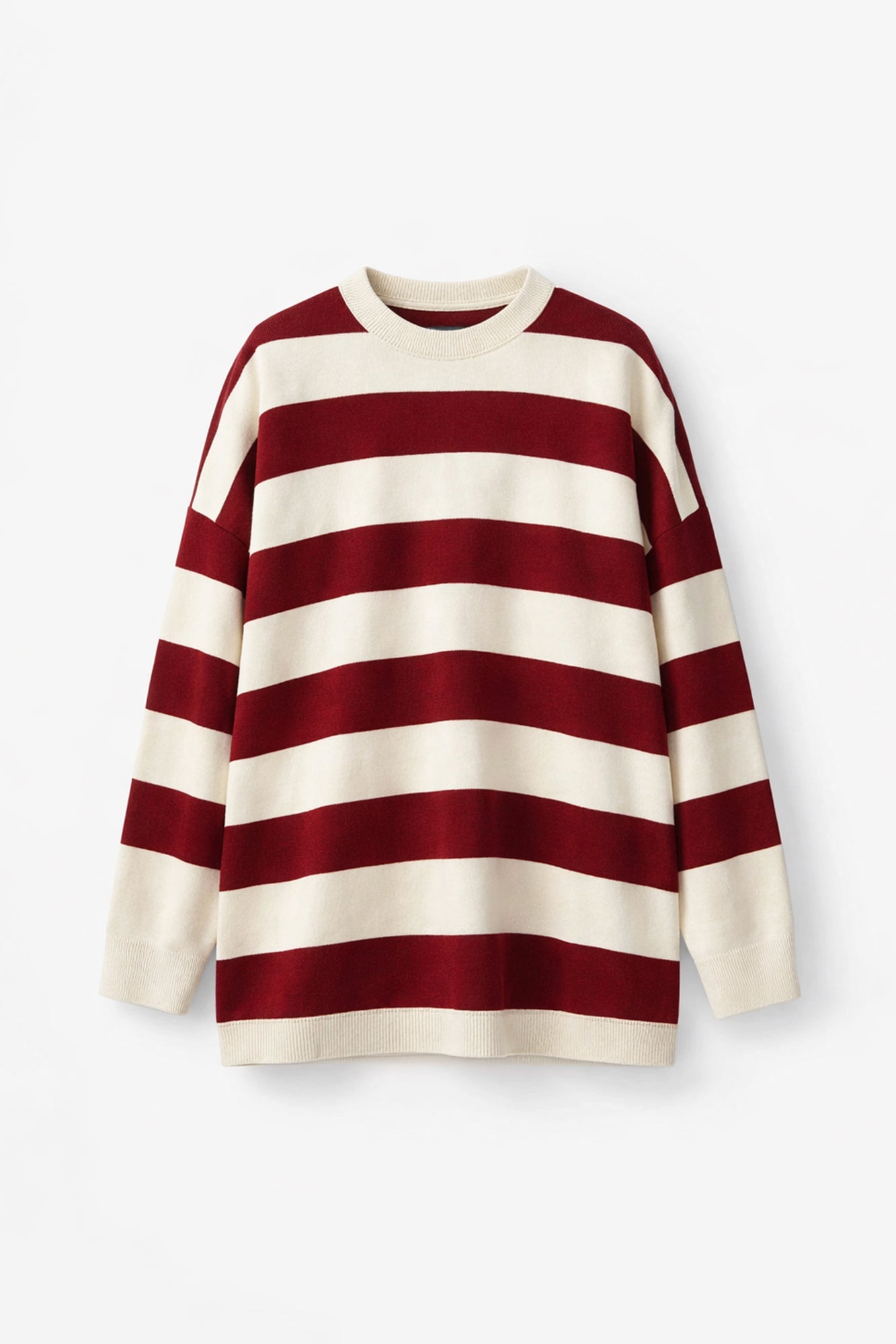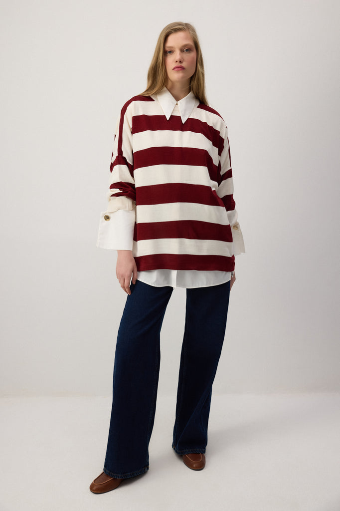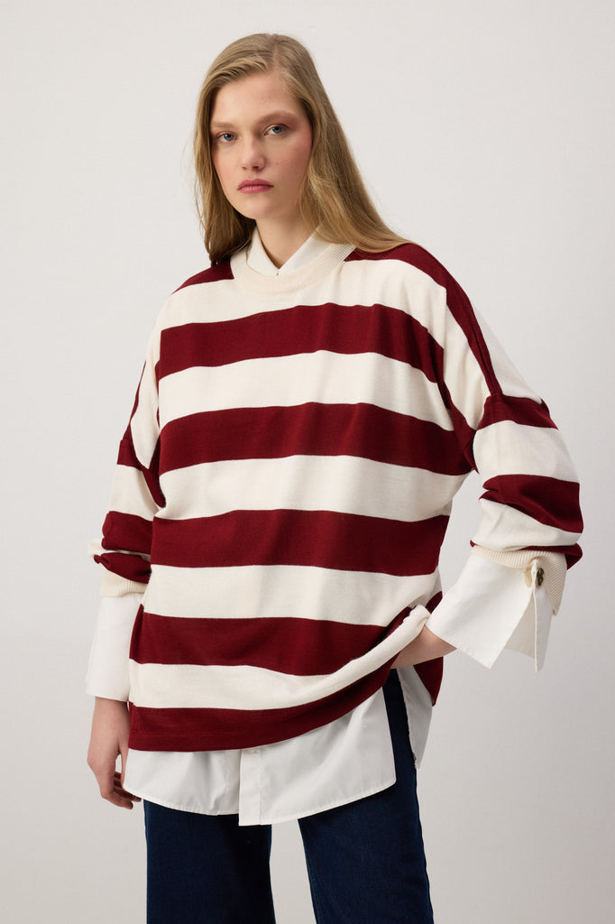 Çizgili oversize kazak. Bisiklet yaka. Uzun kollu