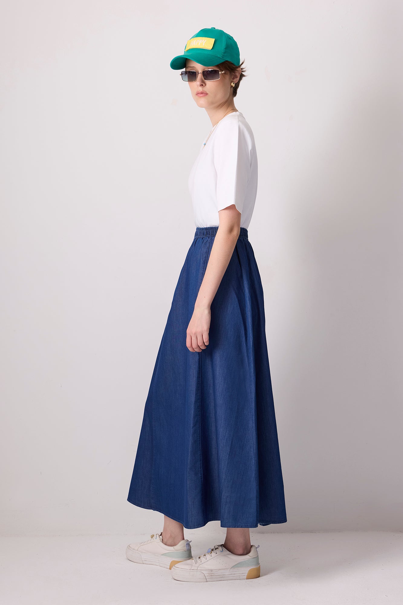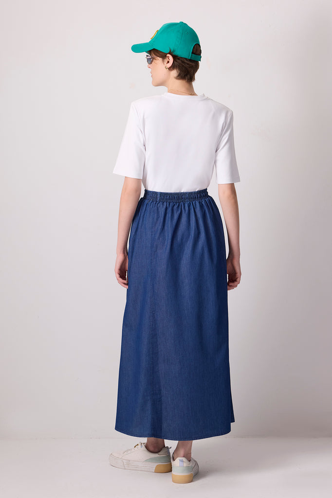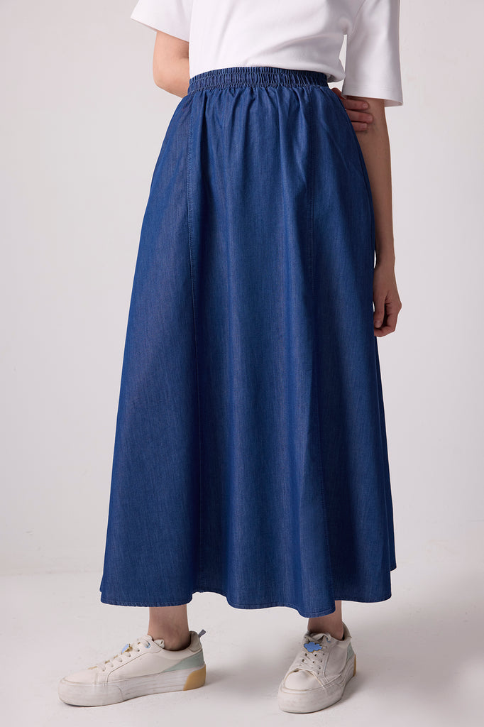 DENİM EFEKTLİ BELİ LASTİKLİ ETEK