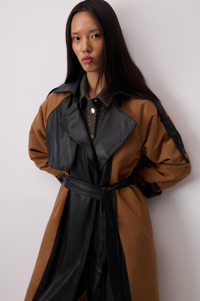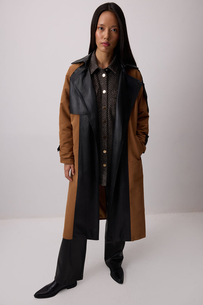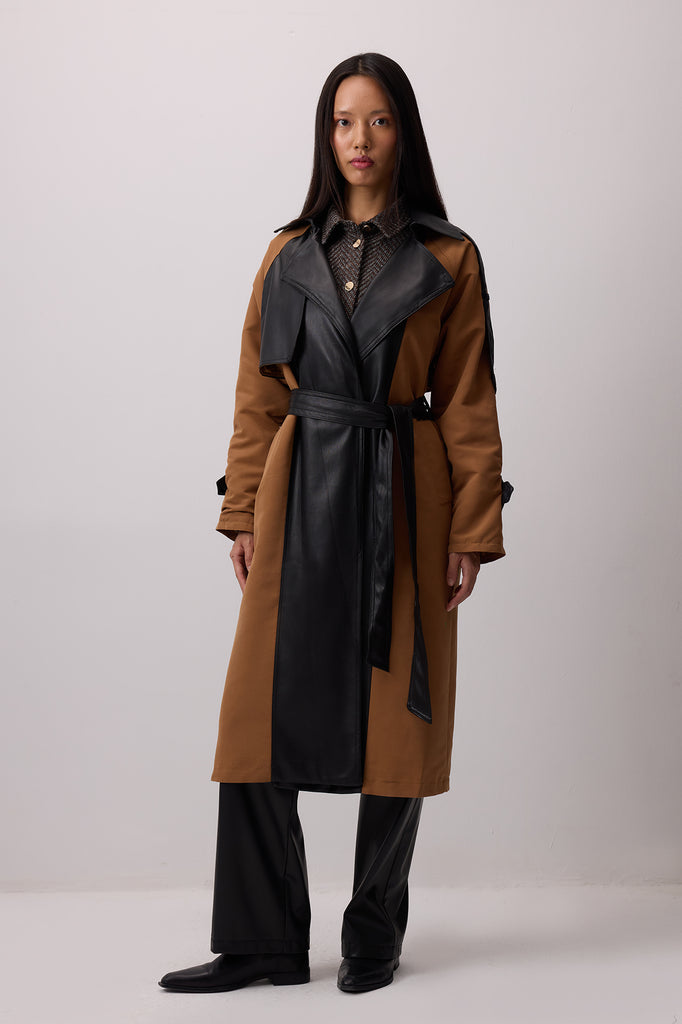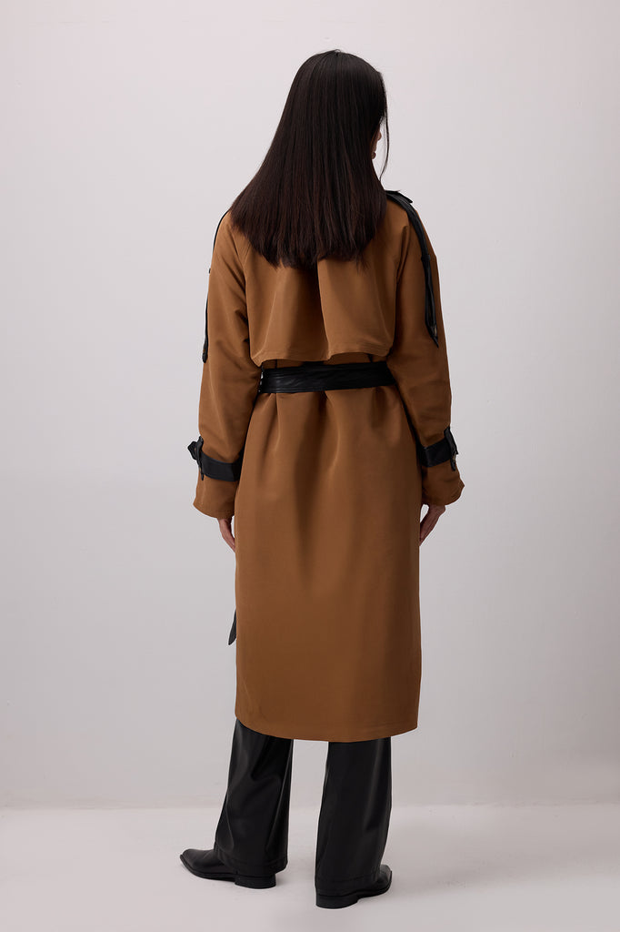Klasik, kontrast çentik yaka. Uzun kollu. Kontrast apolet ve kuşak detaylı. Çift cepli.