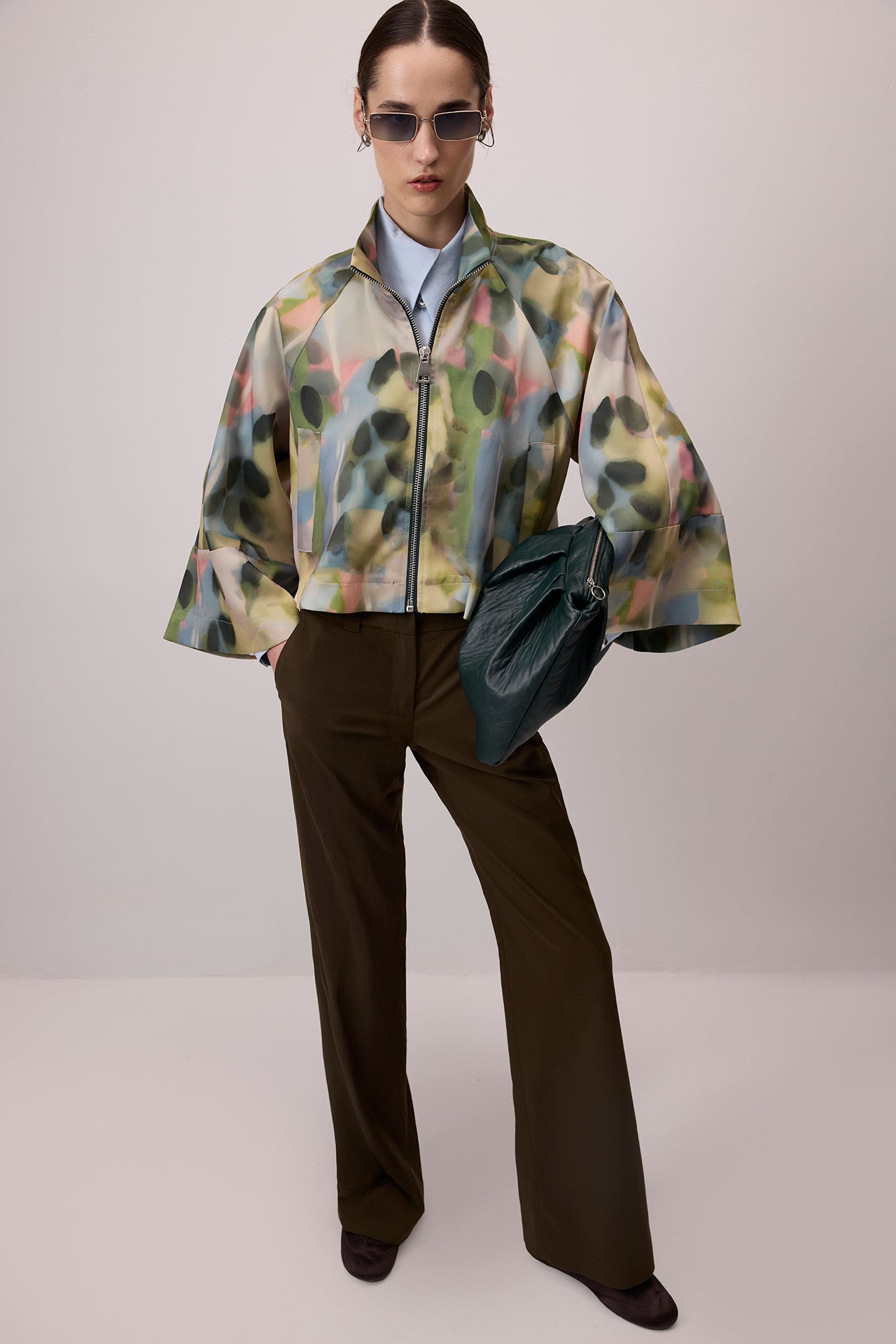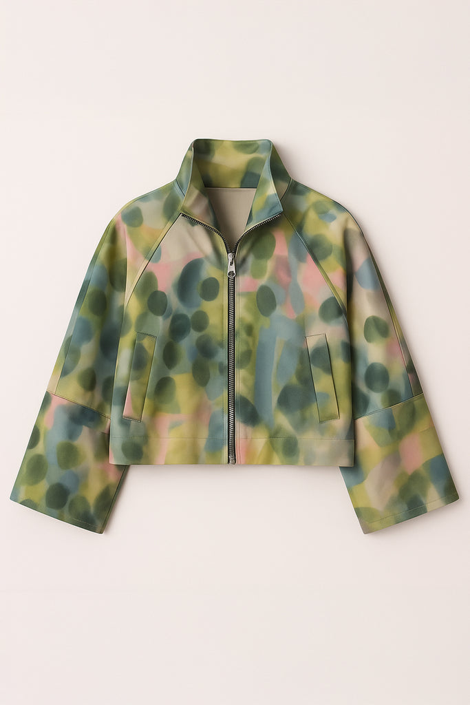 Dik yaka. Uzun kollu. Desenli. Çift cepli.