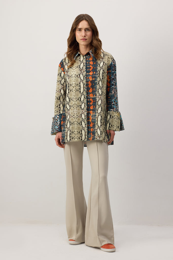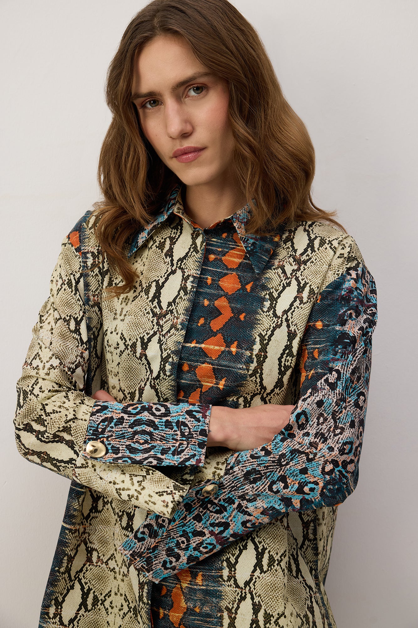 DESENLİ GENİŞ MANŞETLİ POPLİN GÖMLEK