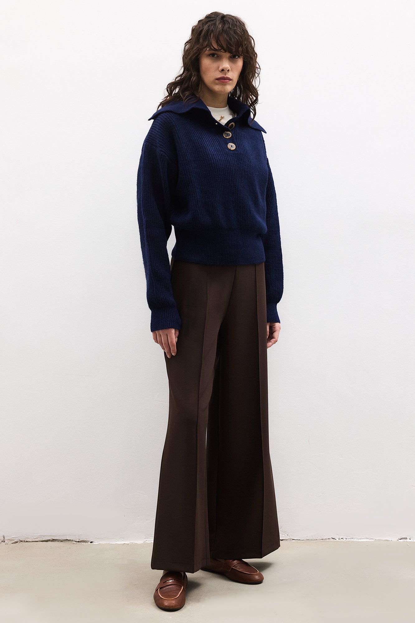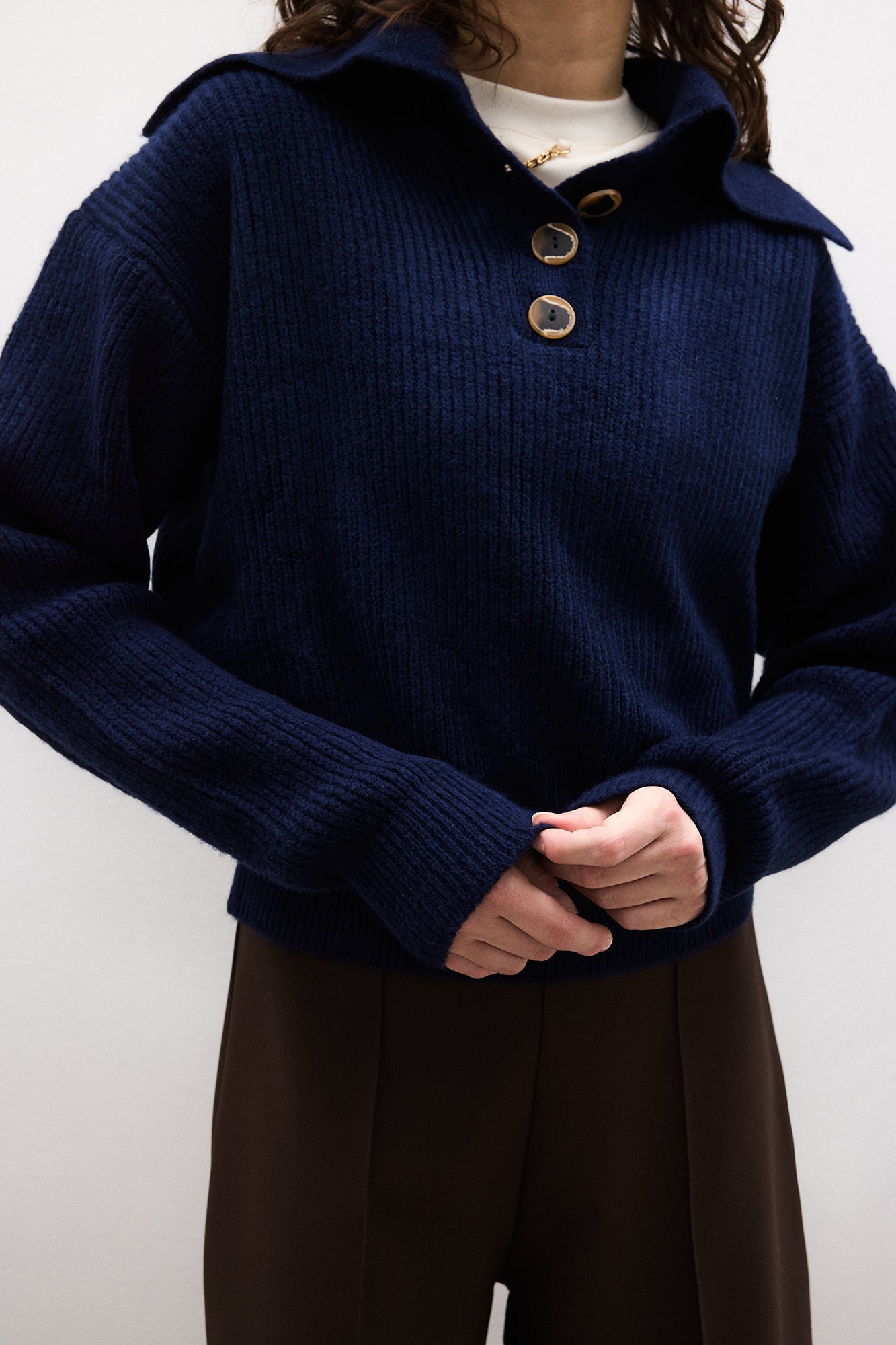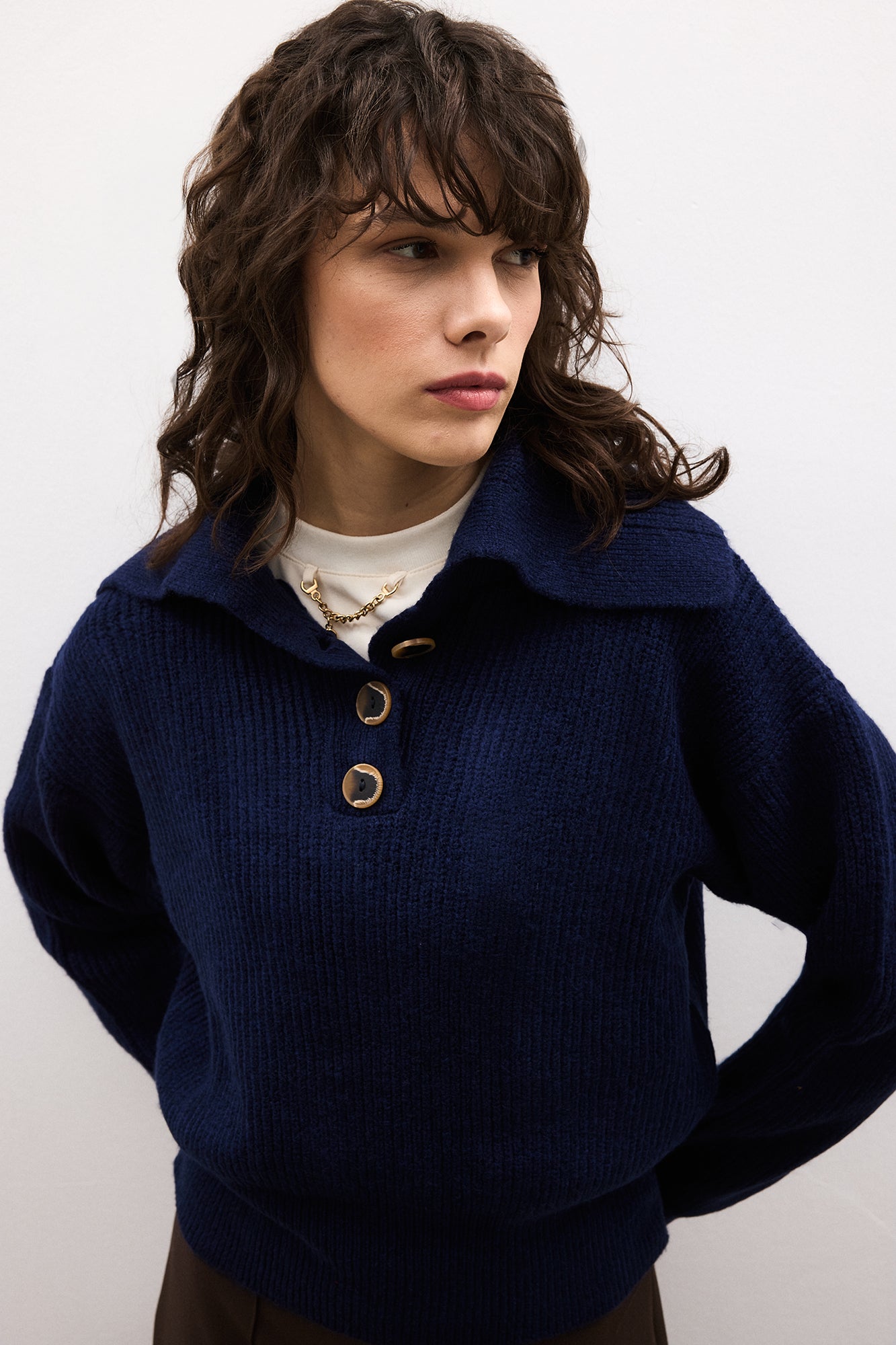 DEVRİK YAKA DÜĞMELİ TRİKO KAZAK