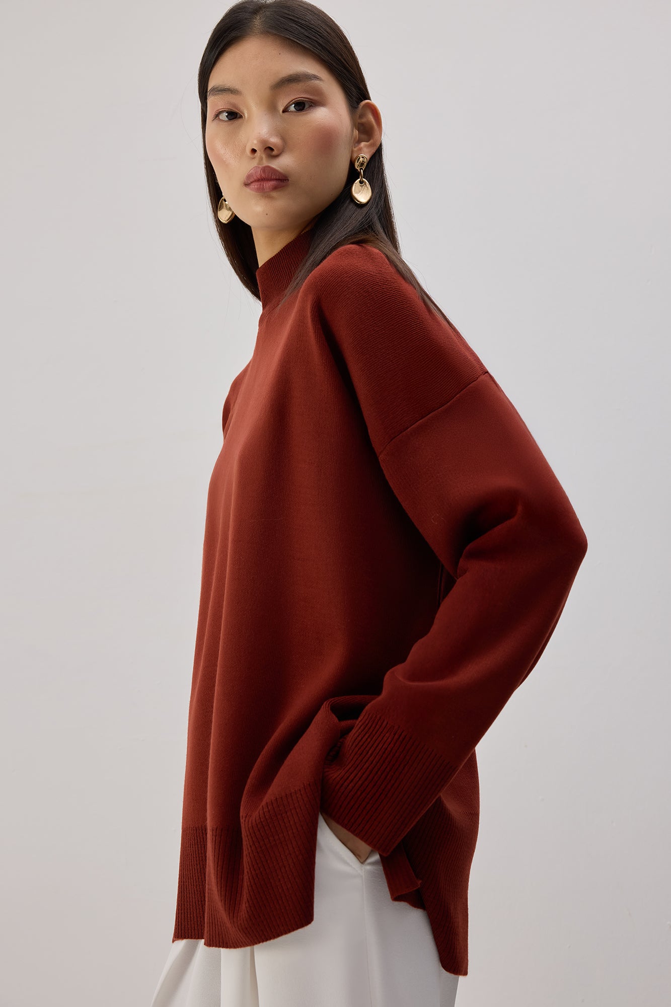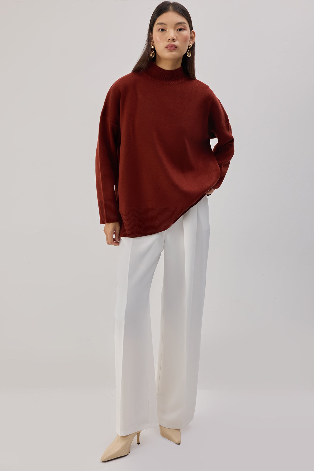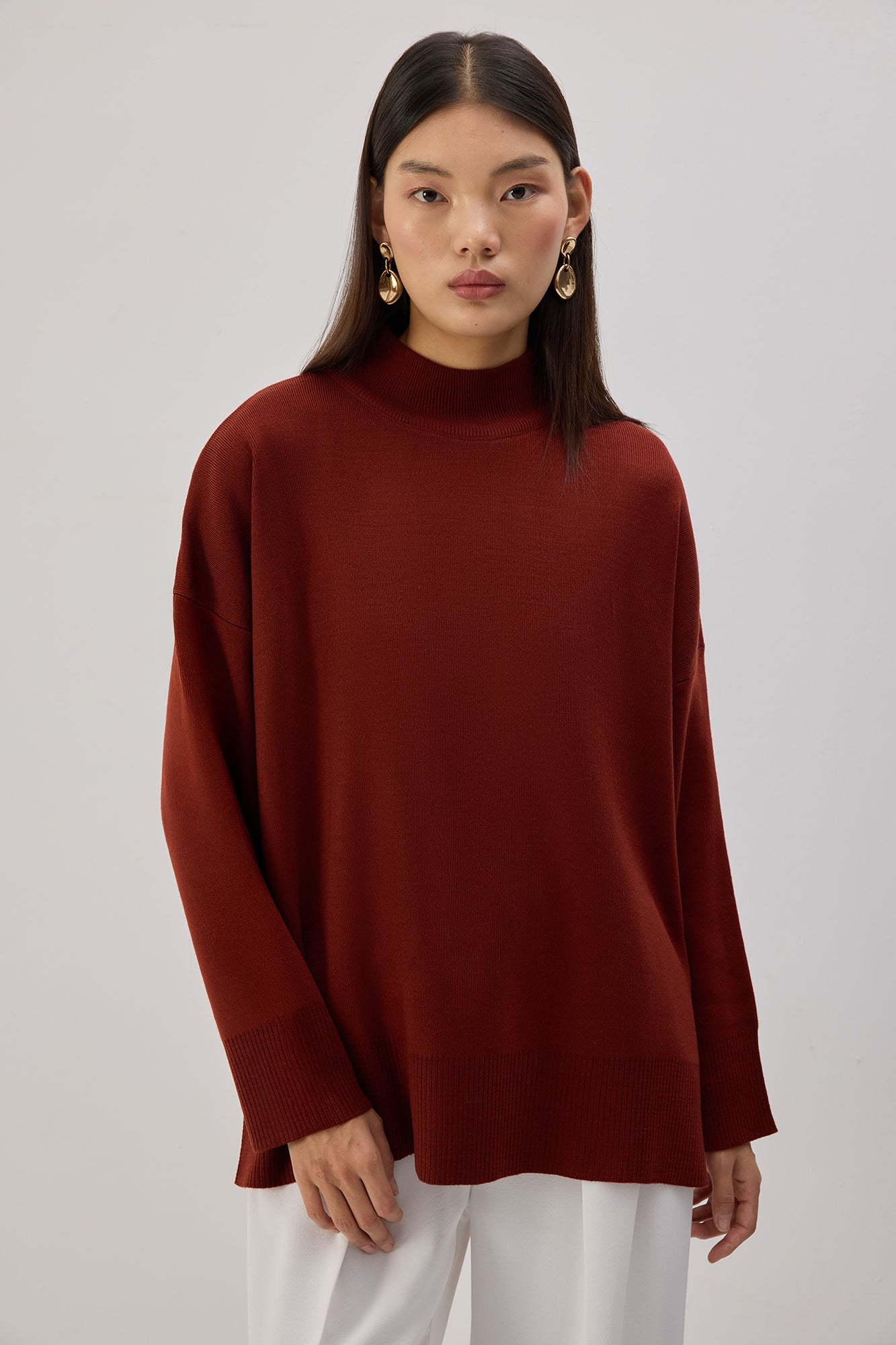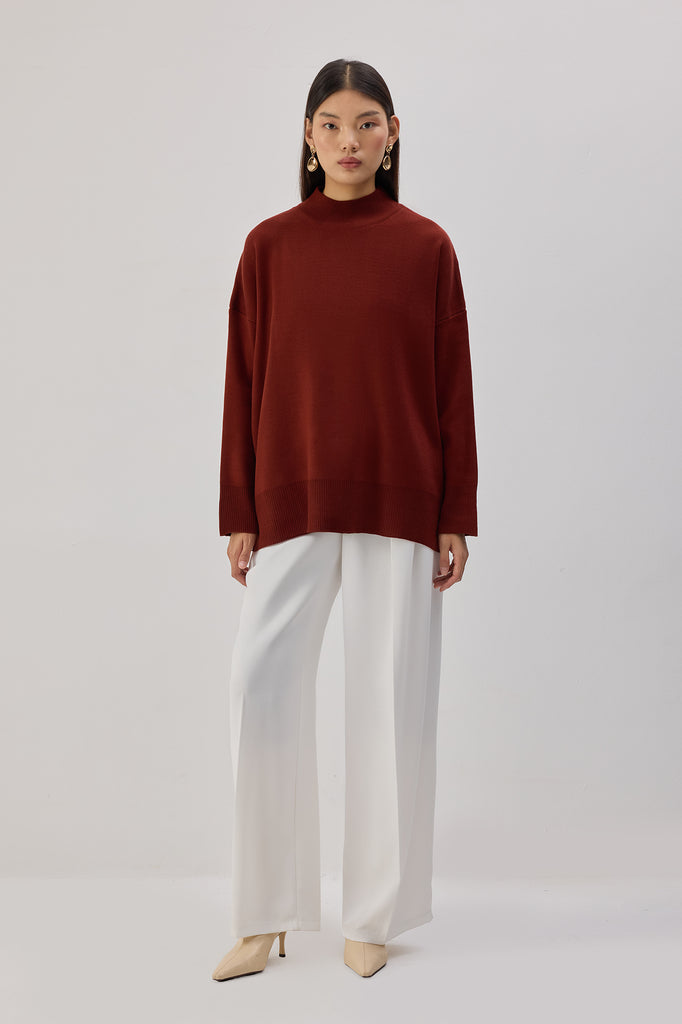 Sade ve zamansız bir stile sahip bu triko kazak, yumuşacık dokusu ve rahat kesimiyle günlük şıklığın en konforlu hâlini sunar. Yüksek yakası modern bir görünüm sağlarken, omuzdan düşen formu hareket alanını artırır. Yan yırtmaç detayları parçaya hem hafiflik katar hem de katmanlı kombinlerde kolay kullanım imkânı sunar. Soğuk günlerde sıcak tutan dokusuyla dolabınızın vazgeçilmez basic parçalarından biri olmaya adaydır.
