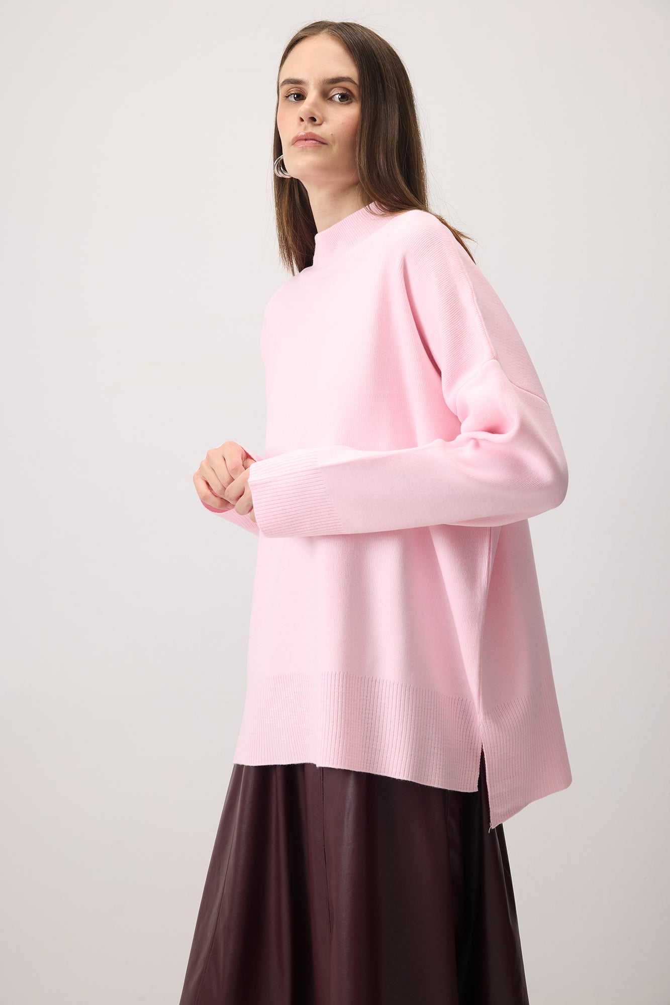 Dik yaka. Düşük omuz. Uzun kol. Elastik manşet. Yandan yırtmaçlı. Yumuşak dokulu.