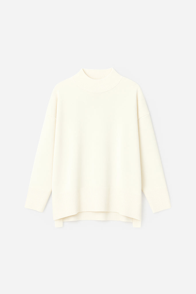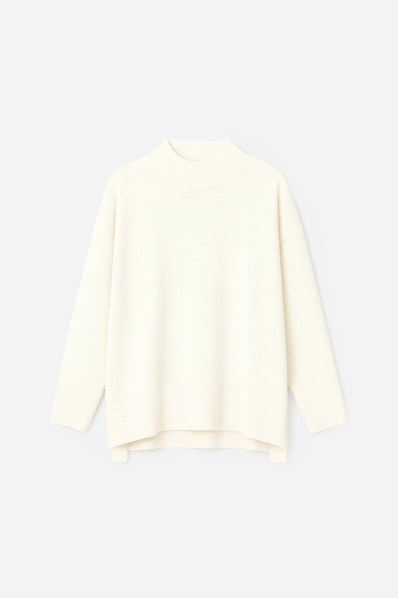 Dik yaka. Düşük omuz. Uzun kol. Elastik manşet. Yandan yırtmaçlı. Yumuşak dokulu.