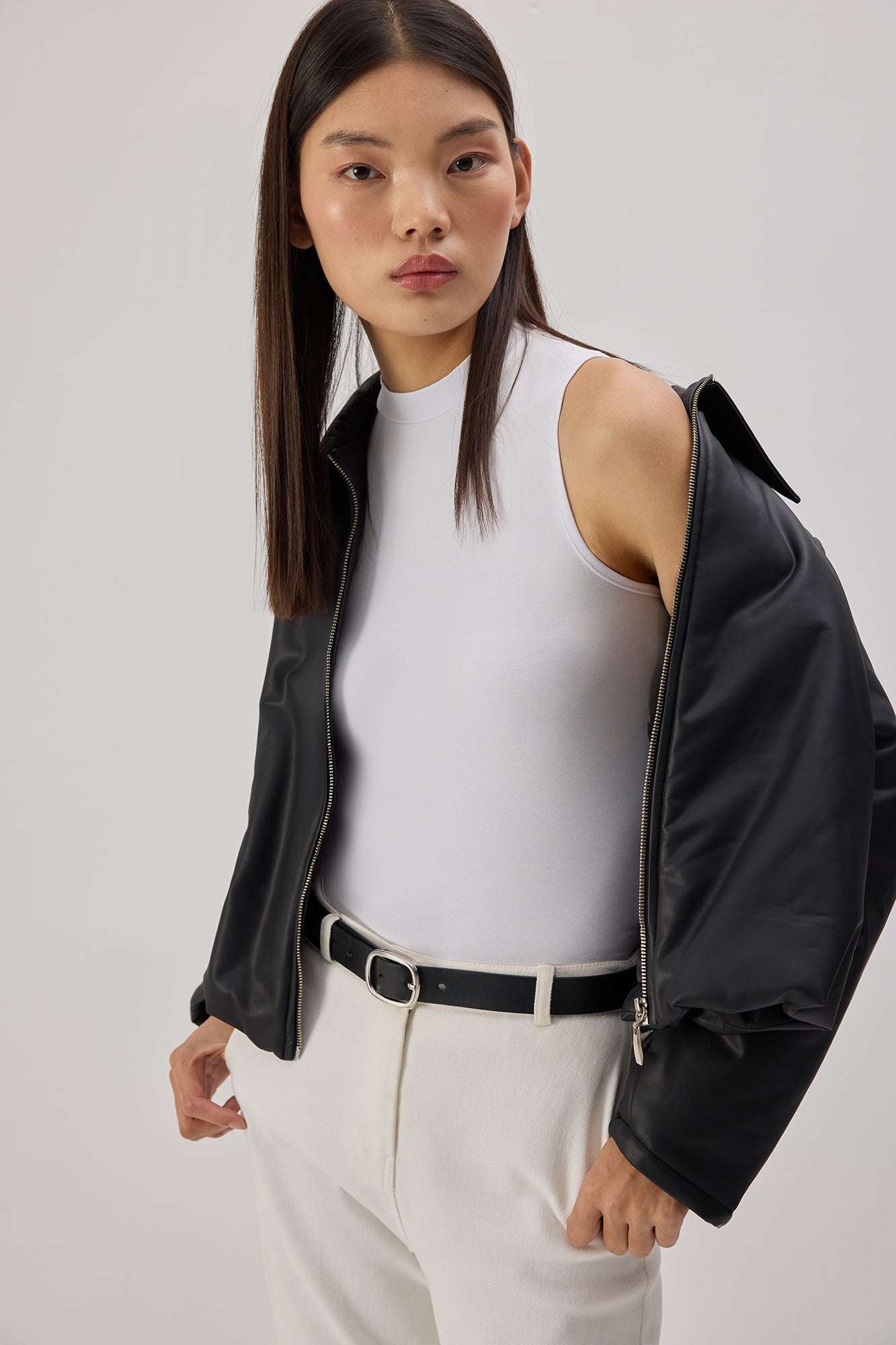 Hafif dik yaka. Kolsuz. İçlik.