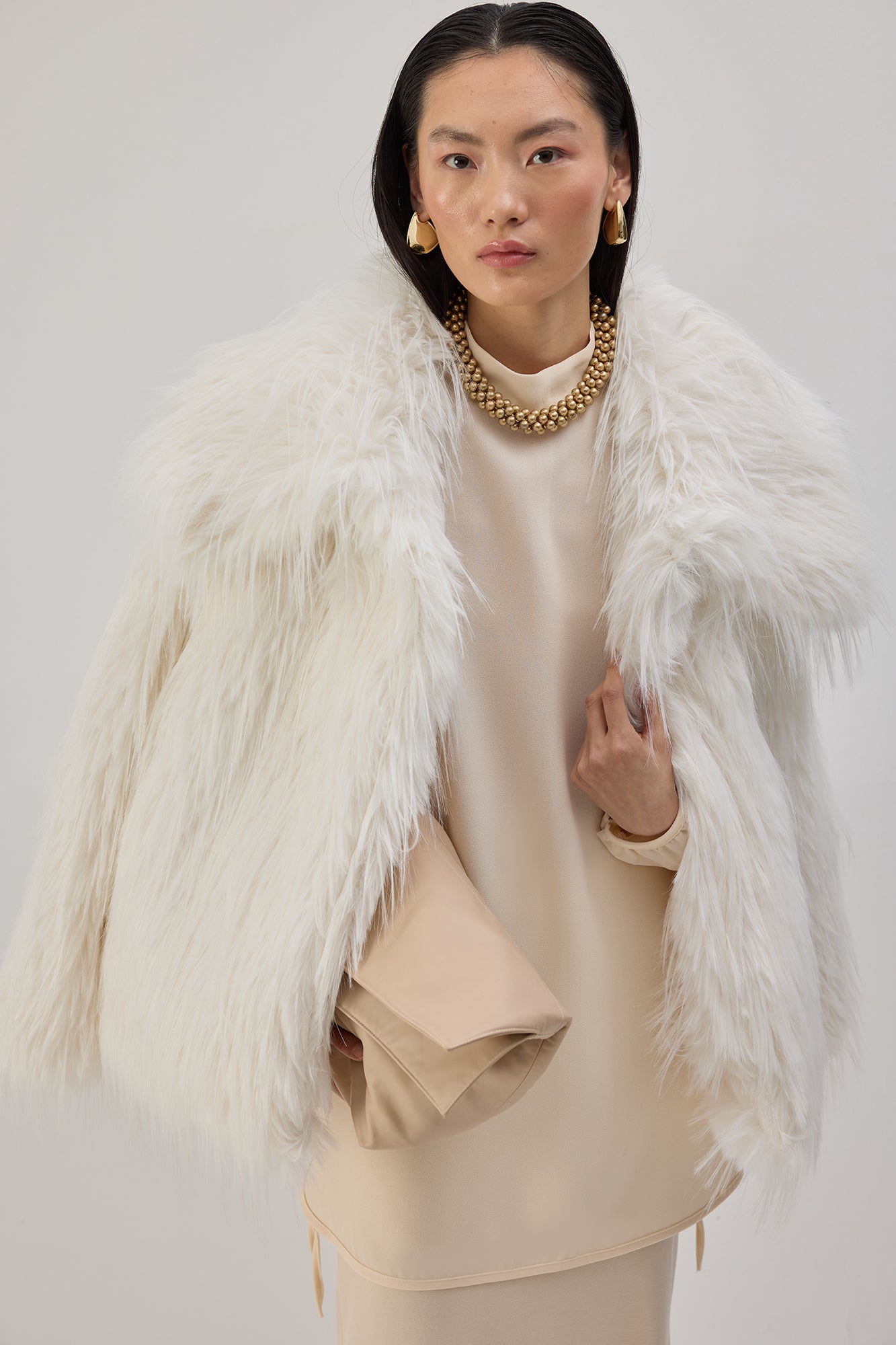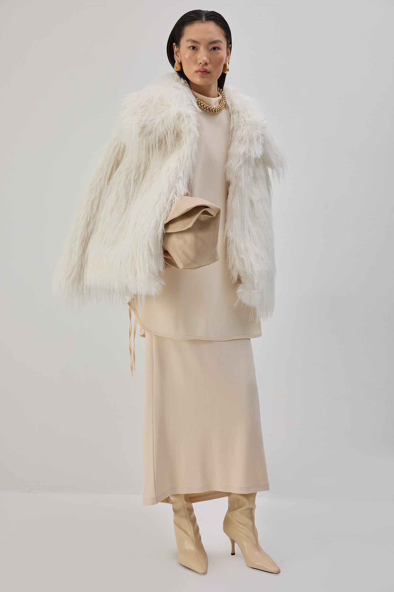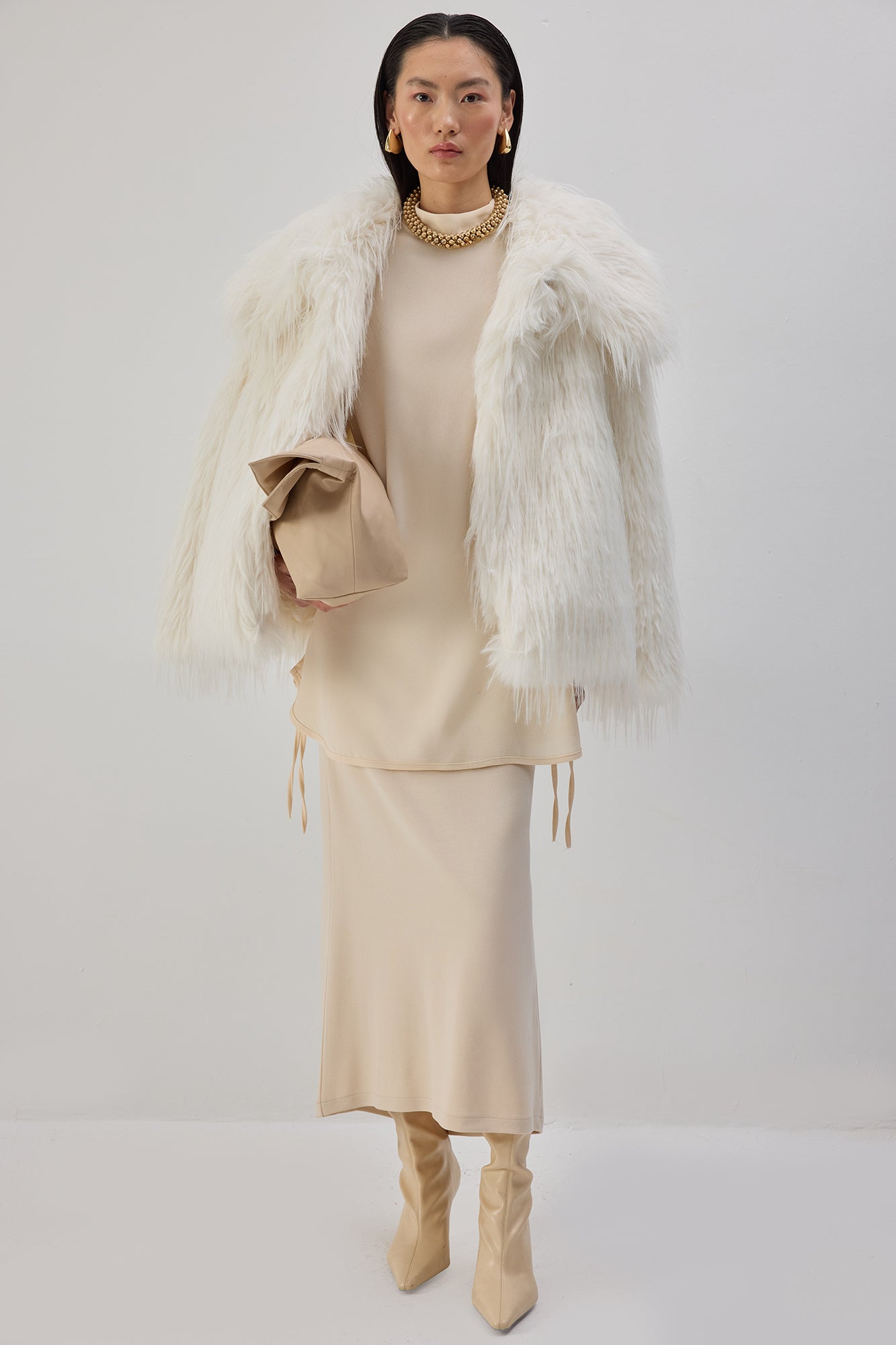 Dik yaka. Uzun kollu. Etek ucu bağlama detaylı. Krep tunik.