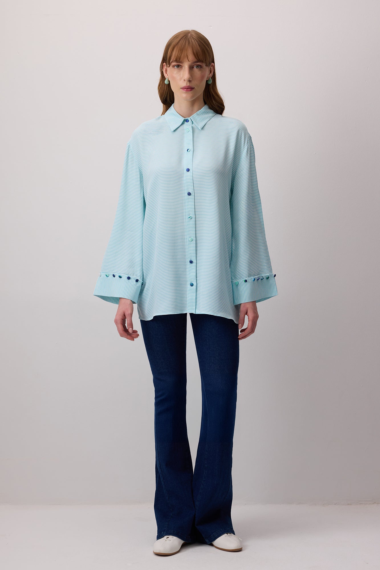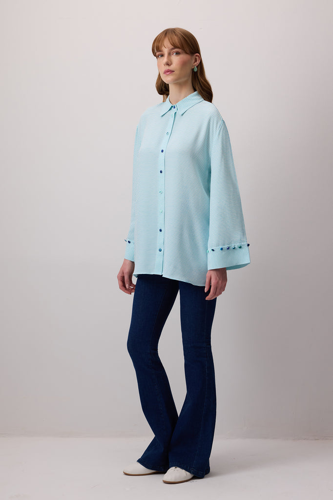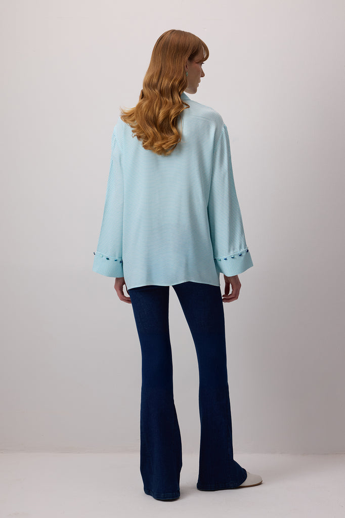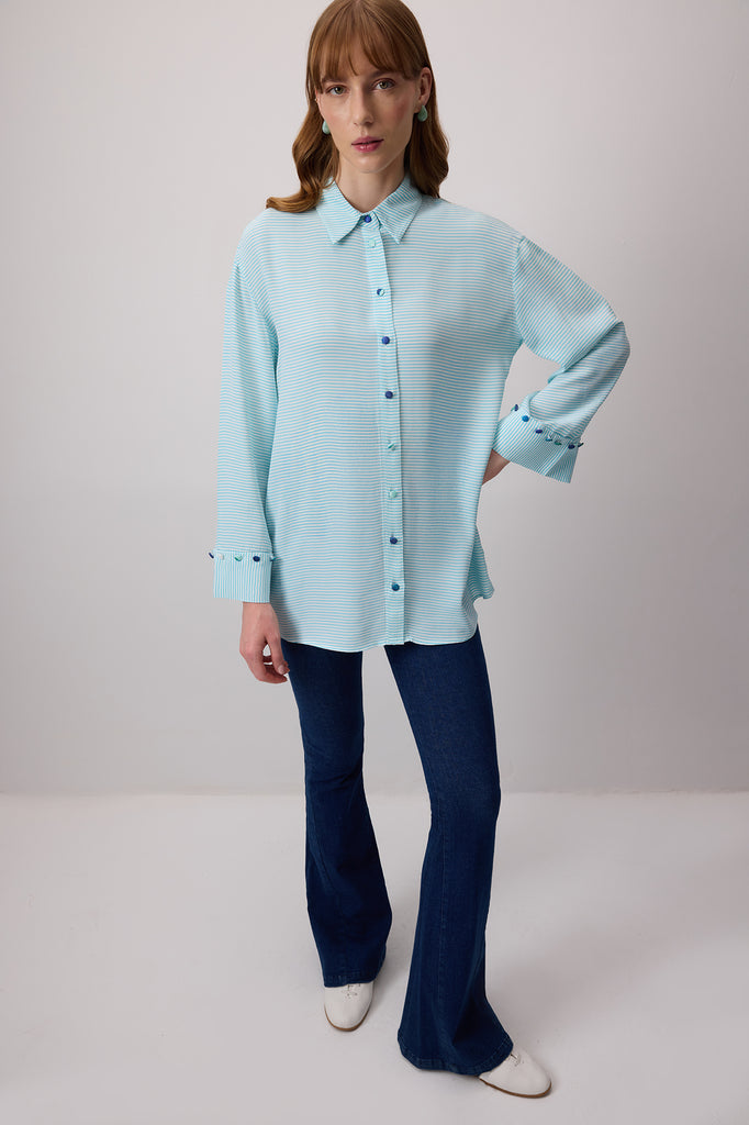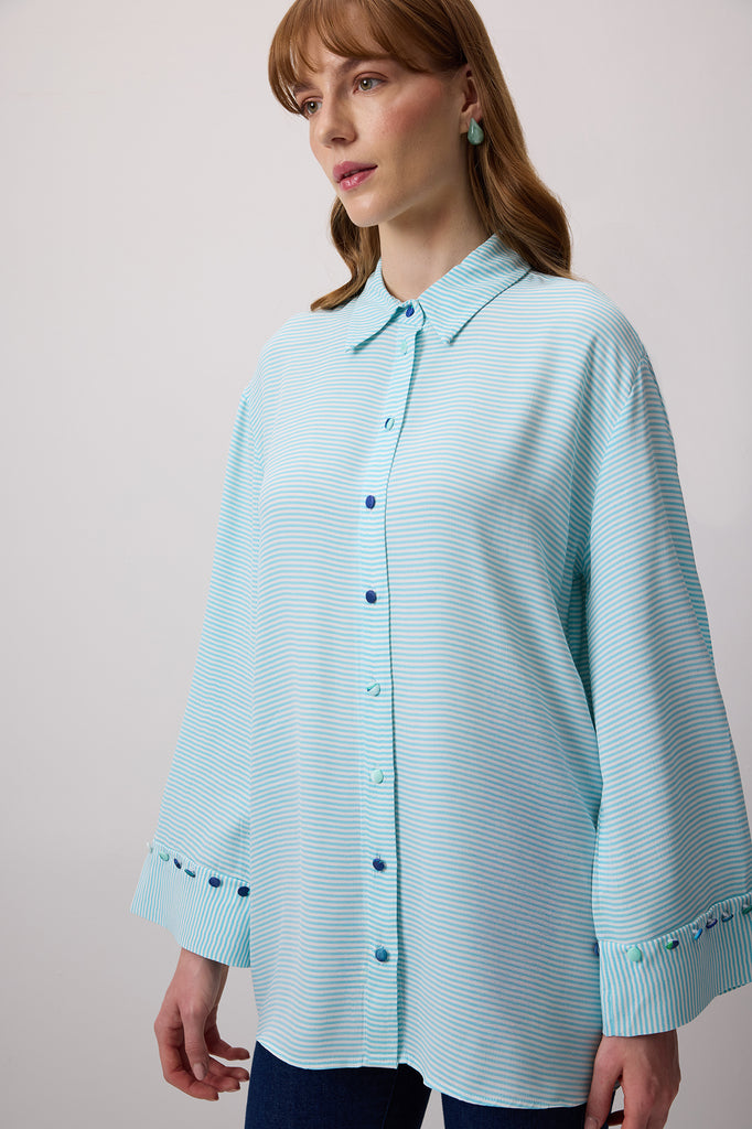 DÜĞME DETAYLI ÇİZGİLİ POPLİN GÖMLEK