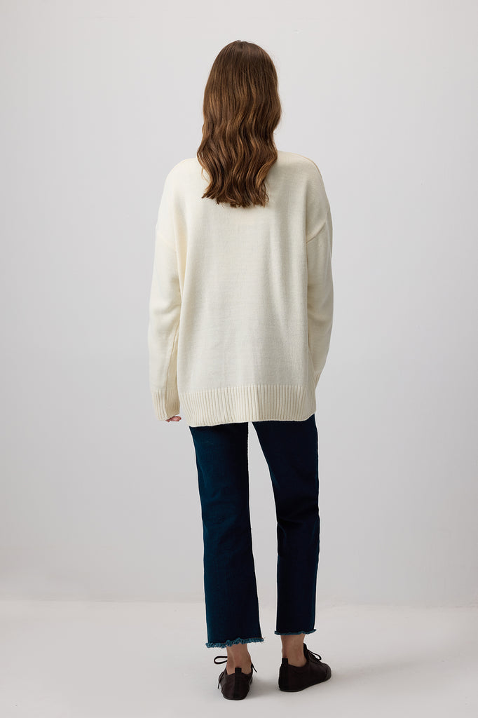 Bisiklet yaka. Düşük omuzlu. Uzun kollu. Düğme detaylı. Yumuşak dokulu.