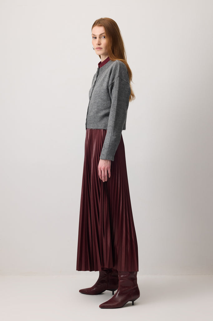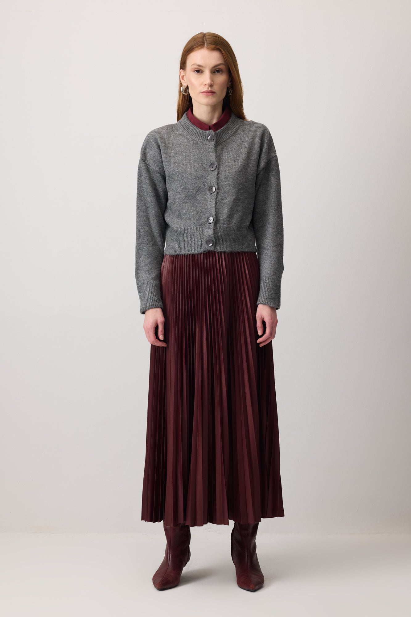 Yuvarlak yaka, büyük düğmeli kısa triko hırka.