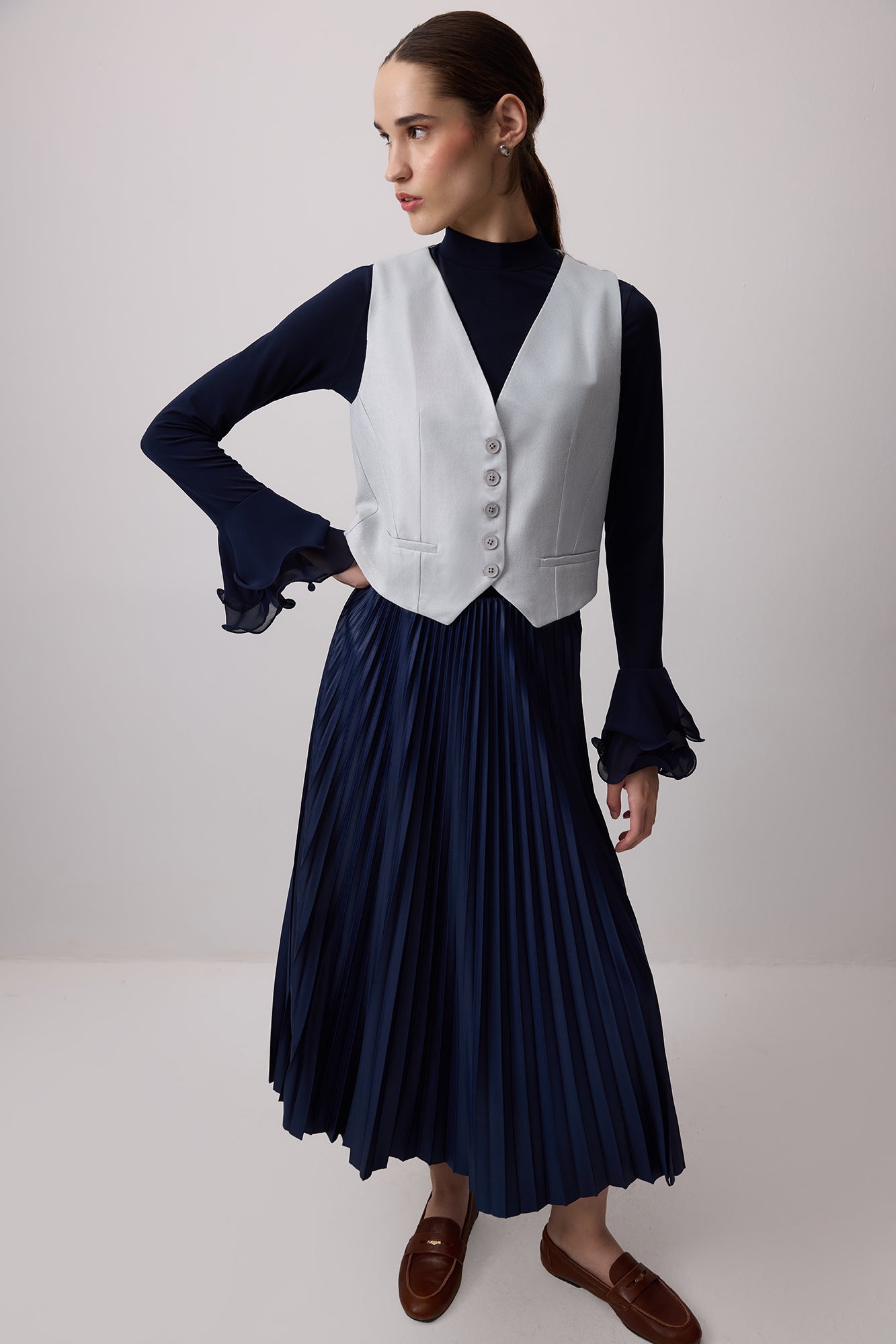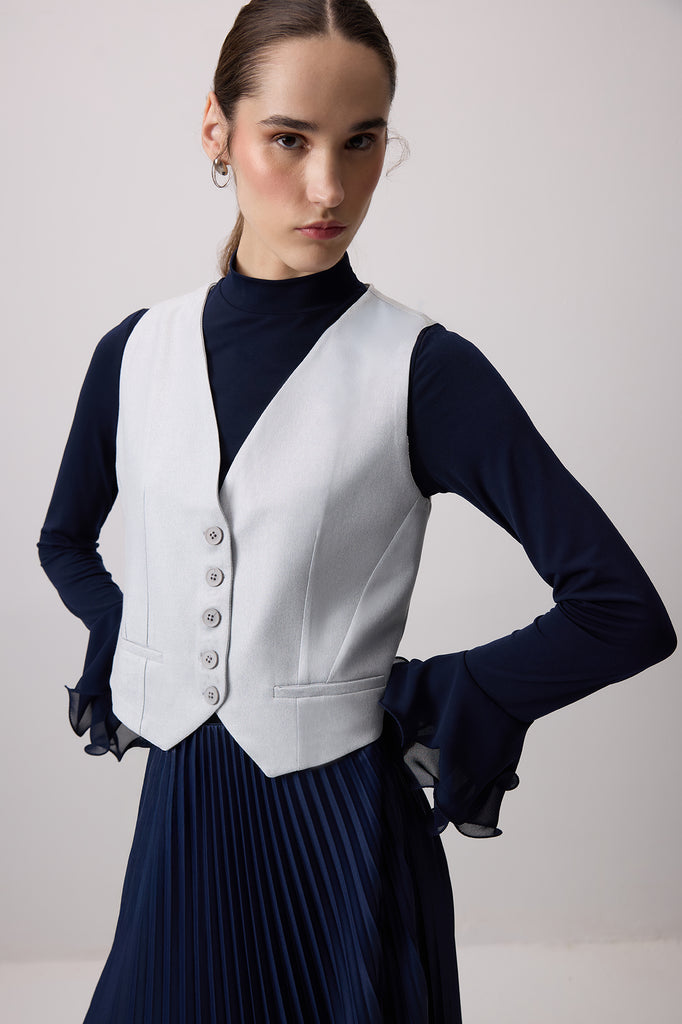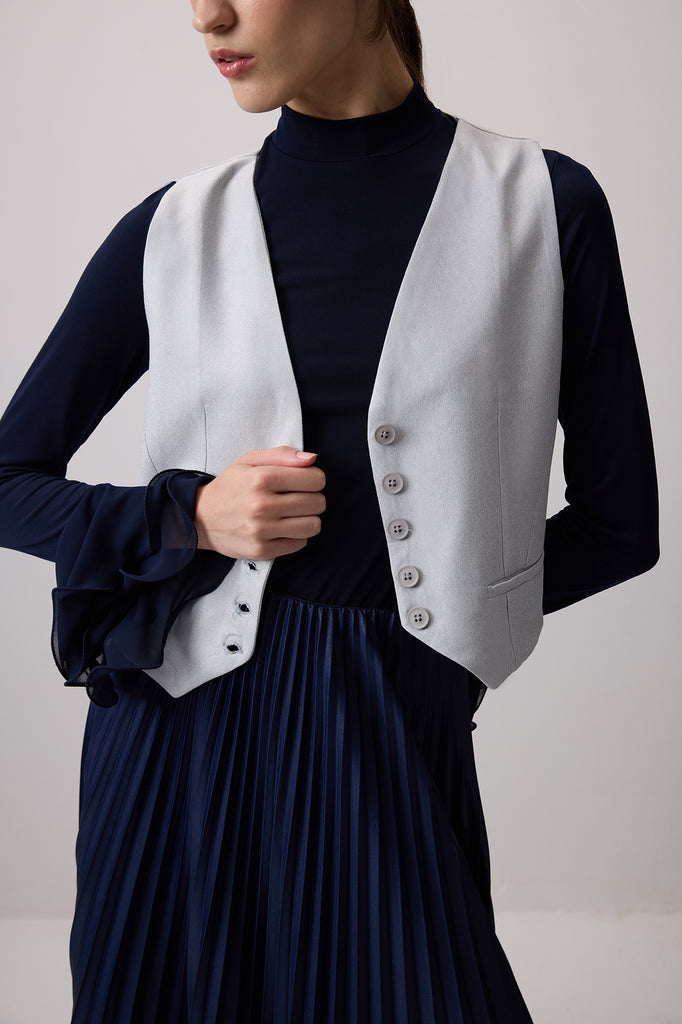 Kolsuz. V yaka.. Önden düğme kapamalı.