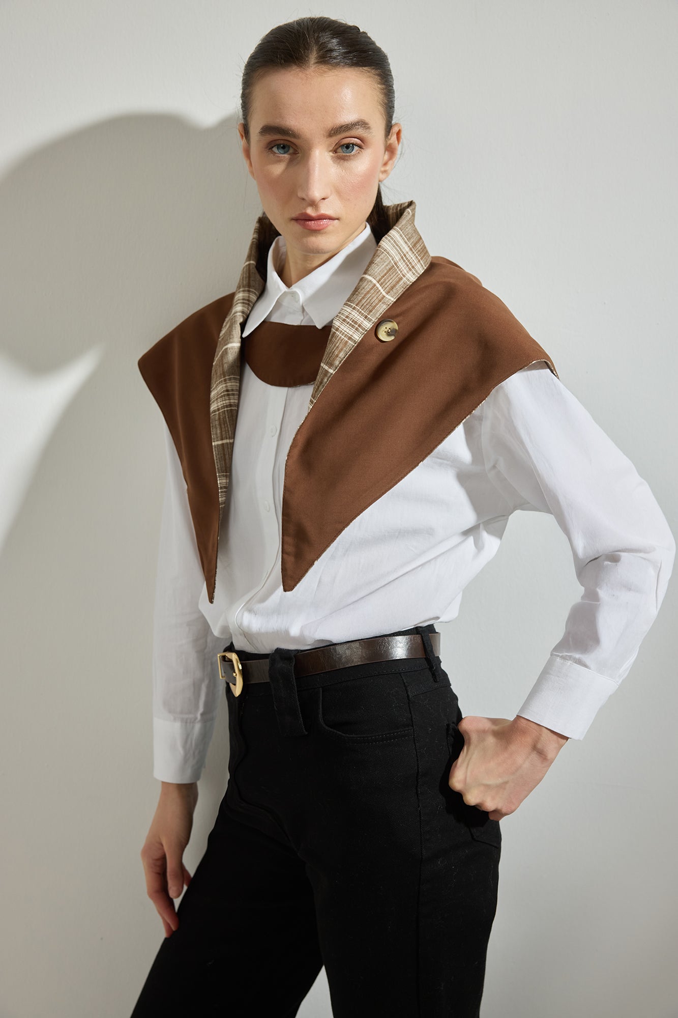 Ekose Rüzgarlık Kapüşon, modern ve fonksiyonel tasarımıyla sezonun en iddialı tamamlayıcısı. Hafif yapısı sayesinde katmanlı giyime uyum sağlayan bu parça, omuz üzerine yerleşen formu ile hem stil hem de konfor sunar. Ekose desenli iç yüzeyi ve düğmeli kapama detayı ile sportif şıklığı zarif bir duruşla buluşturur.
