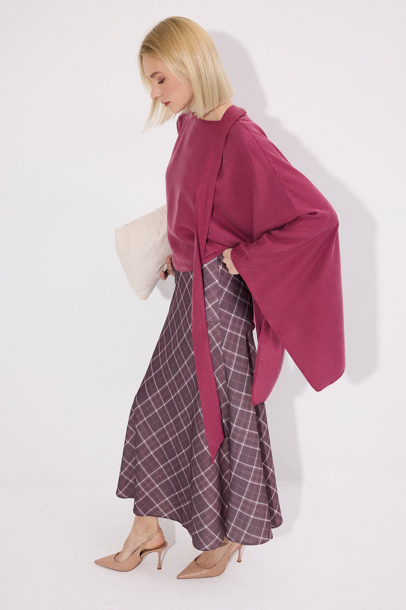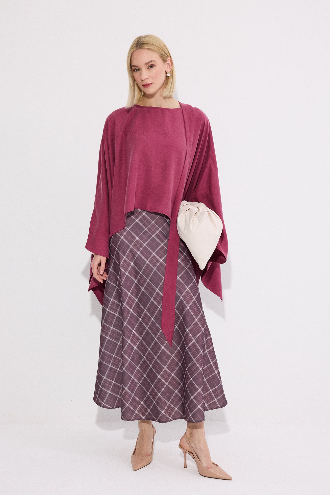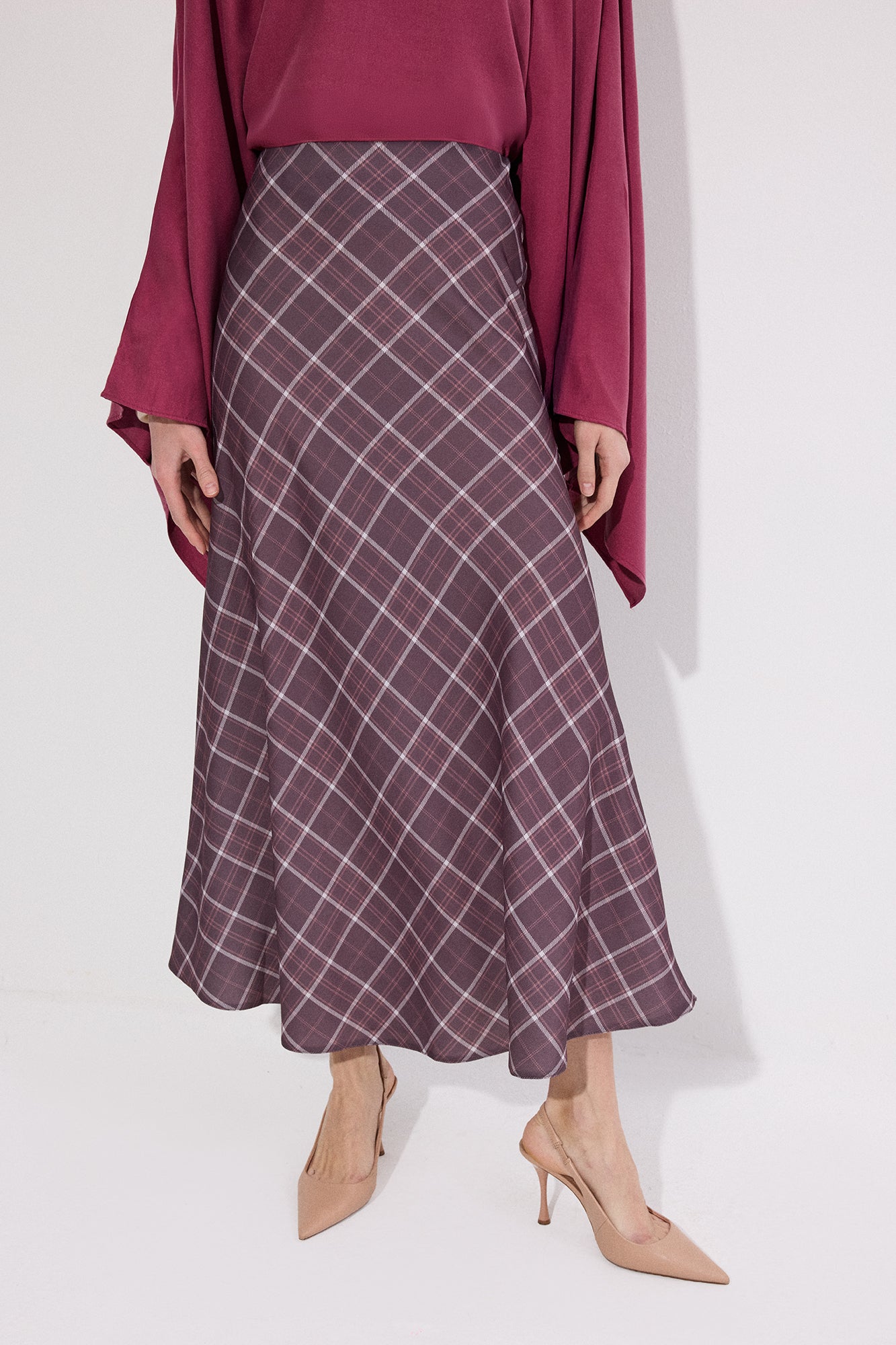Ekose desenli. Lastikli bel. A kesim. Maxi boy.