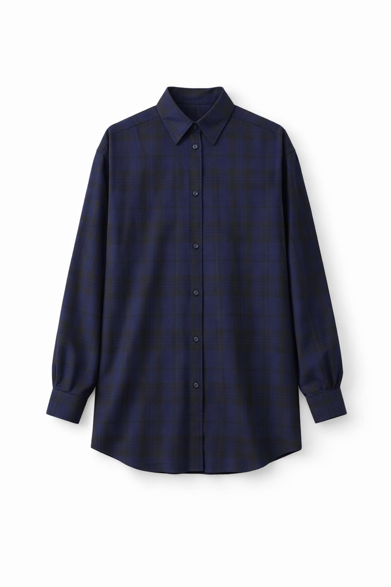 Ekose desenli. Uzun kollu. Düğmeli. Dökümlü viskon gömlek.