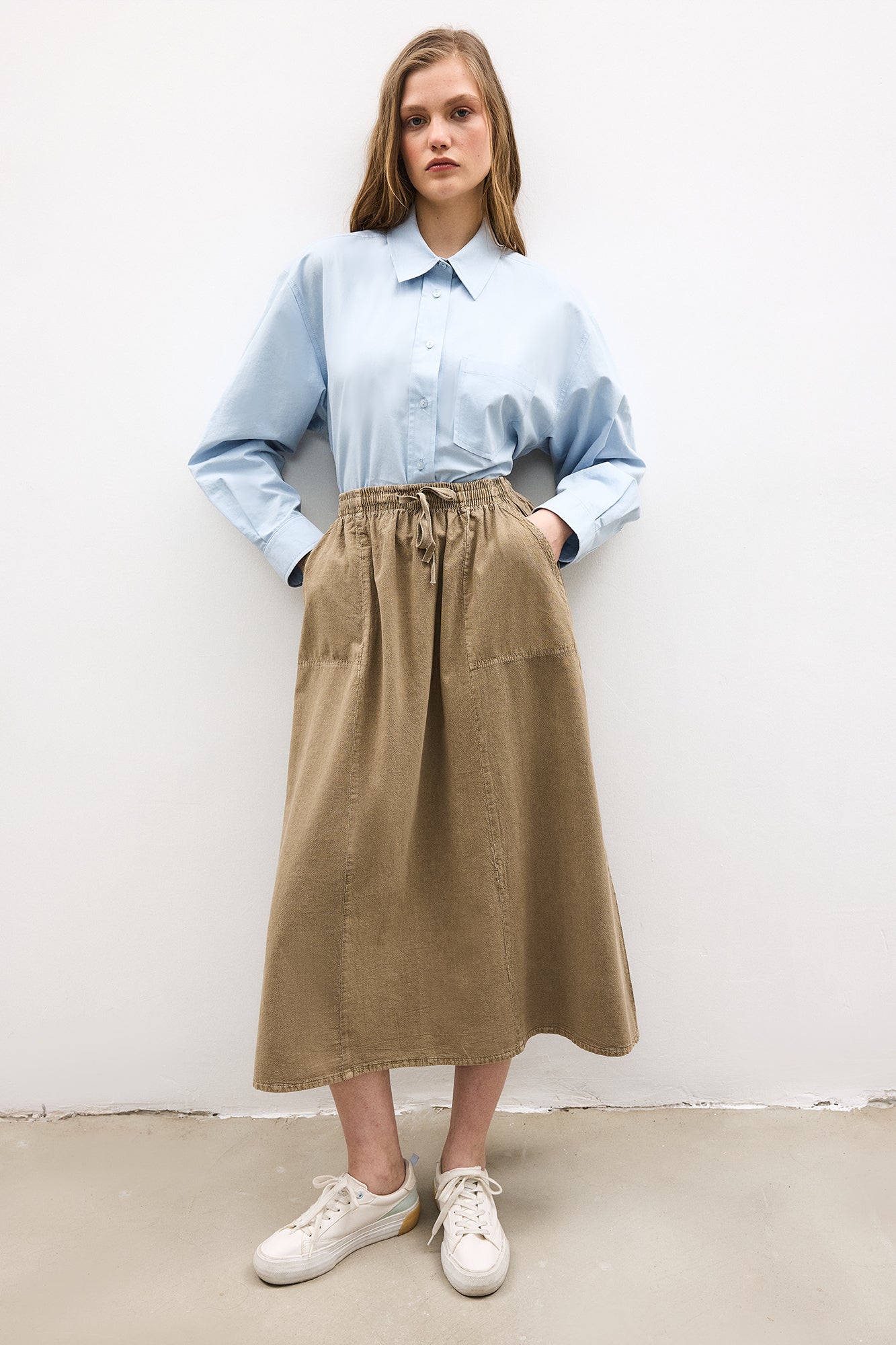 ELASTİK BEL CEPLİ ETEK