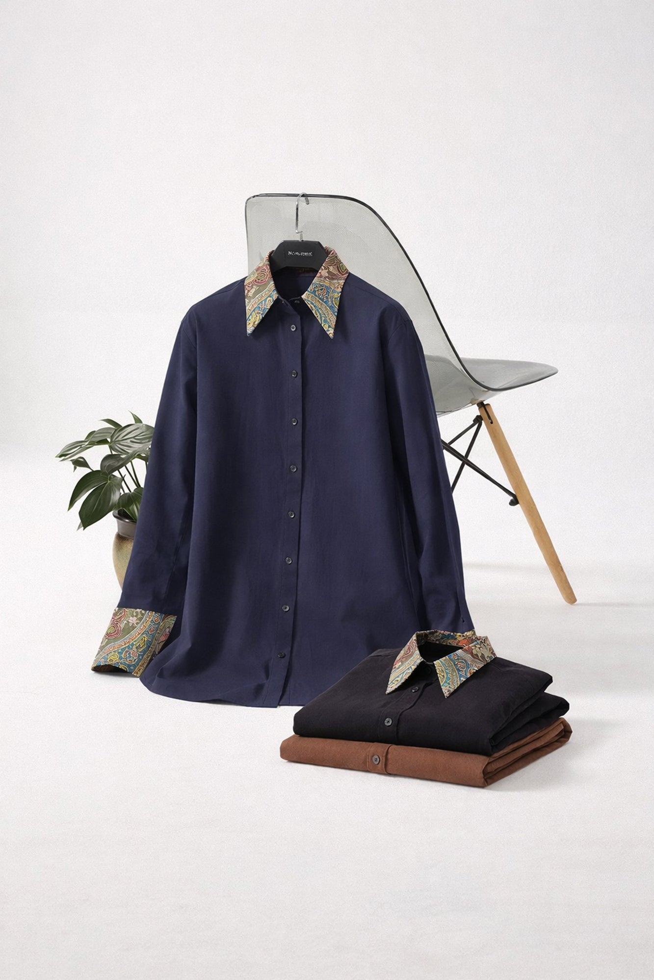 Desenli yaka ve manşet detaylı gömlek. Düğme kapamalı. Uzun kollu.