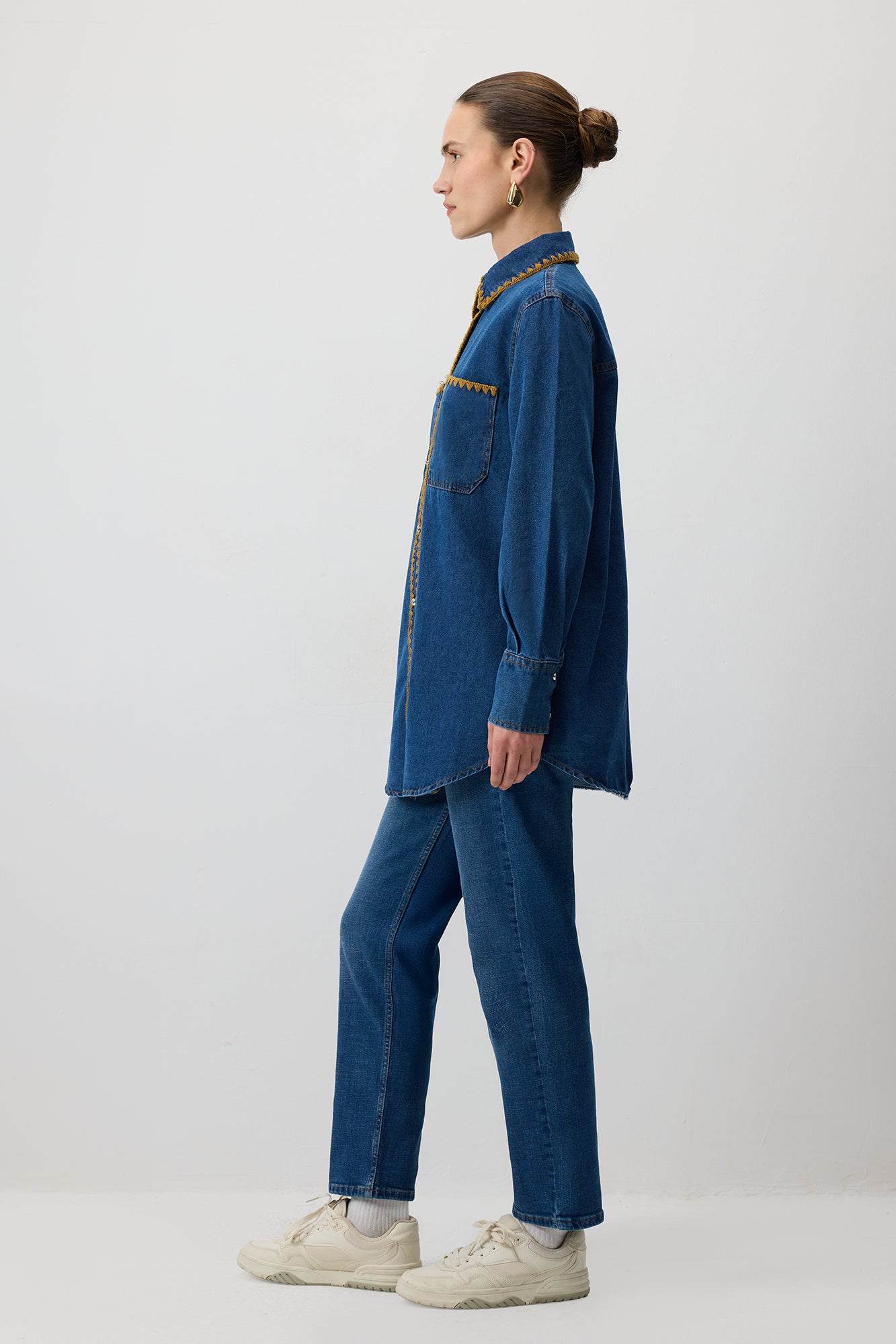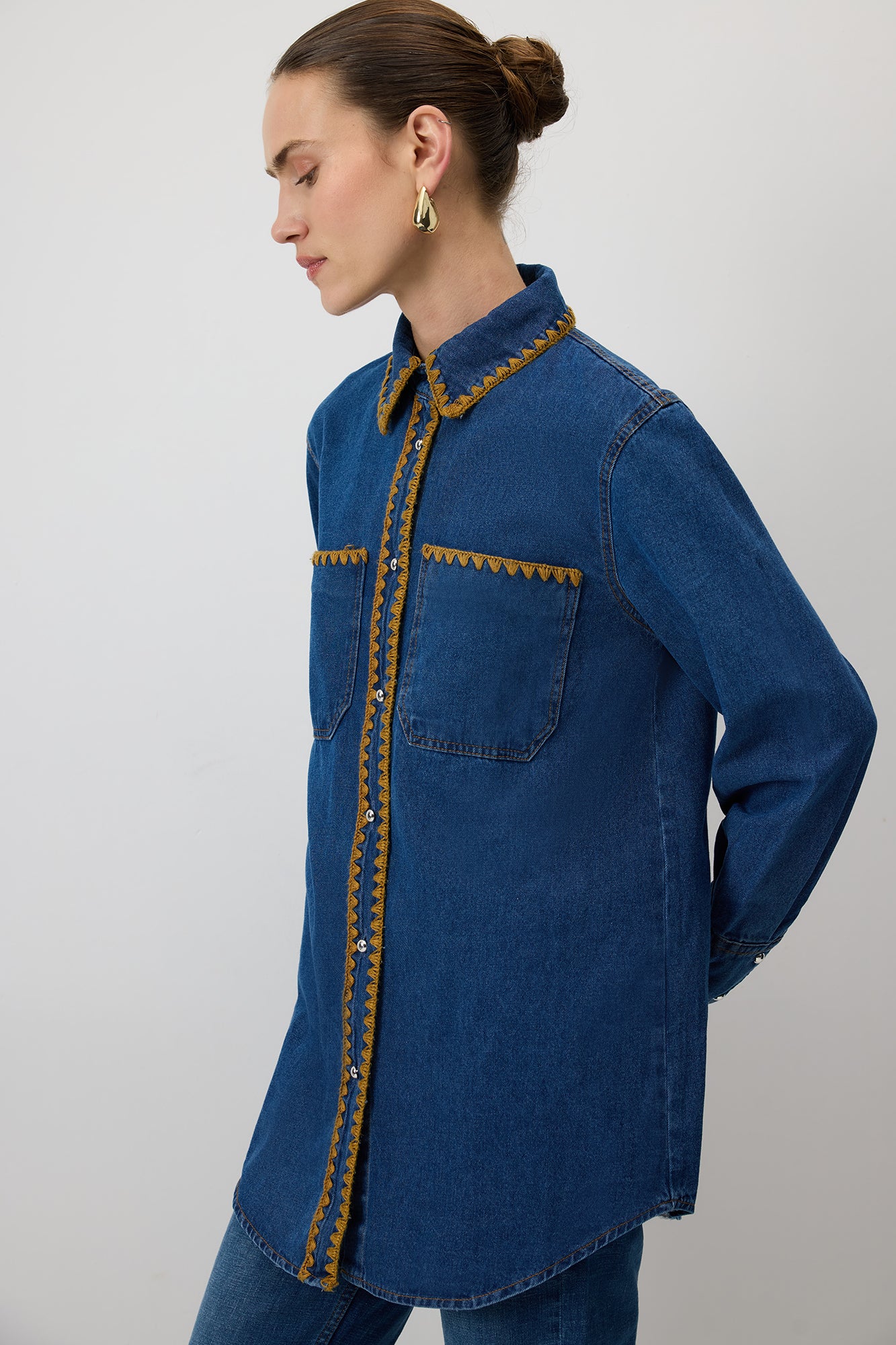 ETNİK İŞLEMELİ DENİM GÖMLEK