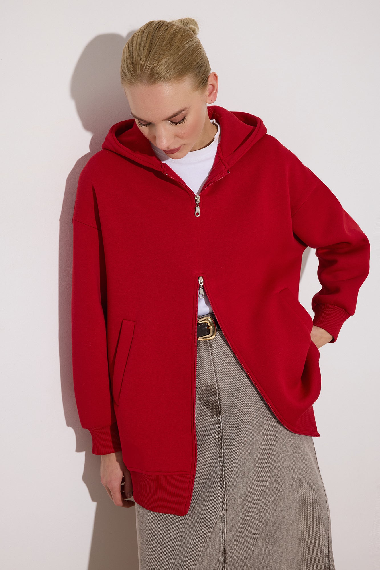 FERMUAR DETAYLI KAPÜŞONLU SWEATSHIRT