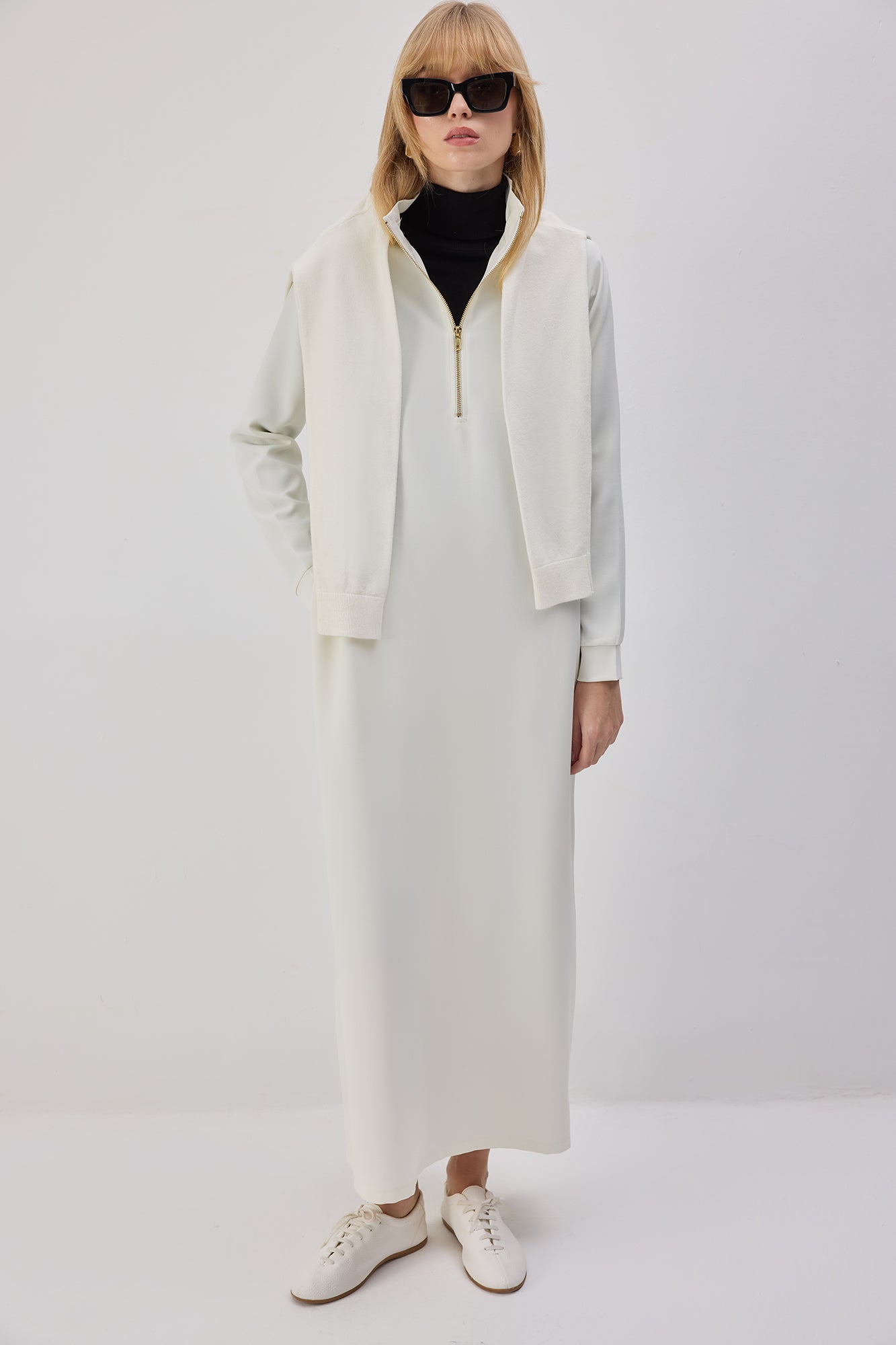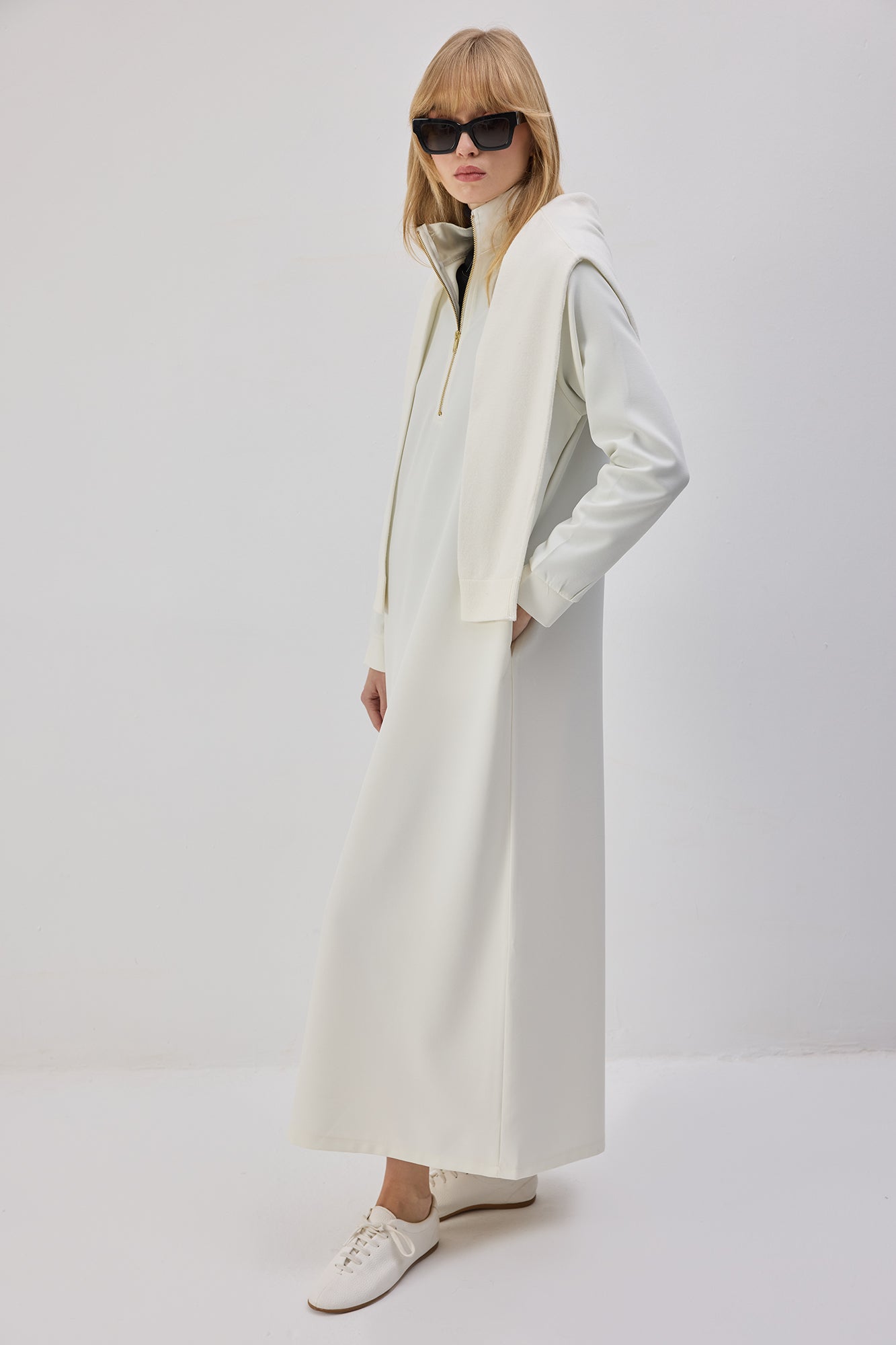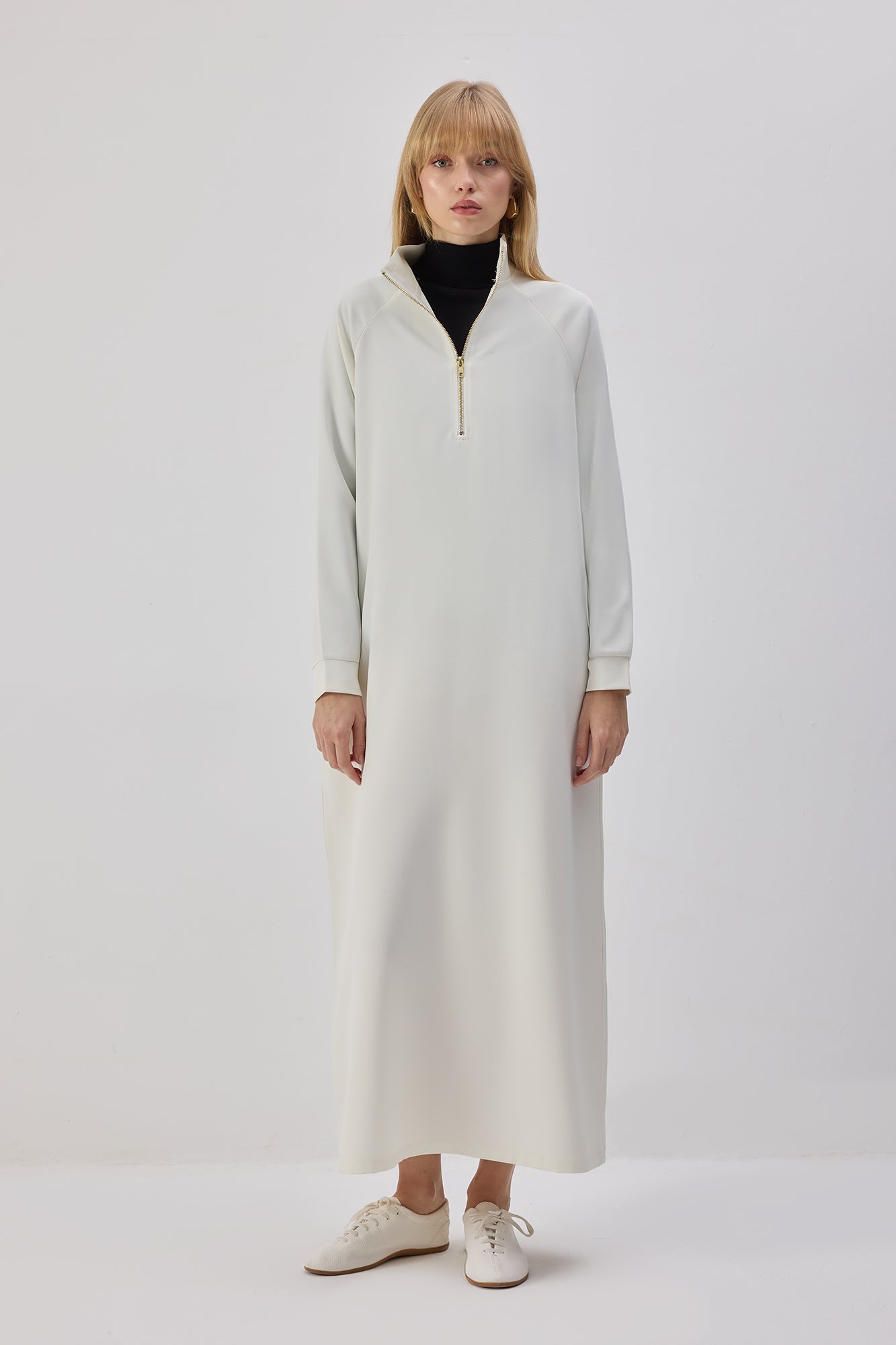 Fermuarlı yaka. Rahat kesim. Yandan gizli cep. Reglan kol. Astarla giyilmesi önerilir.