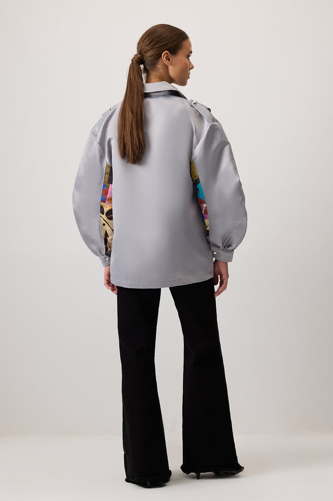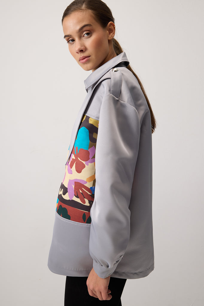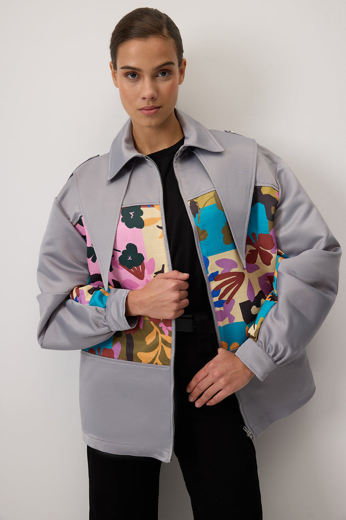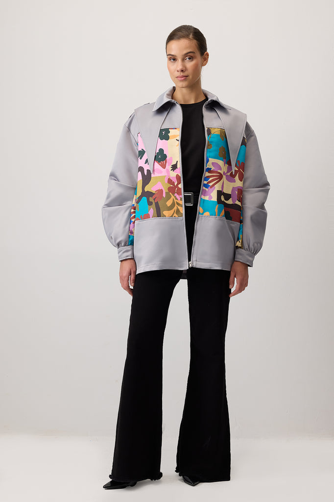 Klasik yaka. Uzun kollu. Elastik manşet. Desen detaylı. Önden fermuar kapama.