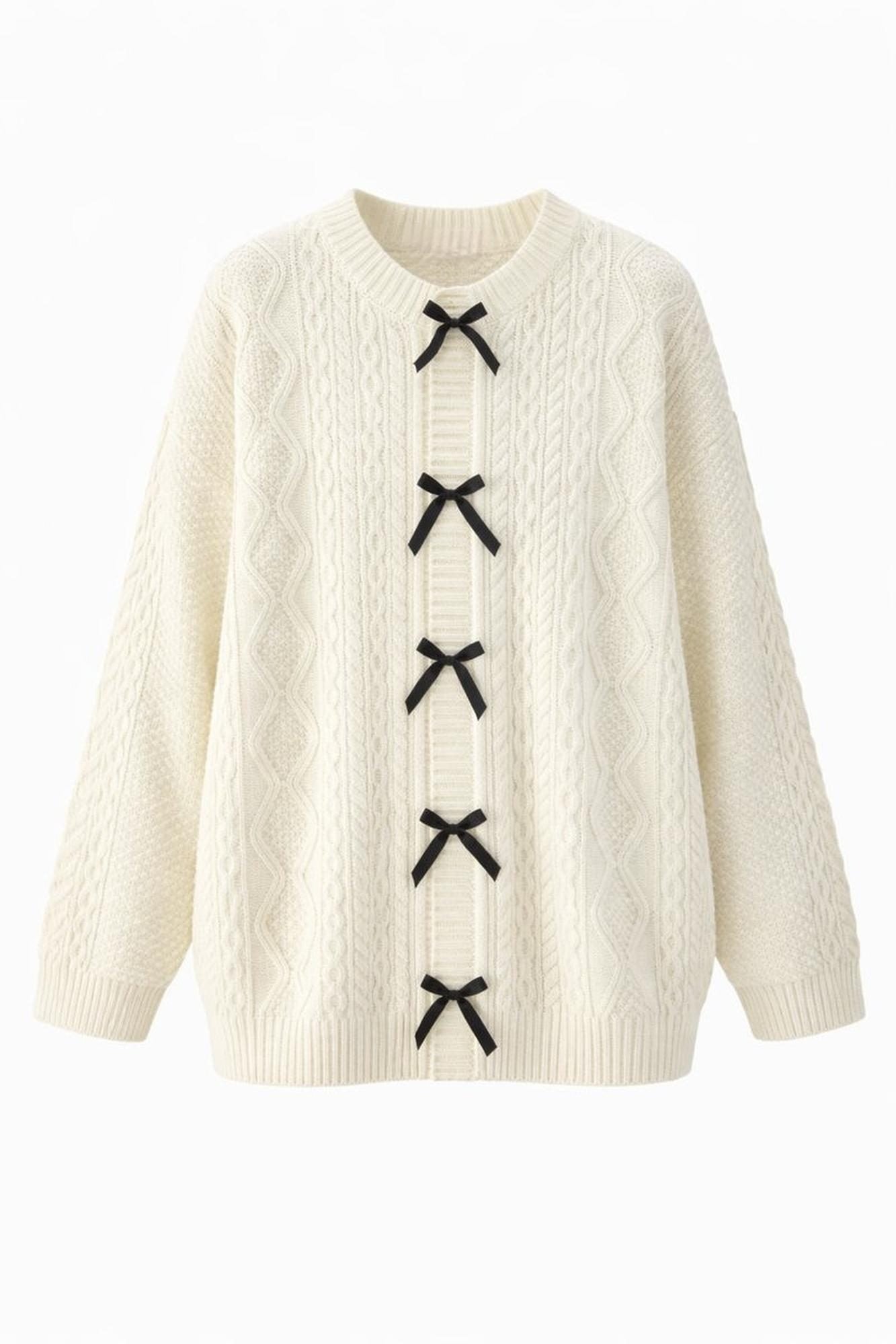 Uzun kol. V yaka. Fiyonk detaylı. Önü çıtçıt kapamalı. Triko hırka.