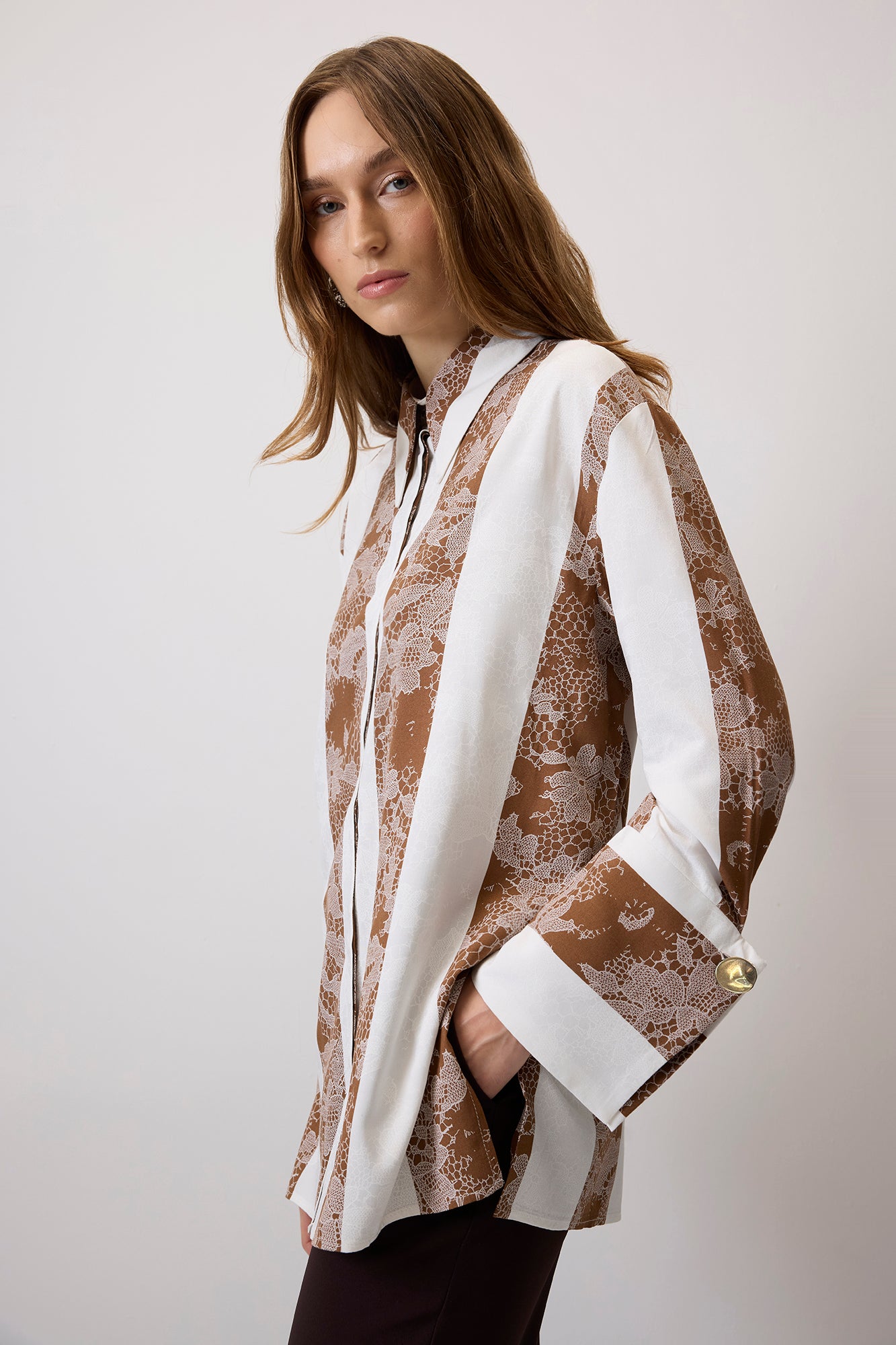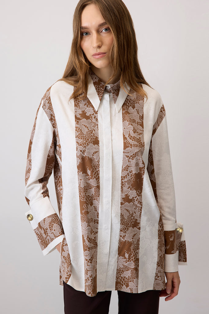 GENİŞ MANŞETLİ DANTEL DESEN GÖMLEK