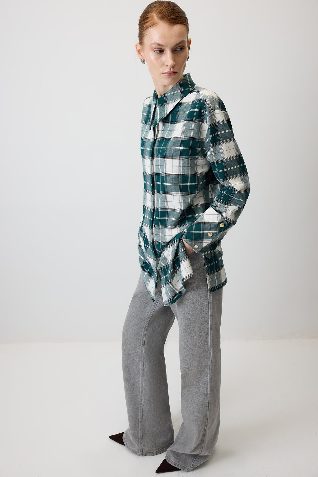 GENİŞ MANŞETLİ EKOSELİ GÖMLEK