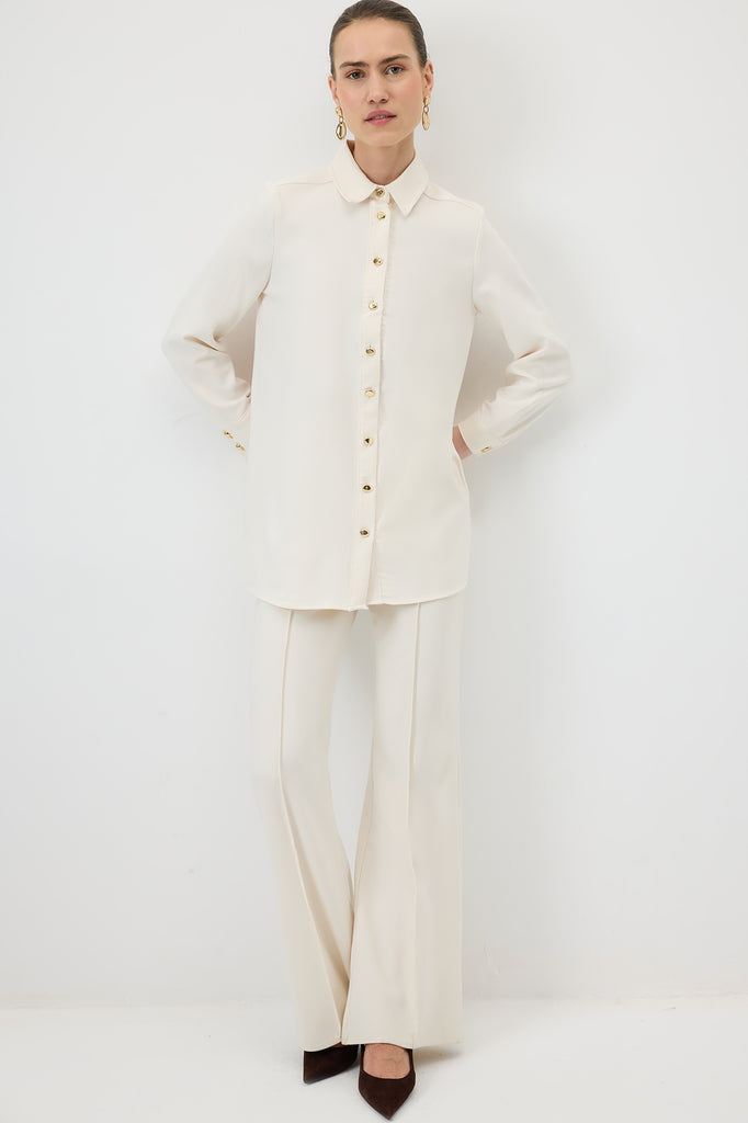 Arka kemer detaylı gömlek. Gold düğmeli. Uzun kollu.