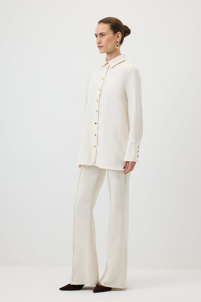 GENİŞ MANŞETLİ KREP GÖMLEK