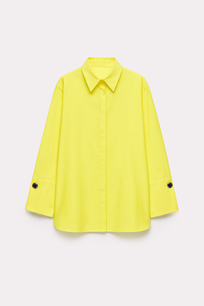 Klasik yaka. Uzun kollu. Geniş manşetli ve düğme kapamalı. Önden düğme kapamalı.