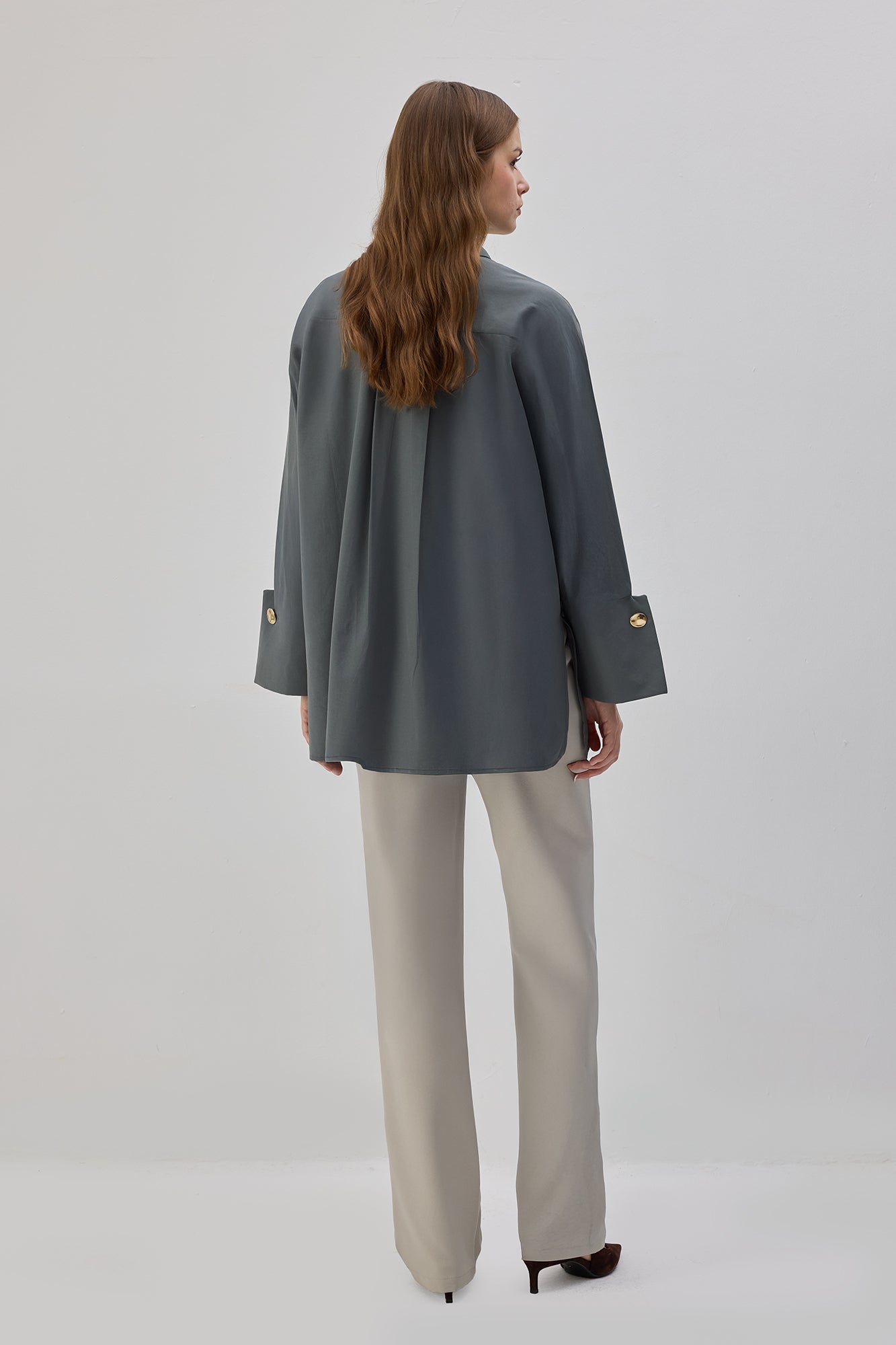 GENİŞ MANŞETLİ POPLİN GÖMLEK