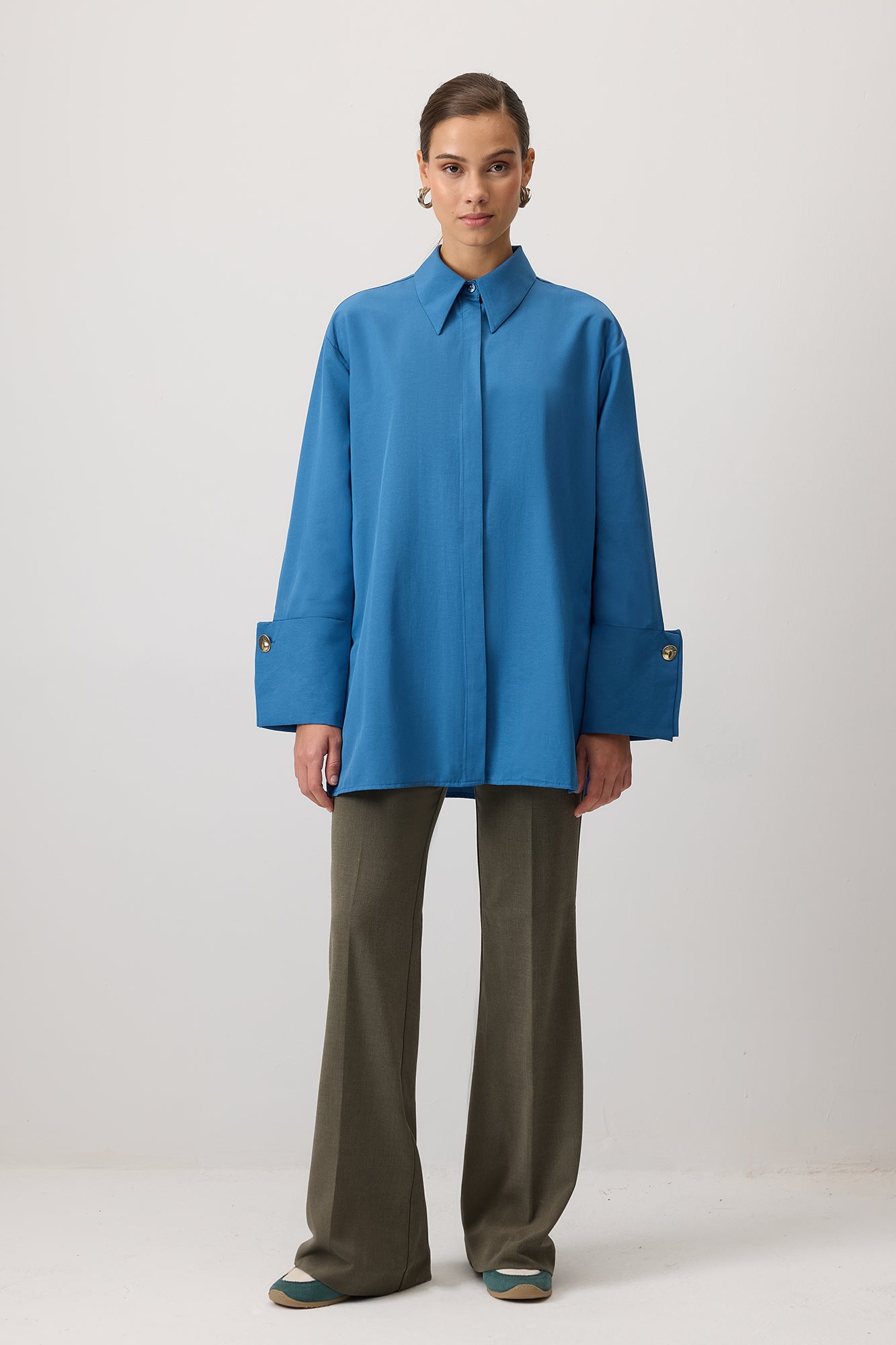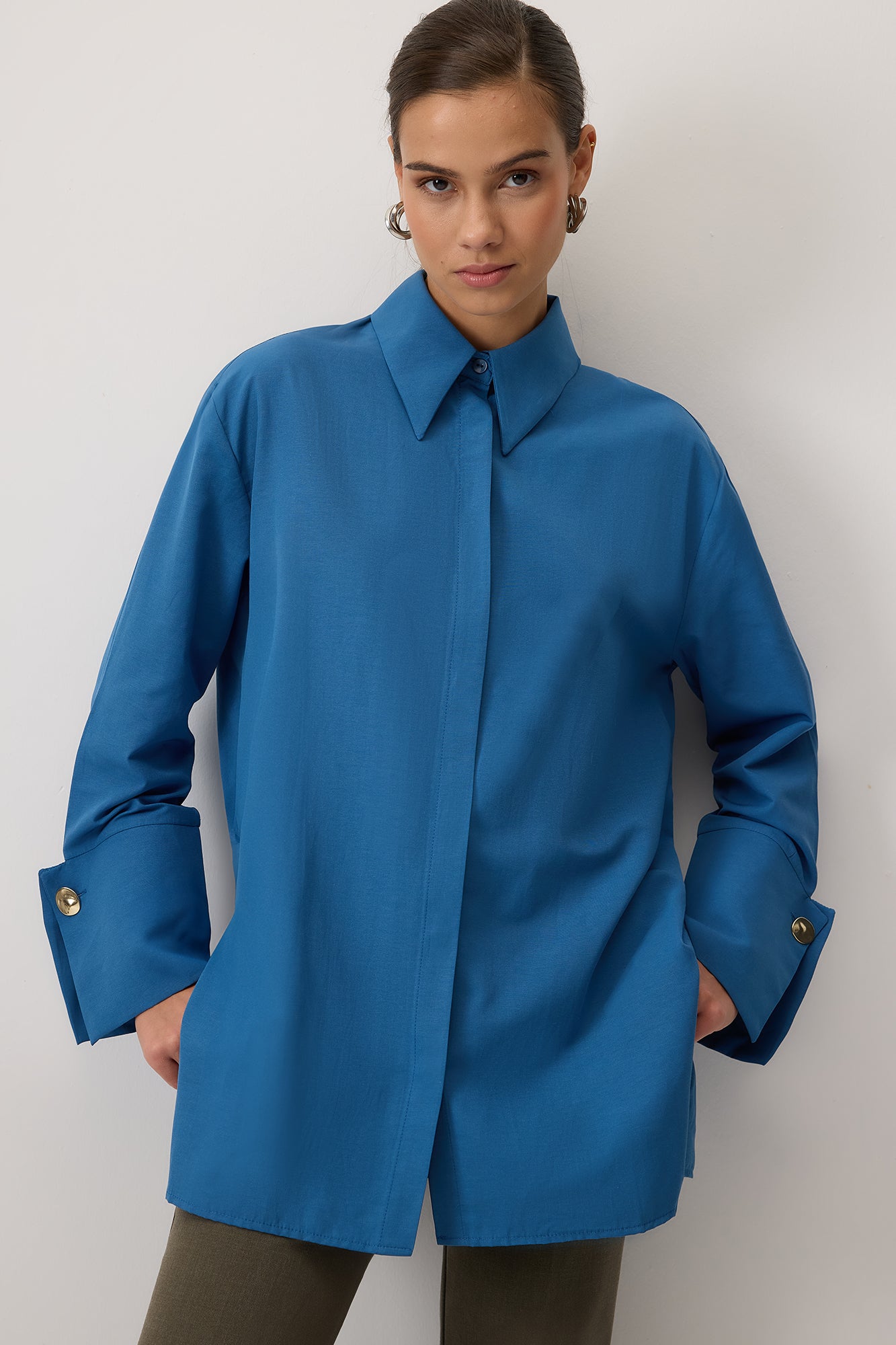 GENİŞ MANŞETLİ POPLİN GÖMLEK