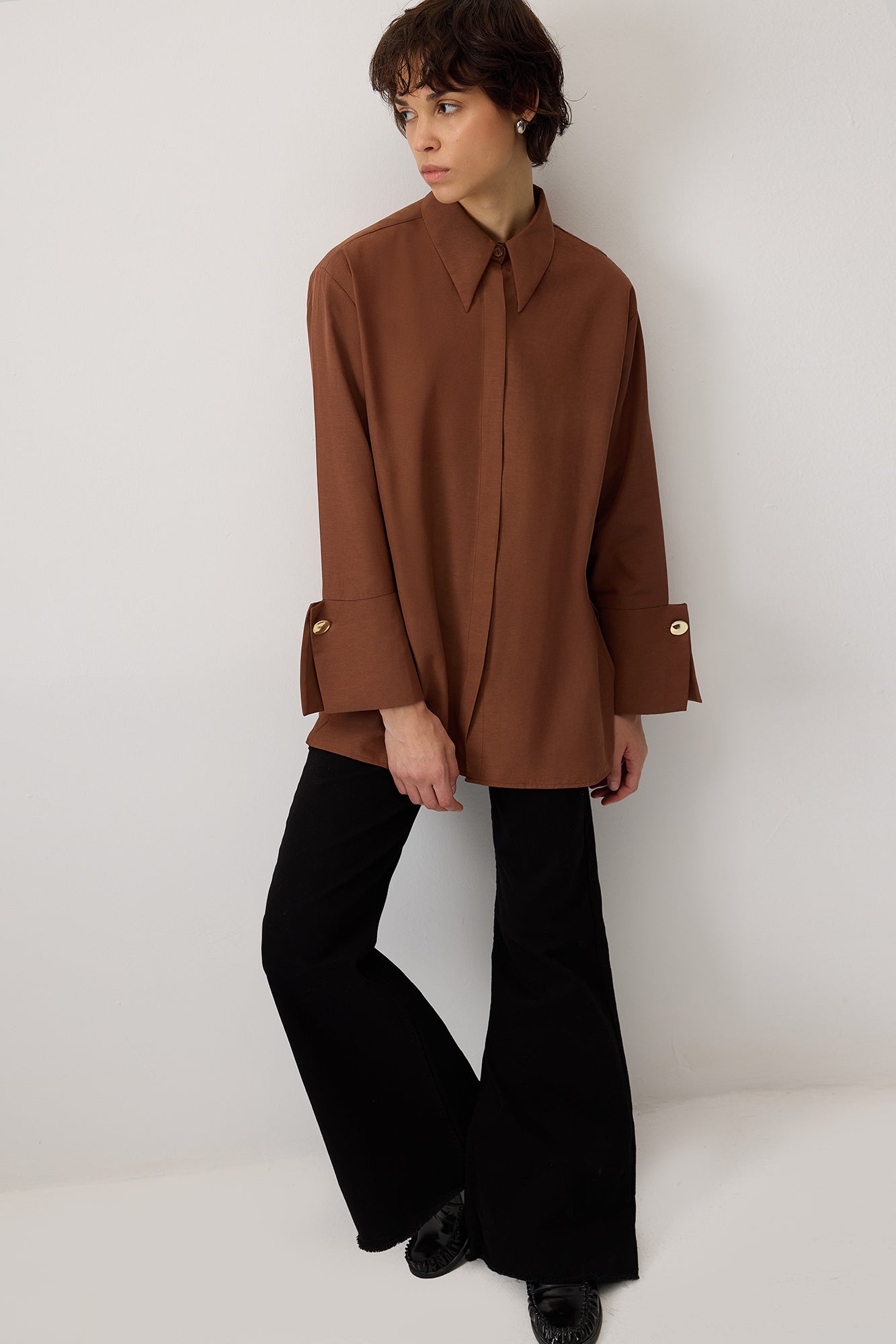 GENİŞ MANŞETLİ POPLİN GÖMLEK