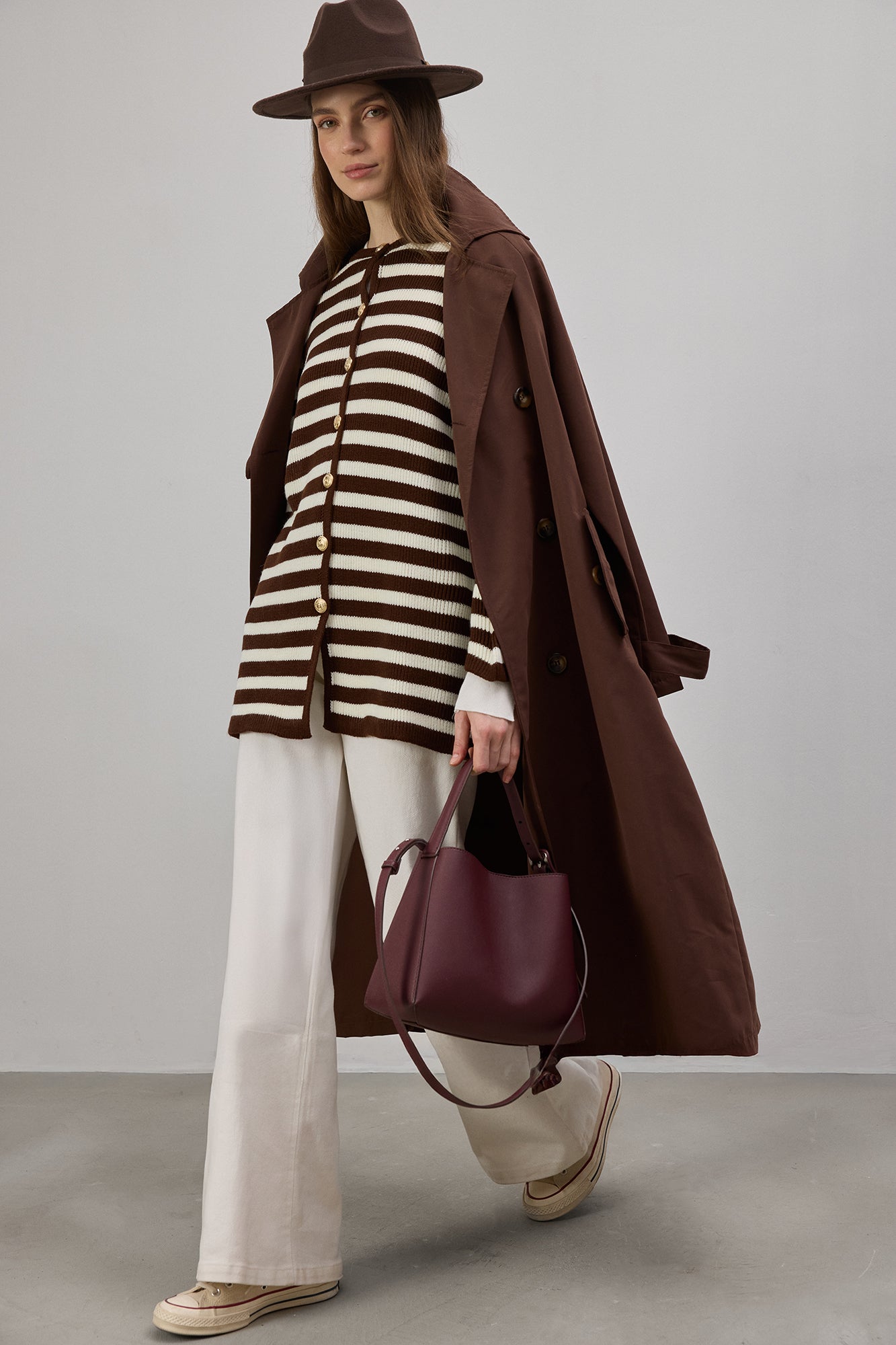 GOLD DÜĞMELİ ÇİZGİLİ UZUN HIRKA