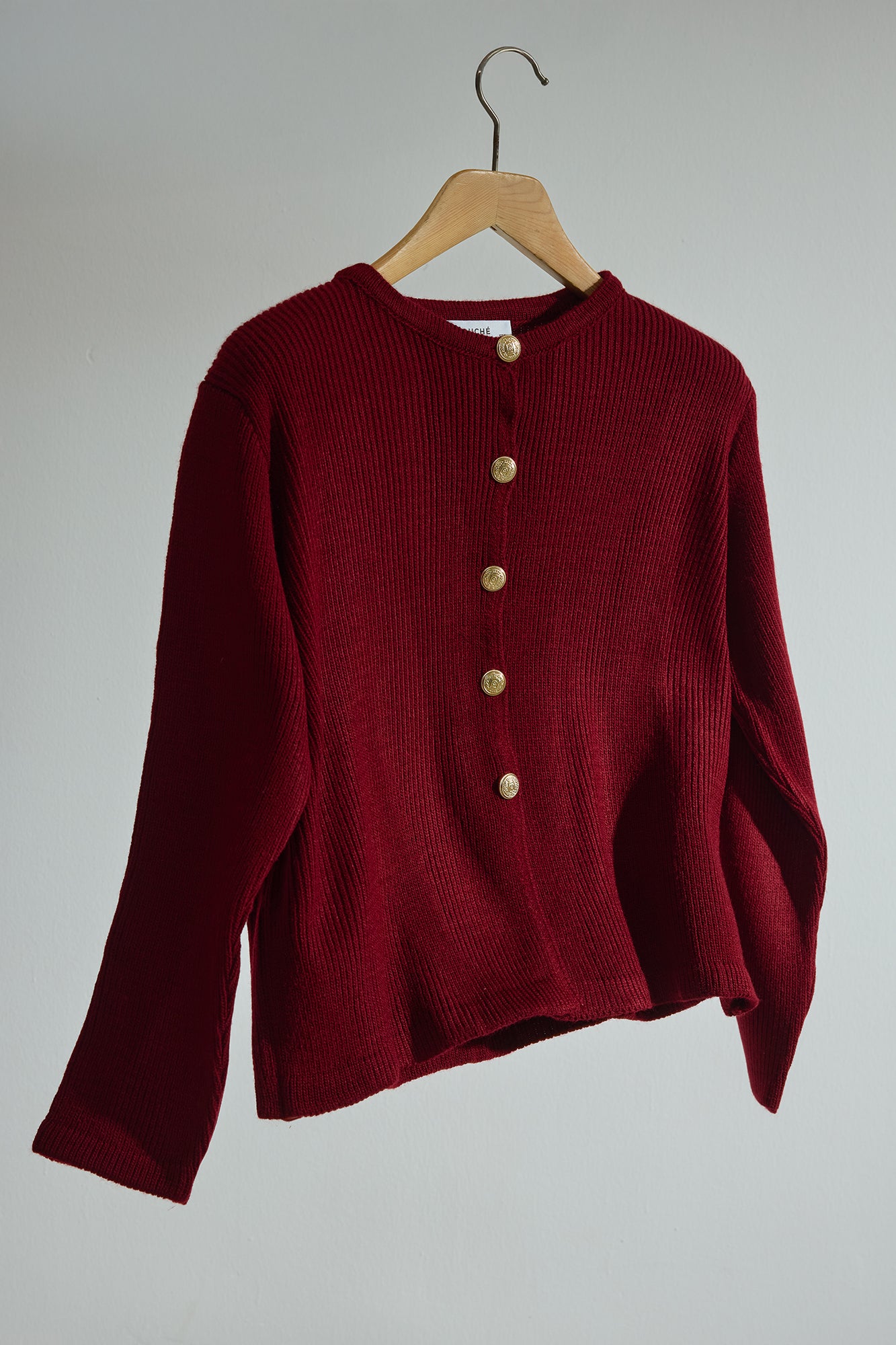 Bisiklet yaka. Uzun kollu ve düşük omuzlu. Gold düğme detaylı. Önden düğme kapamalı.