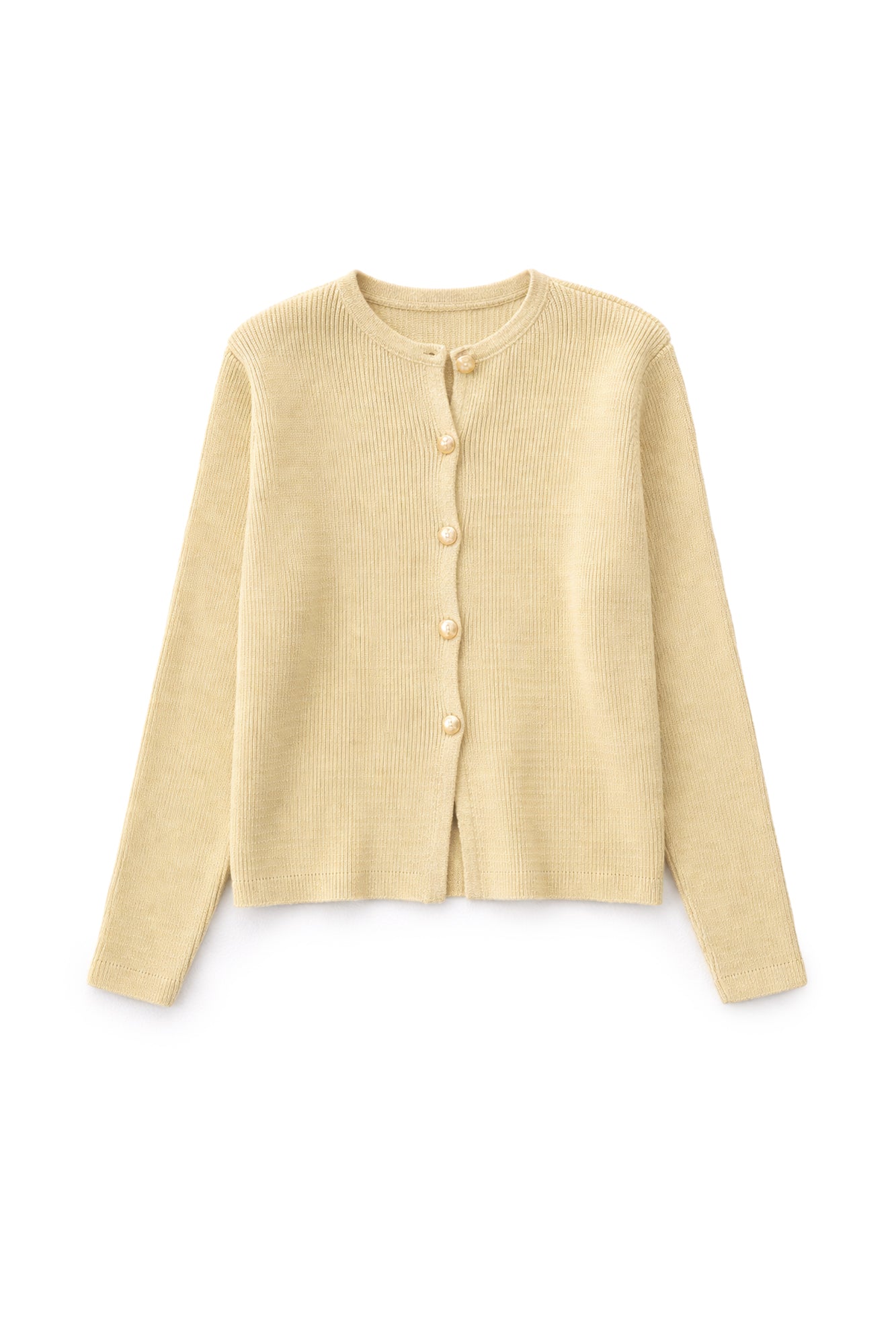 Bisiklet yaka. Uzun kollu ve düşük omuzlu. Gold düğme detaylı. Önden düğme kapamalı.