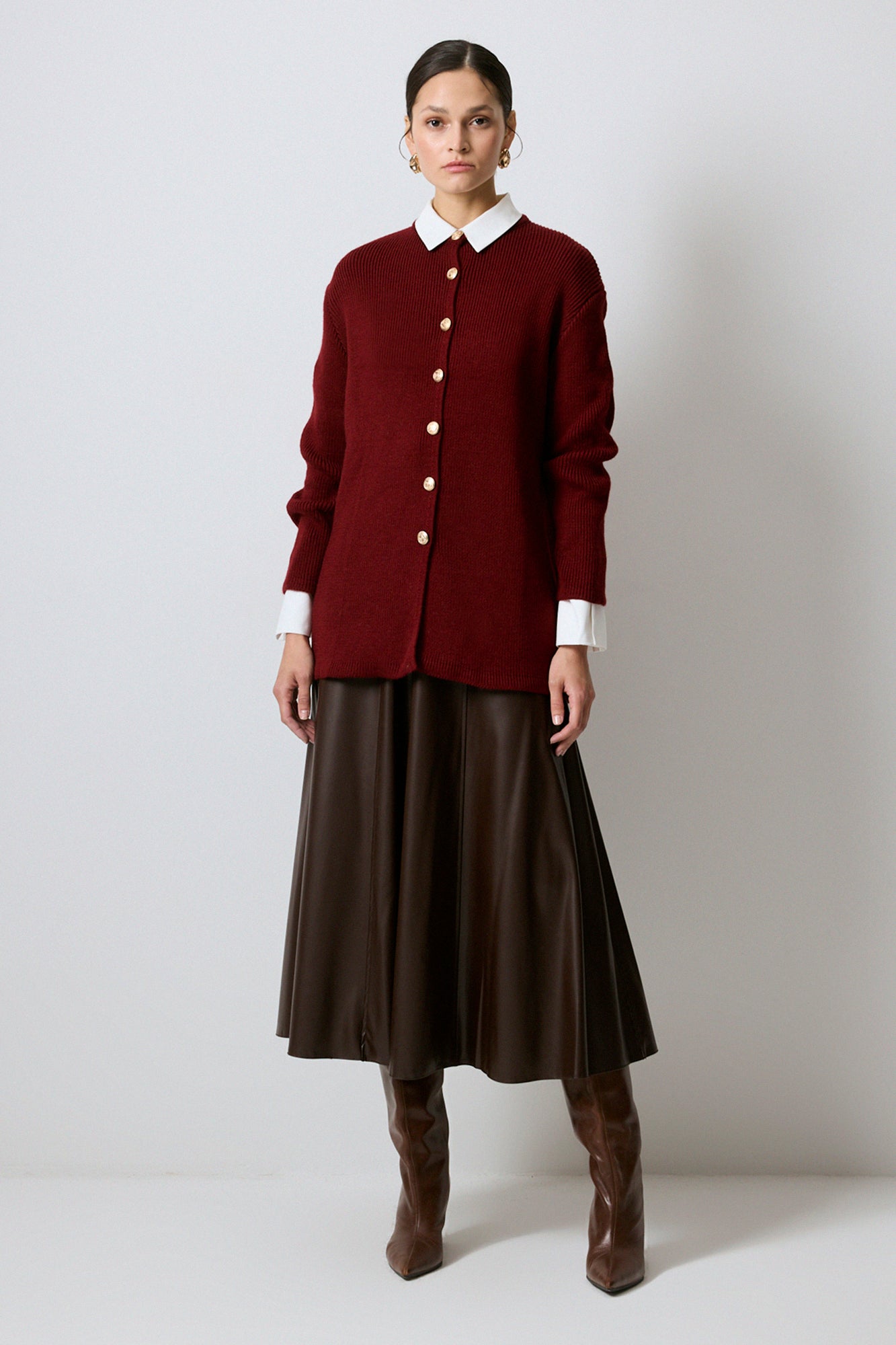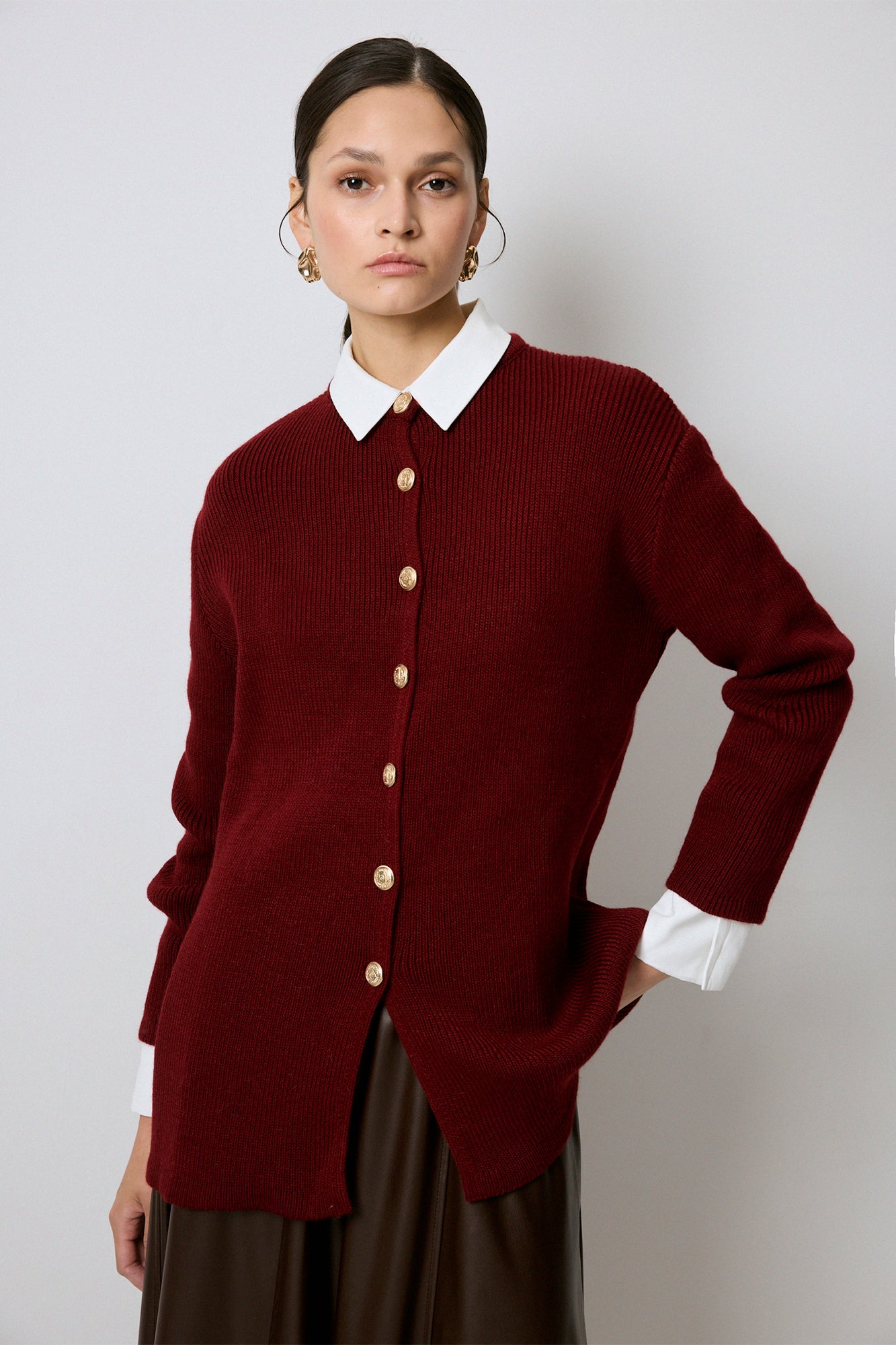 Zarafeti ve konforu bir araya getiren bu uzun hırka, altın düğme detaylarıyla klasik ve modern stilin mükemmel birleşimini sunuyor. Yumuşak dokusu sayesinde sıcak tutarken, uzun ve rahat kesimi ile şık ve özgün kombinler yapmanıza olanak tanıyor. Kontrast yaka ve manşet detayları sofistike bir hava katarken, düğmeli tasarımı sayesinde ister açık ister kapalı olarak kullanılabilir. Günlük jean kombinlerinizle casual bir tarz yakalayabilir ya da deri eteklerle tamamlayarak güçlü ve şık bir görünüm oluşturabilirsiniz. Zamansız ve çok yönlü bu hırka, her sezon stilinizi tamamlayacak!
