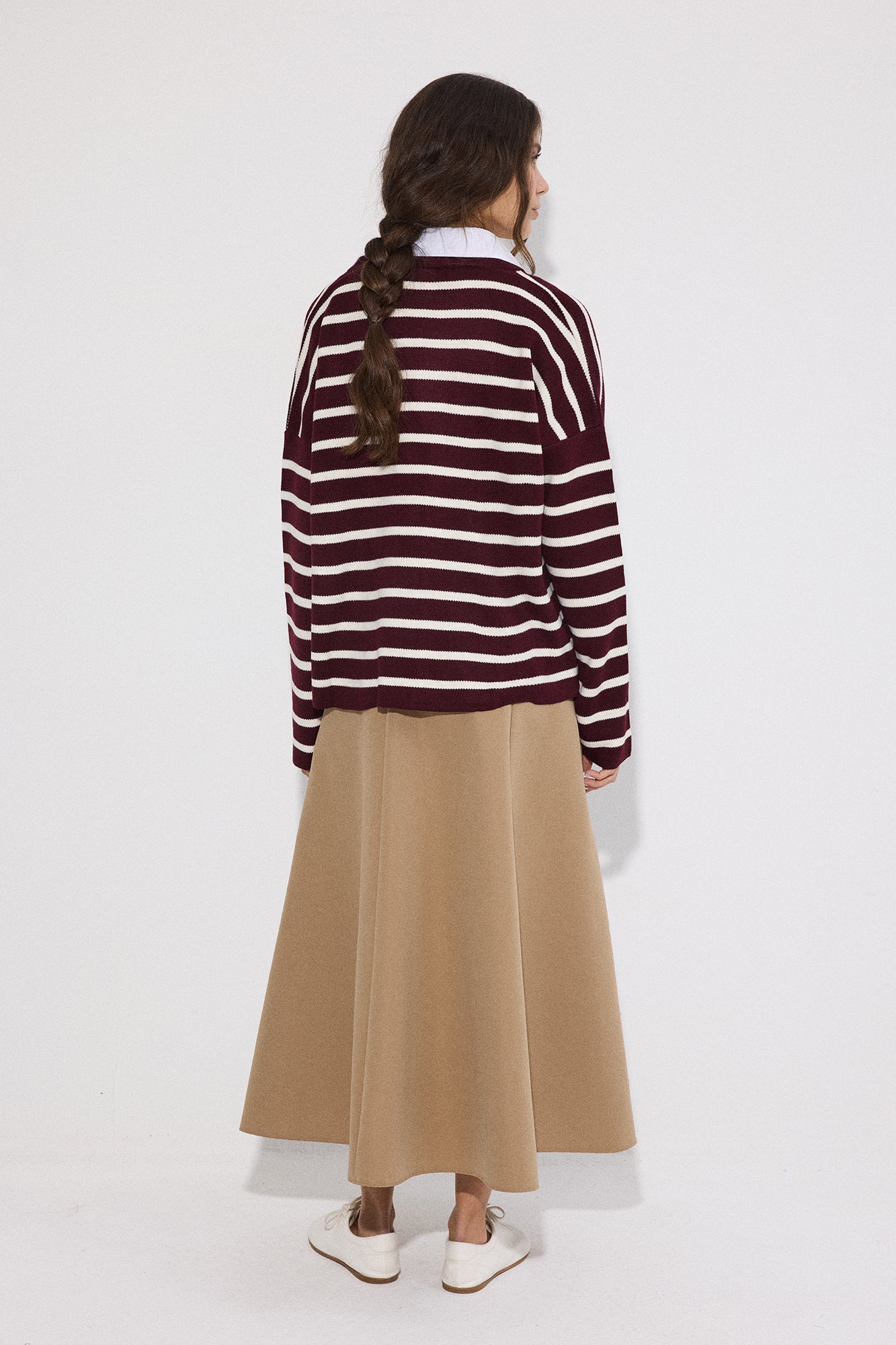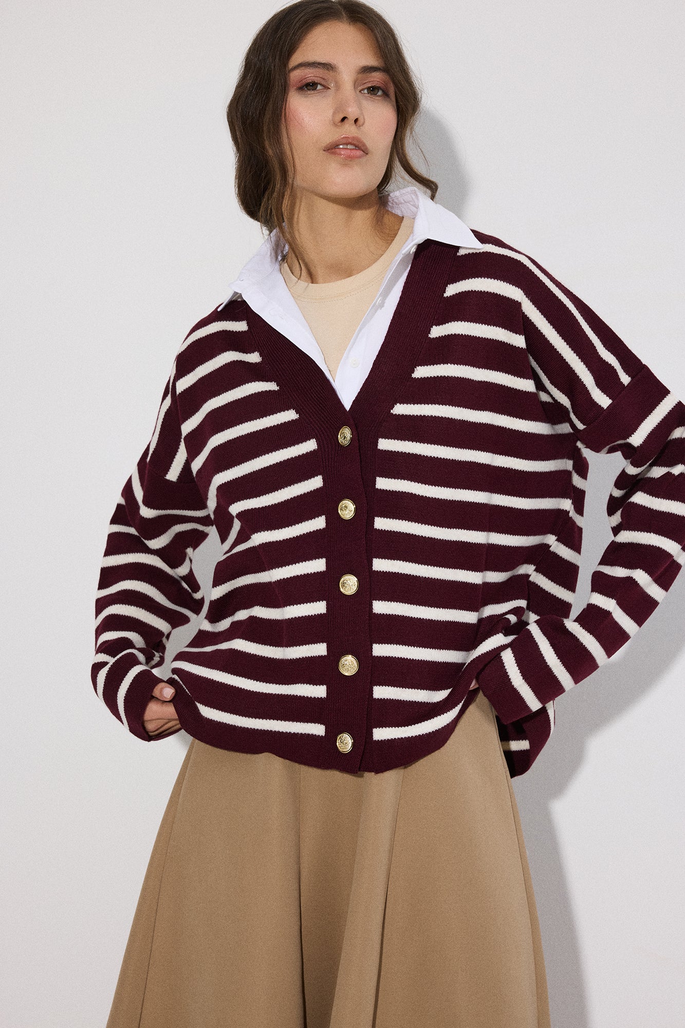 GÖMLEK DETAYLI ÇİZGİLİ TRİKO HIRKA
