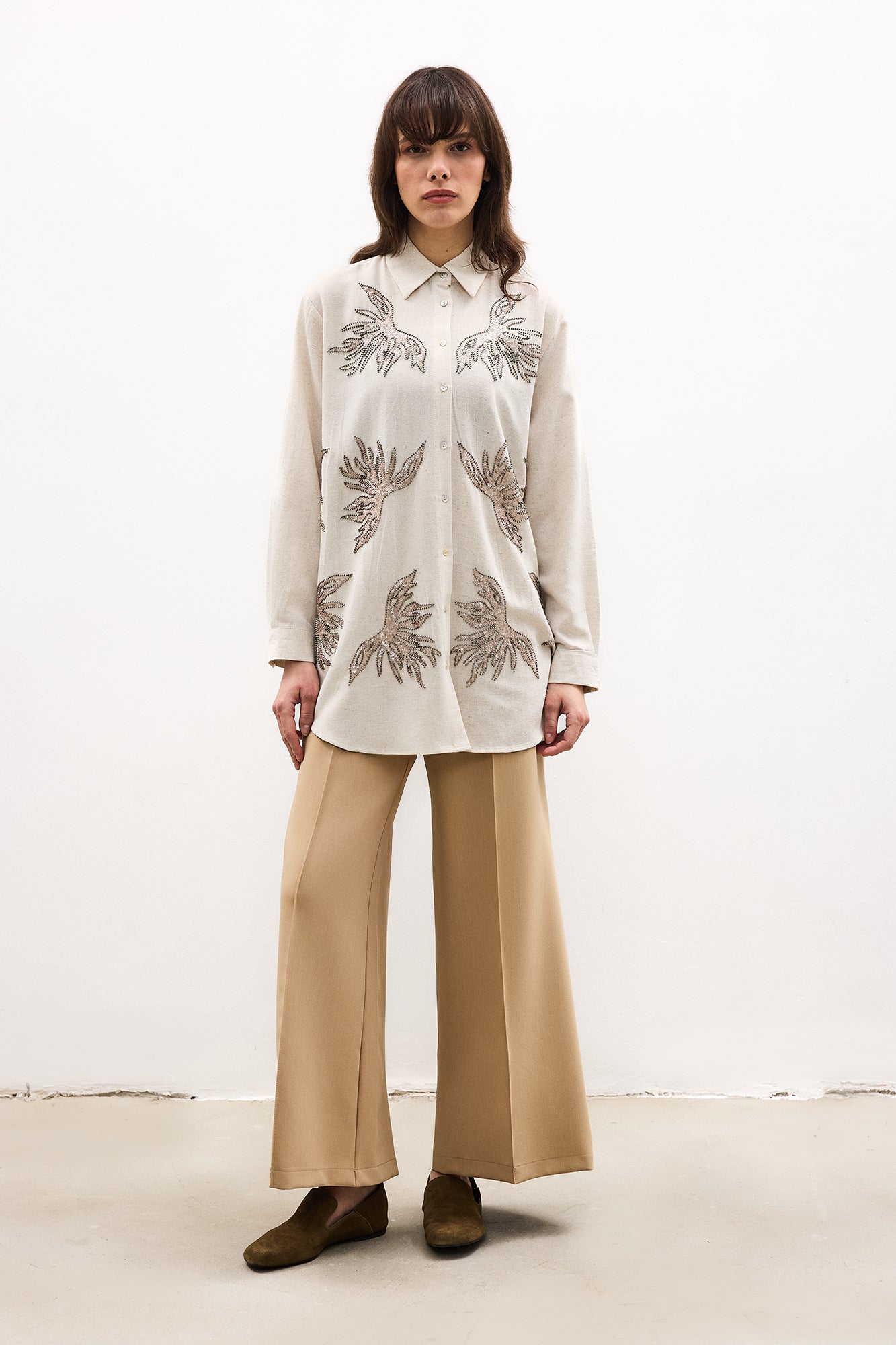 İŞLEMELİ KETEN GÖMLEK