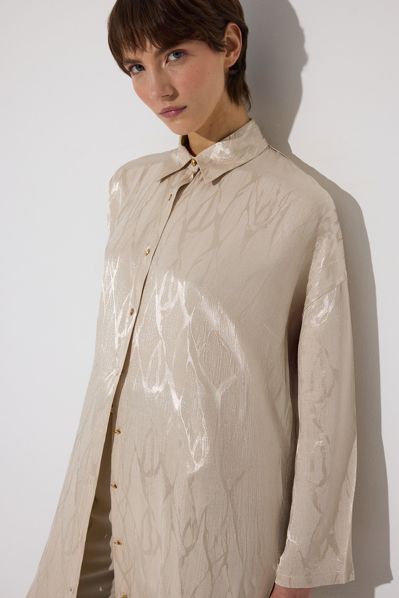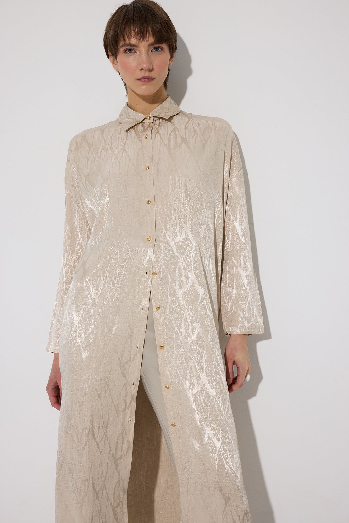 Gömlek yaka. Uzun kollu. Düğme kapamalı. Yanları yırtmaçlı.