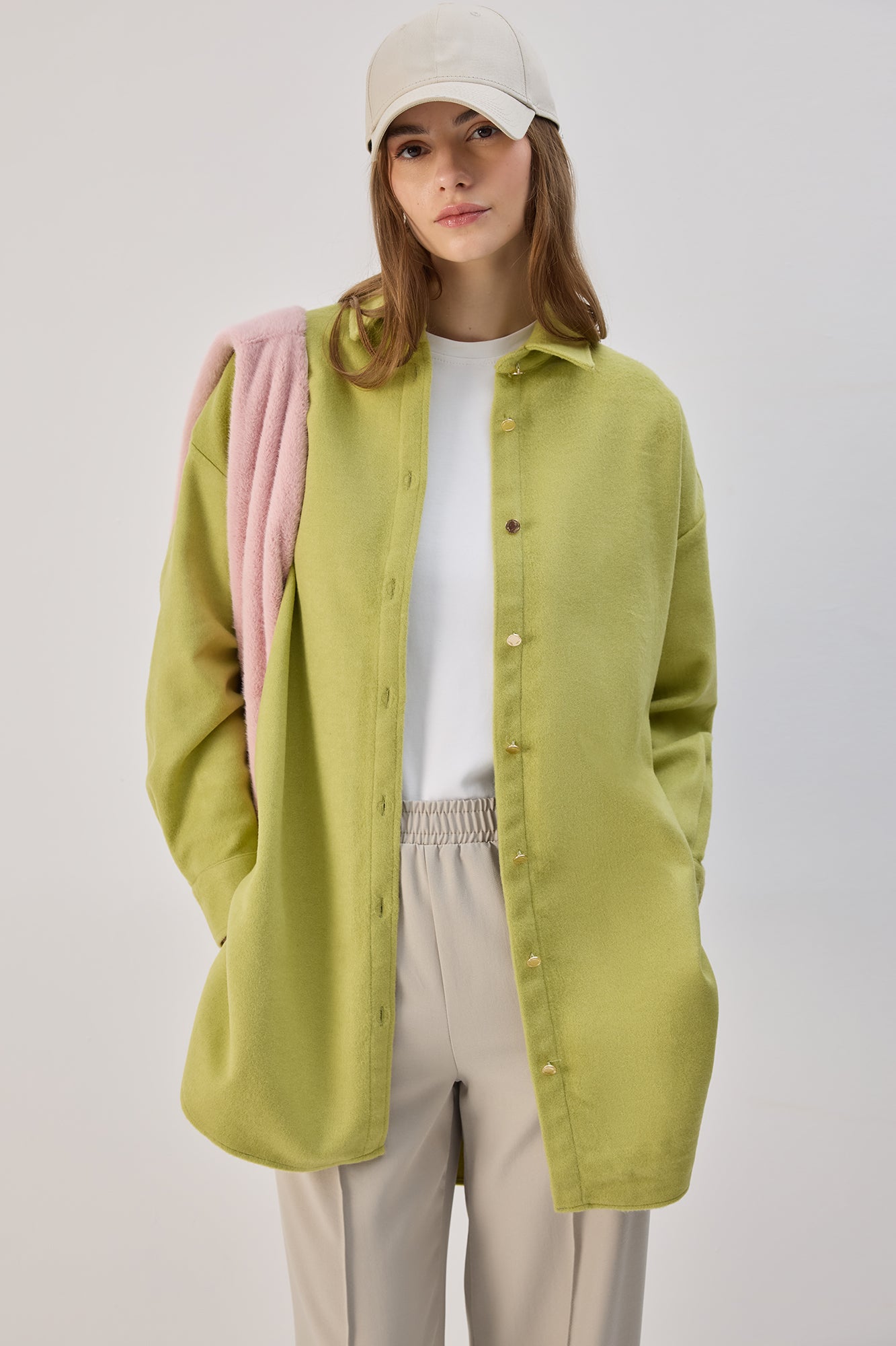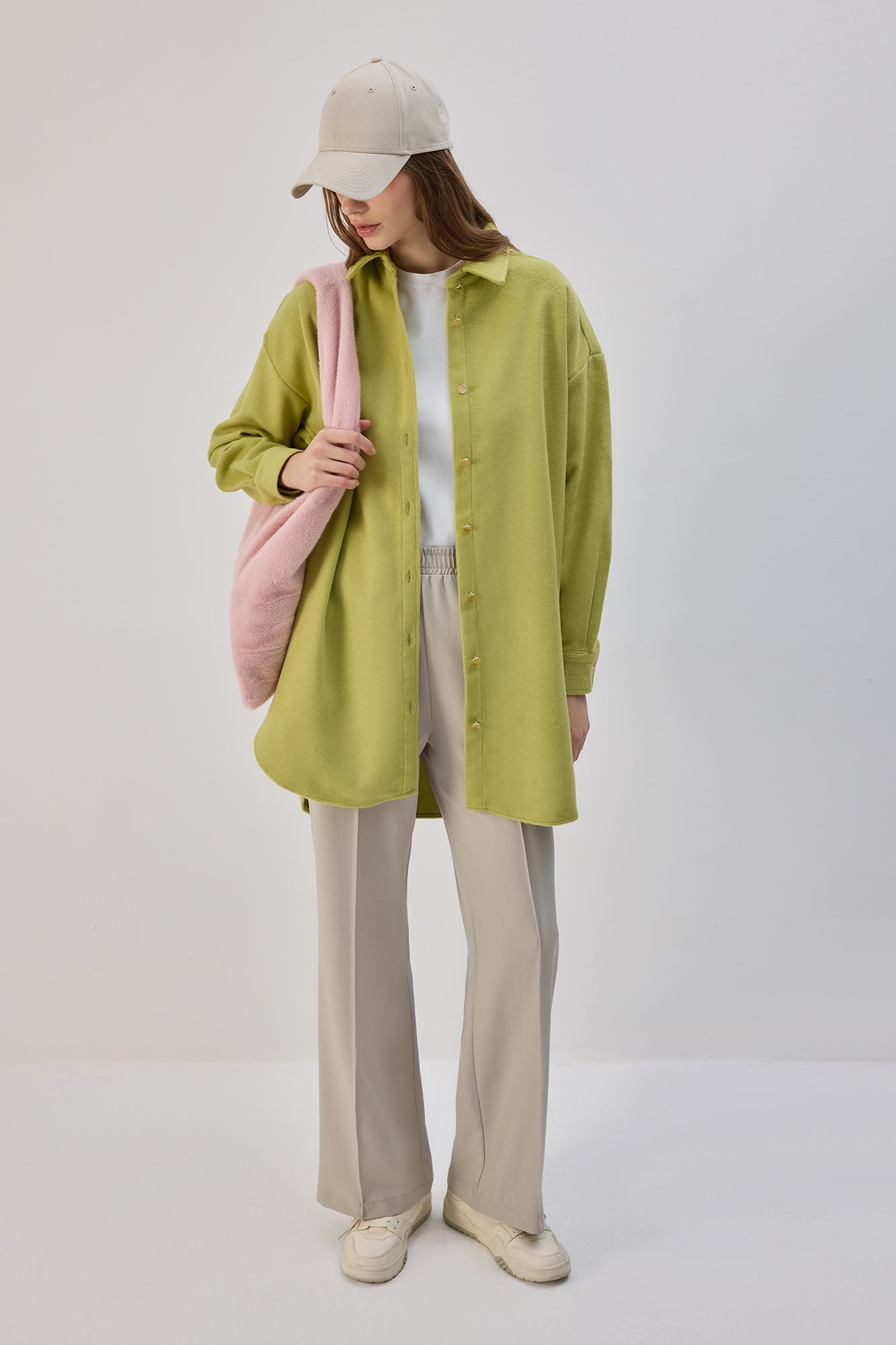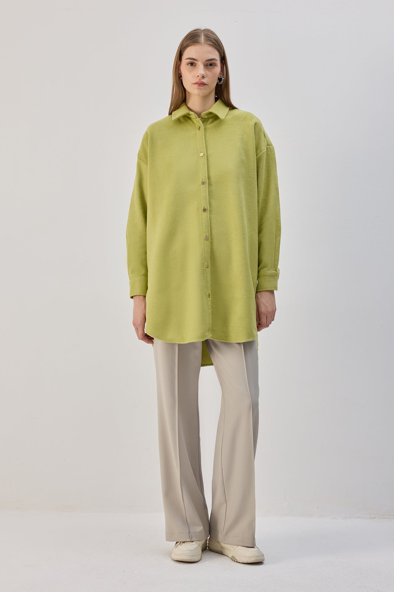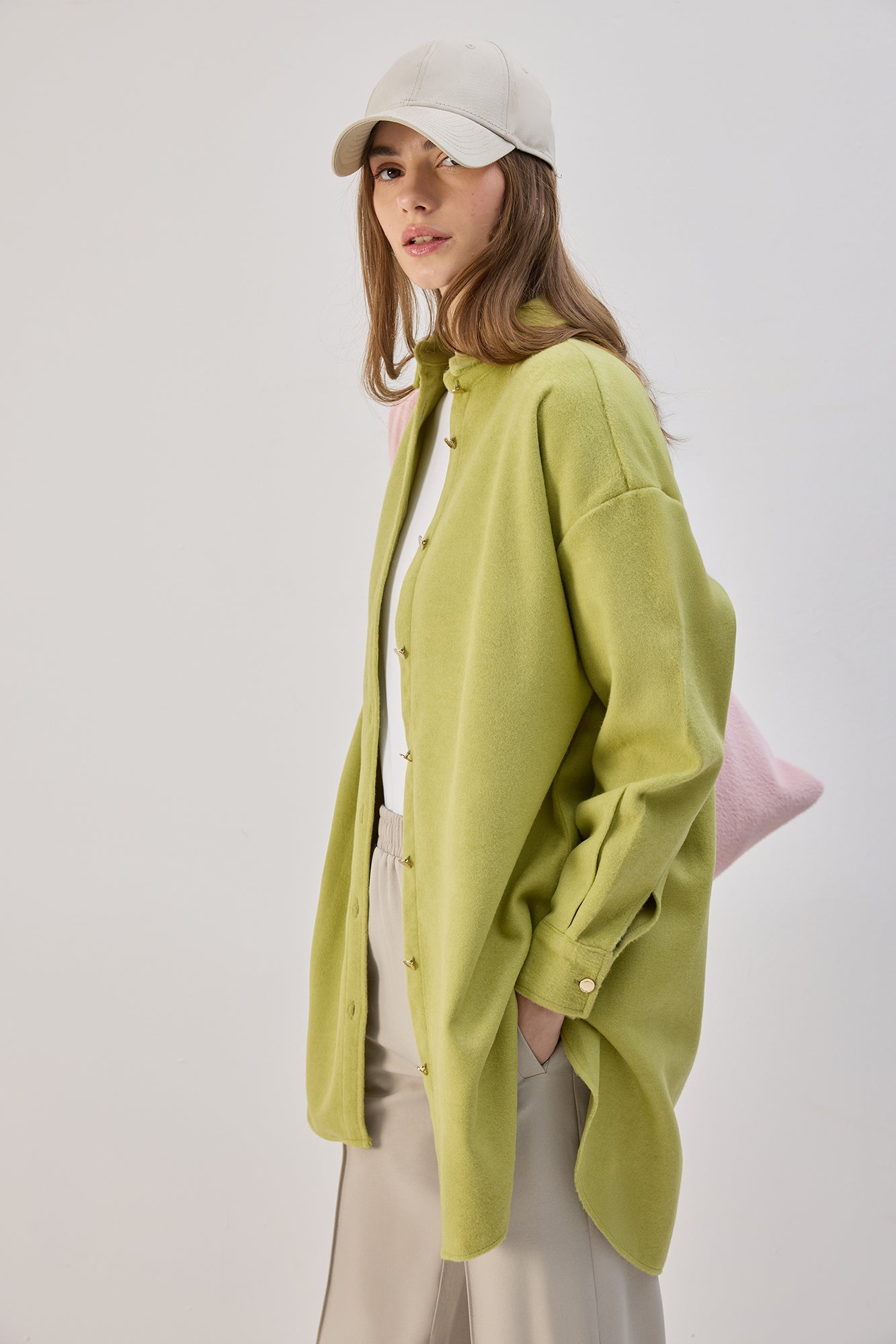 Klasik yakalı. Manşetli uzun kollu. Kalın kaşe gömlek.