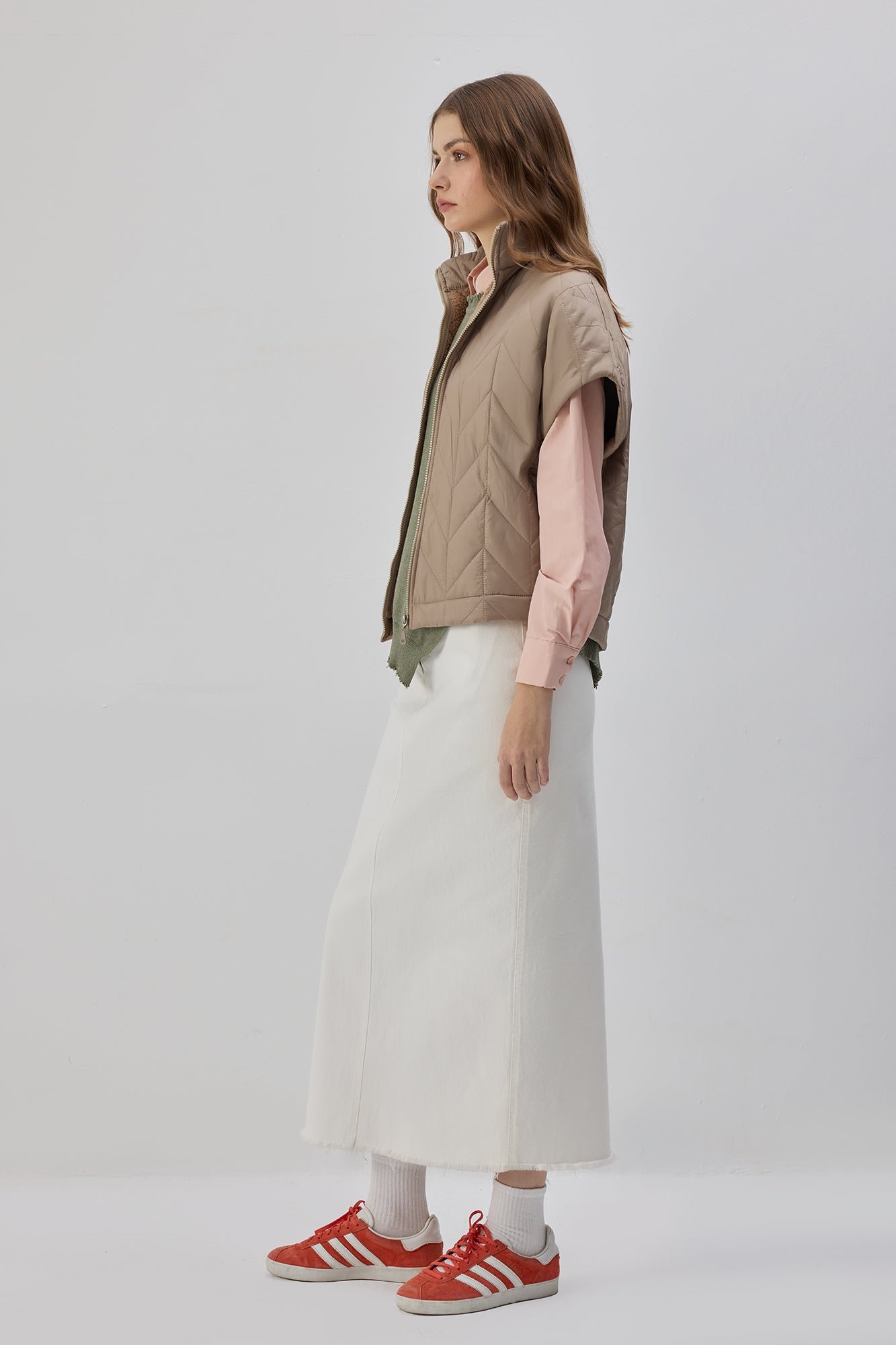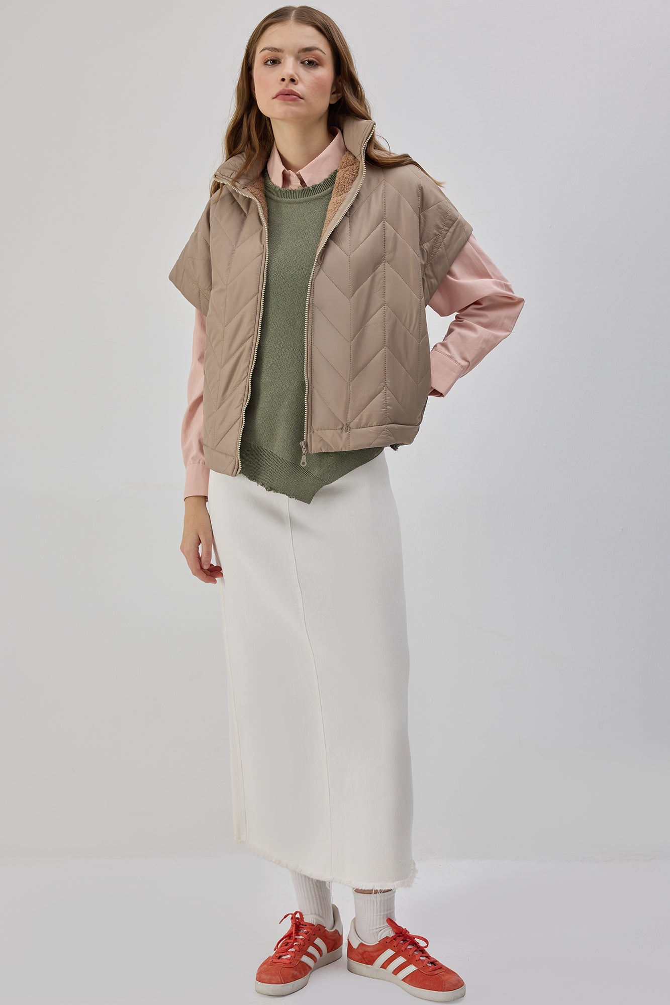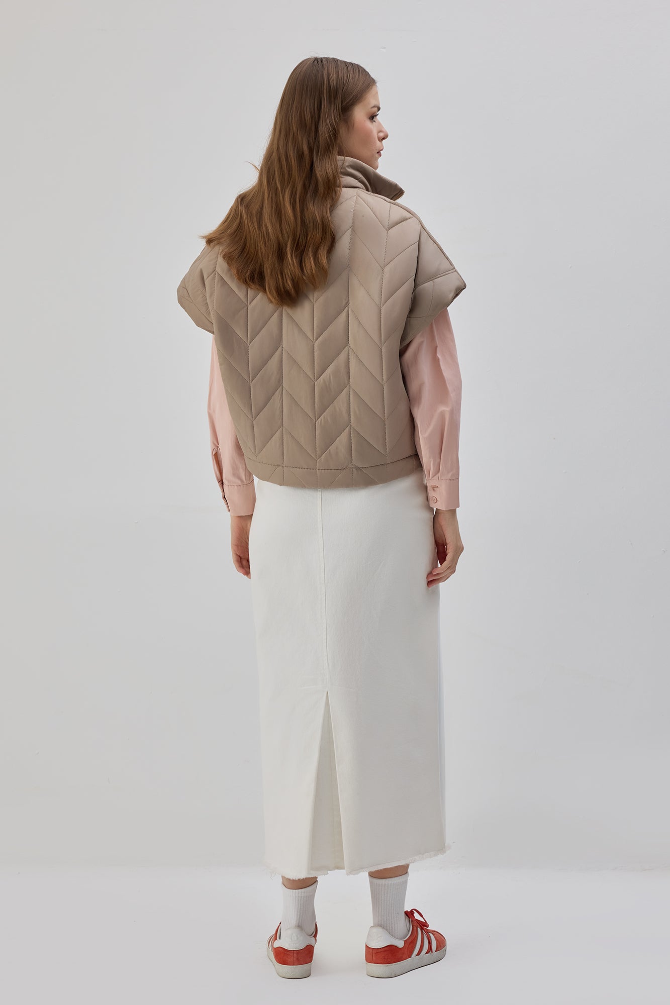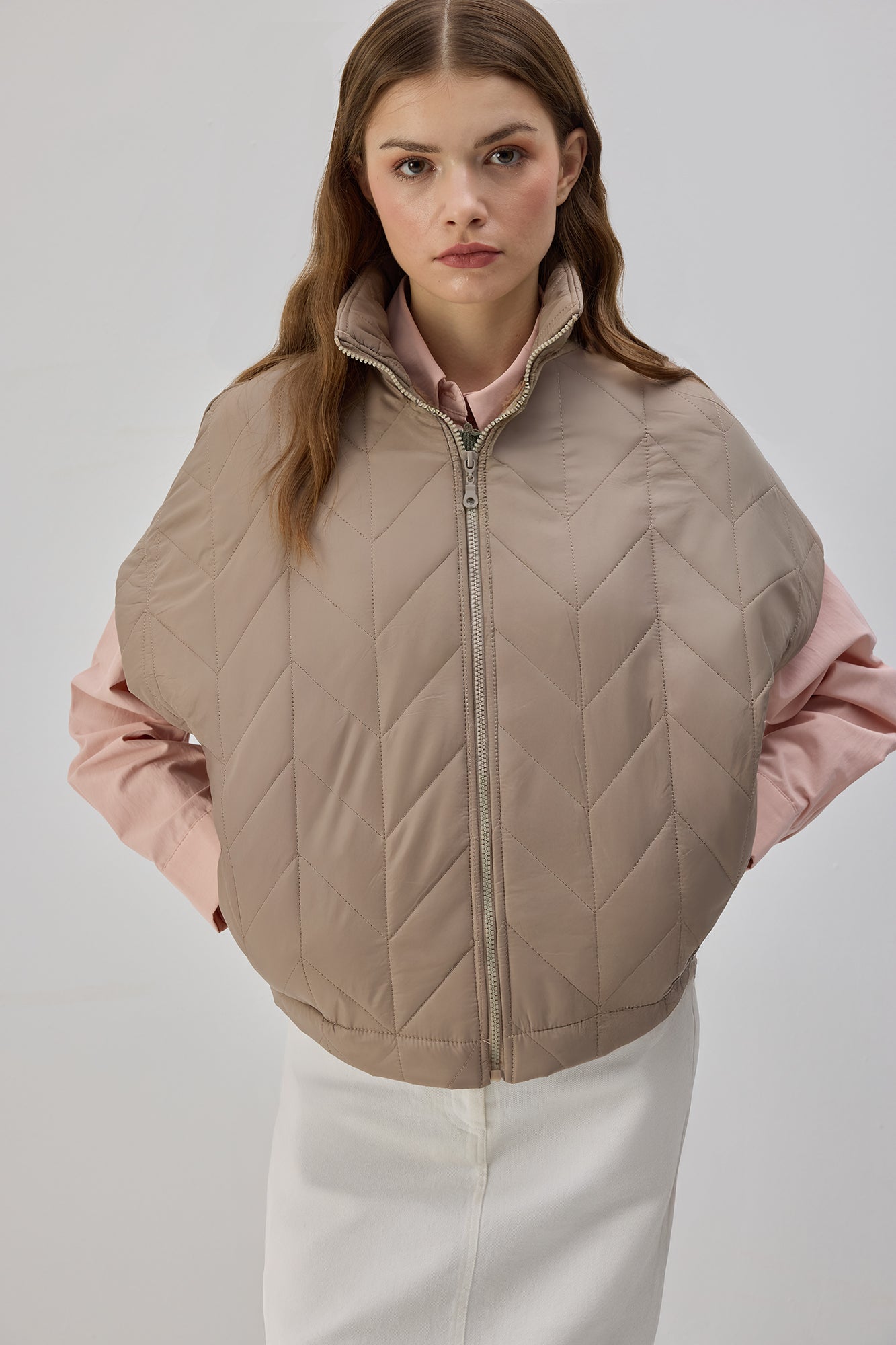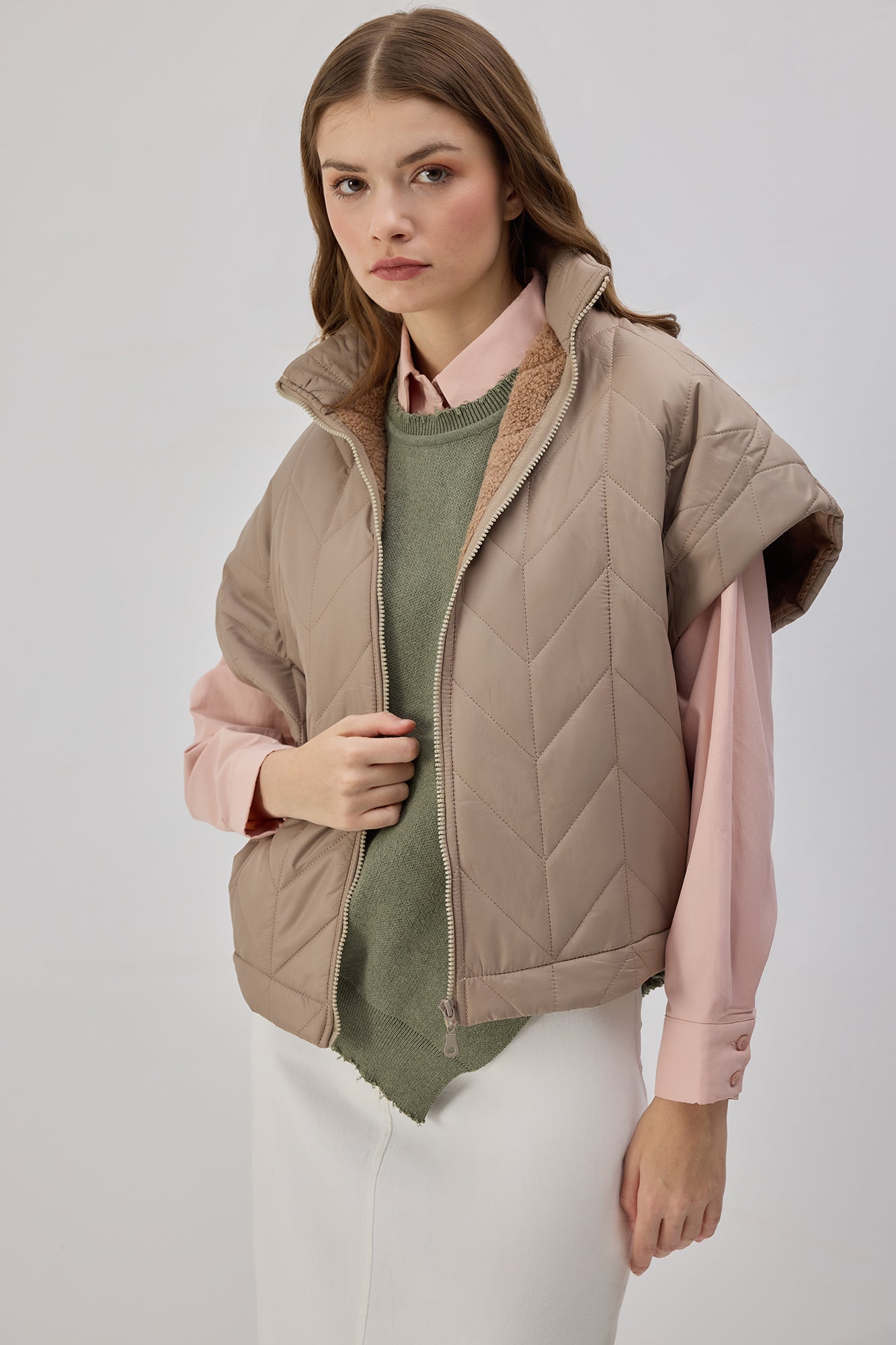 Teddy astarlı. Kapitone yüzeyli. Fermuarlı yelek.