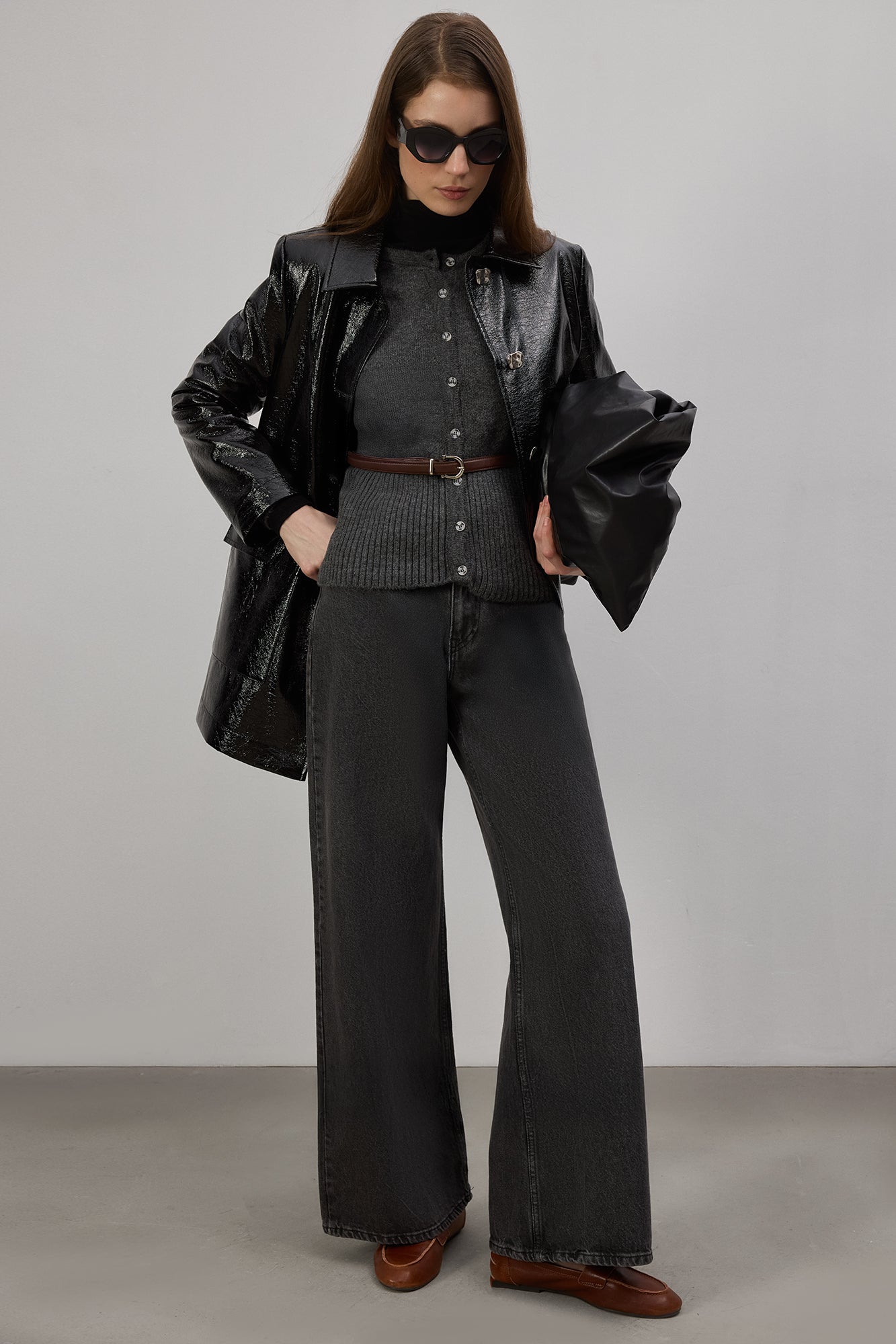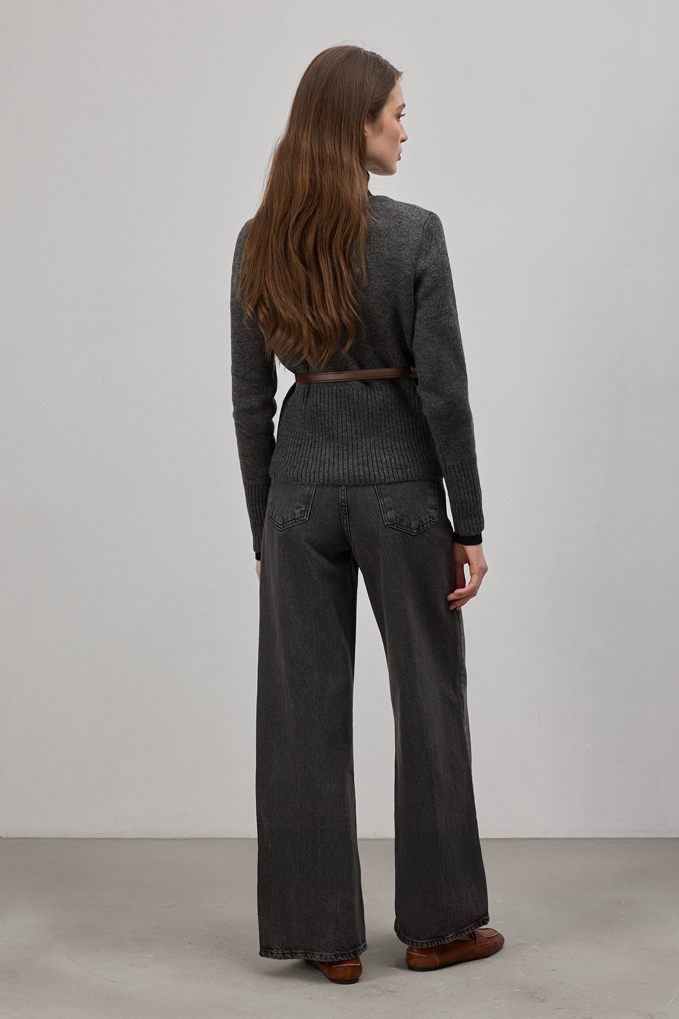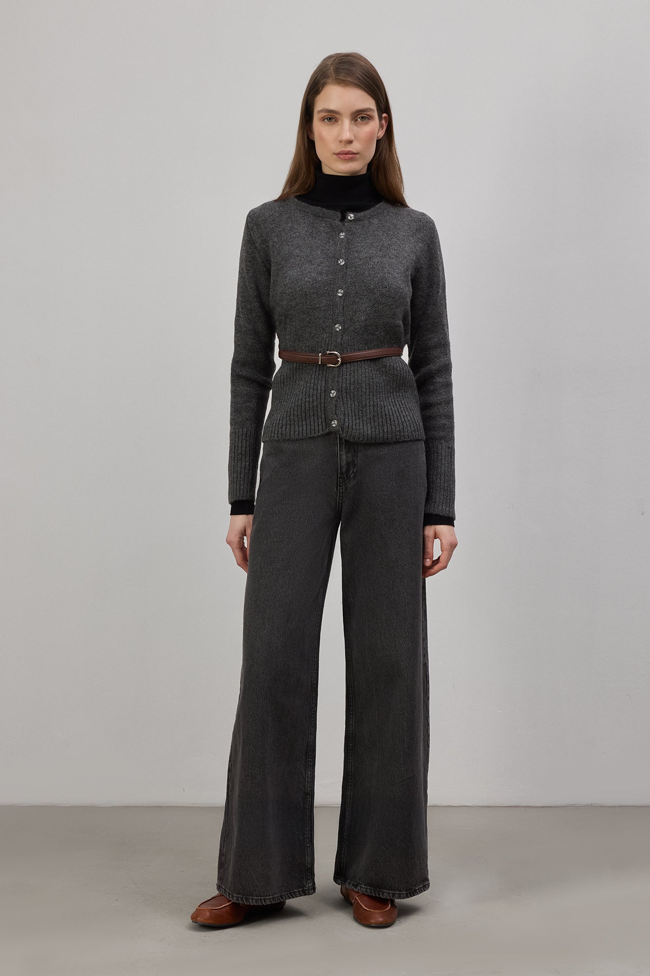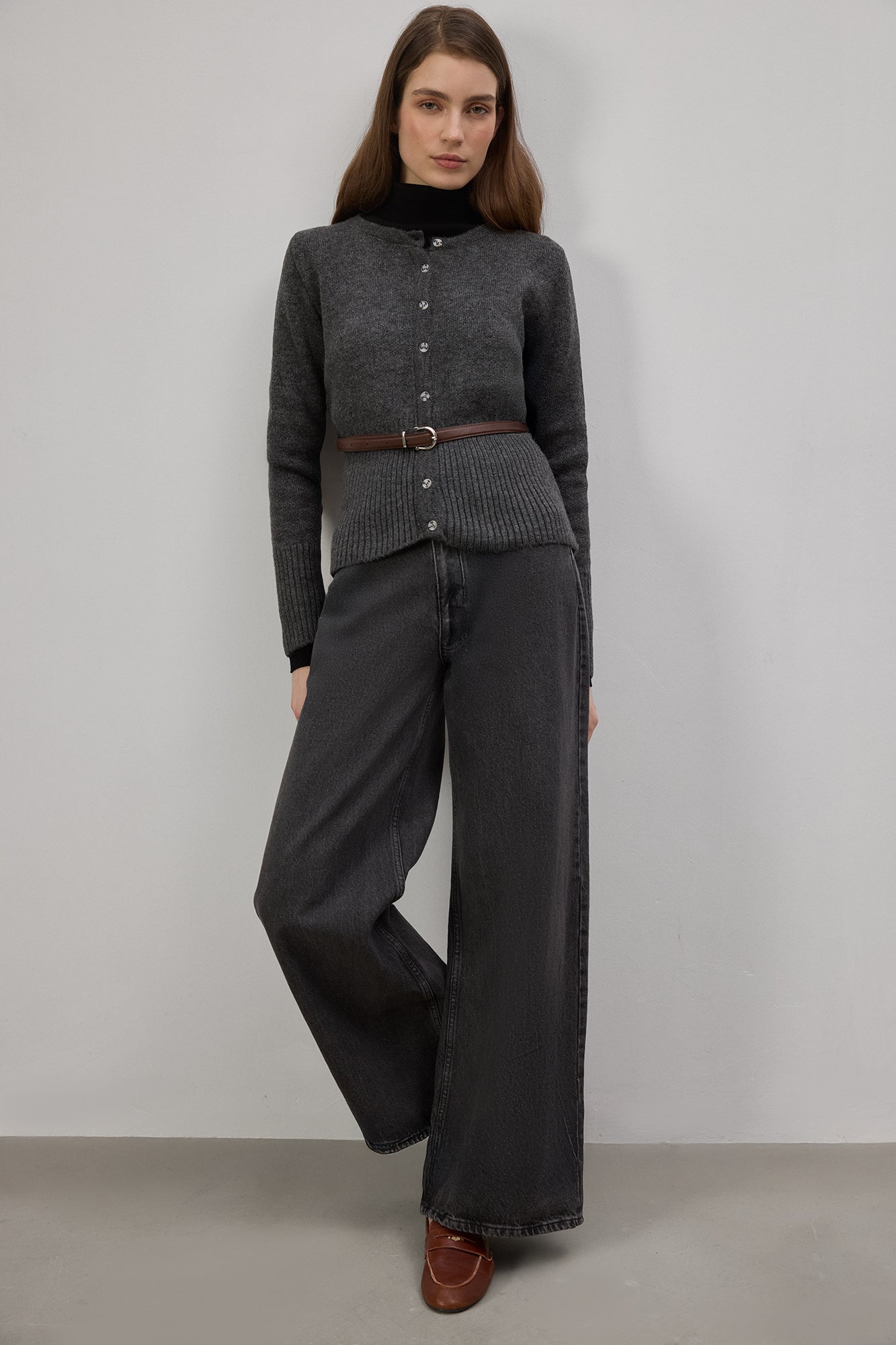 Düğme kapamalı. Uzun kollu. Çıkarılabilir kemer detaylı. Fitilli etek ucu ve manşetler. Triko hırka.