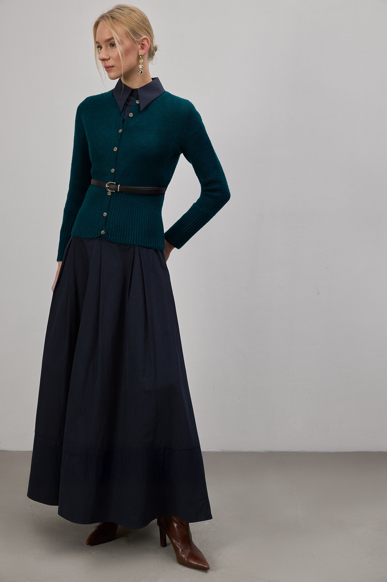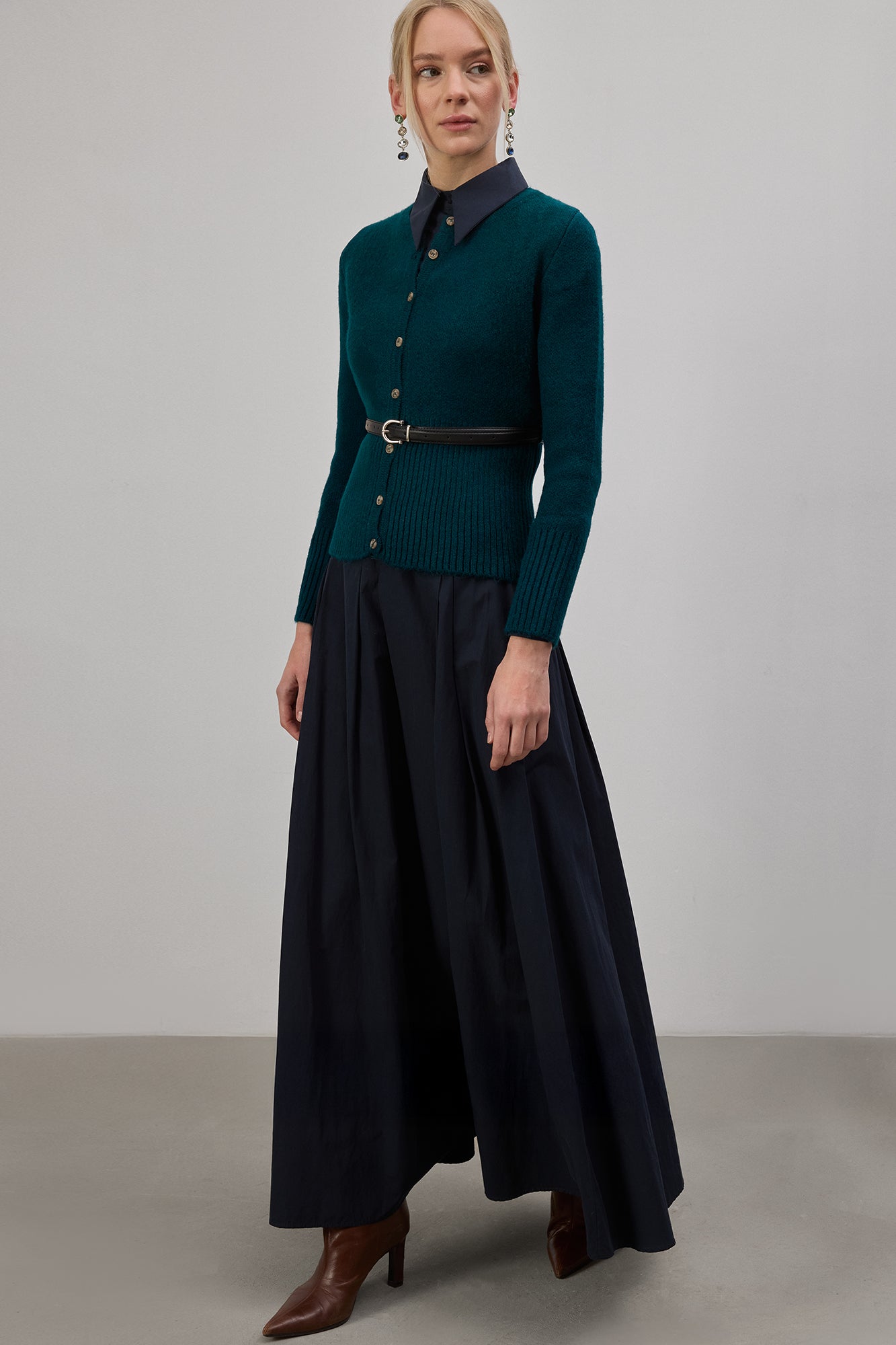Düğme kapamalı. Uzun kollu. Çıkarılabilir kemer detaylı. Fitilli etek ucu ve manşetler. Triko hırka.