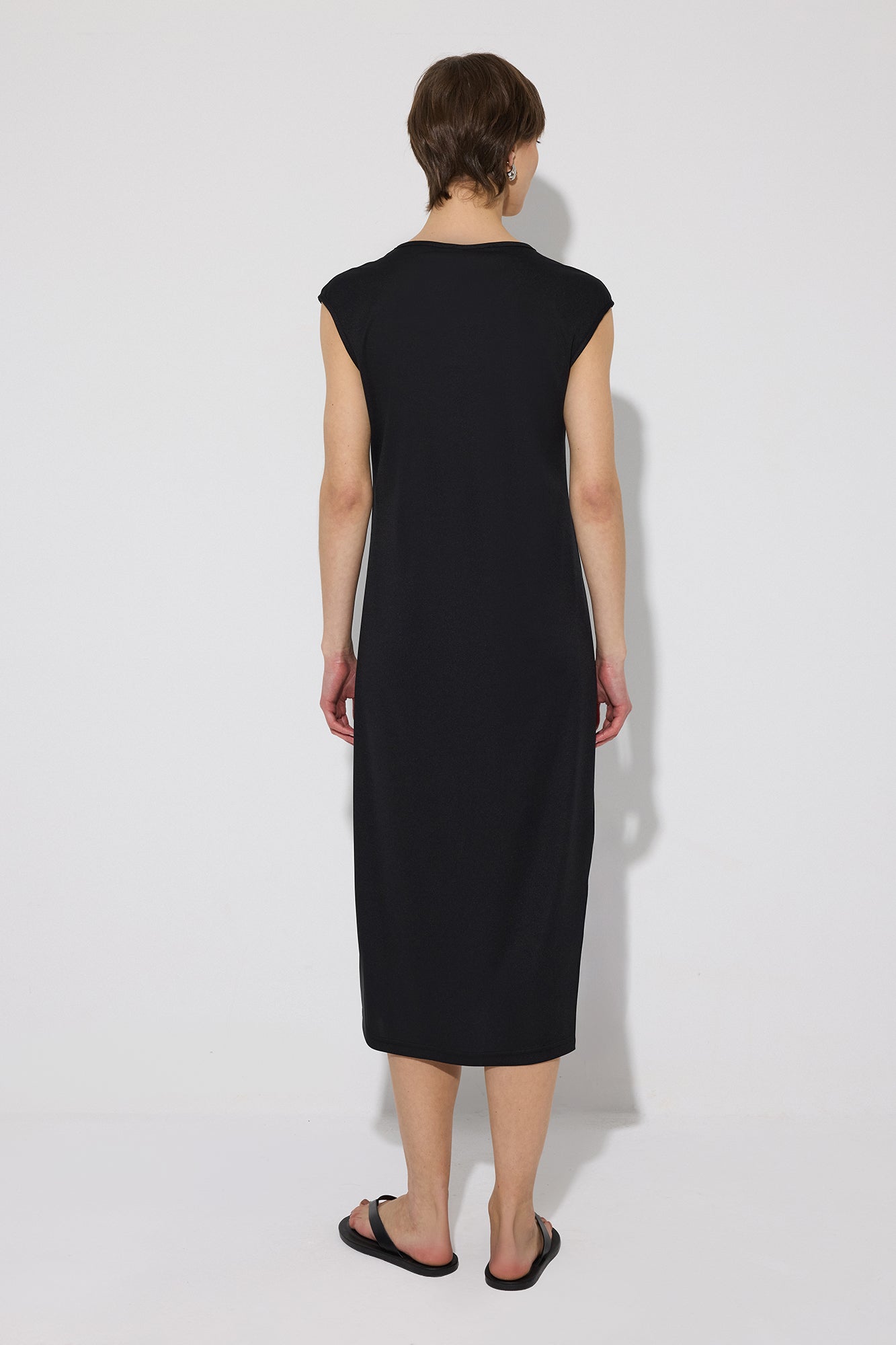 Bisiklet yaka. Kolsuz. Uzun boy. Astar.