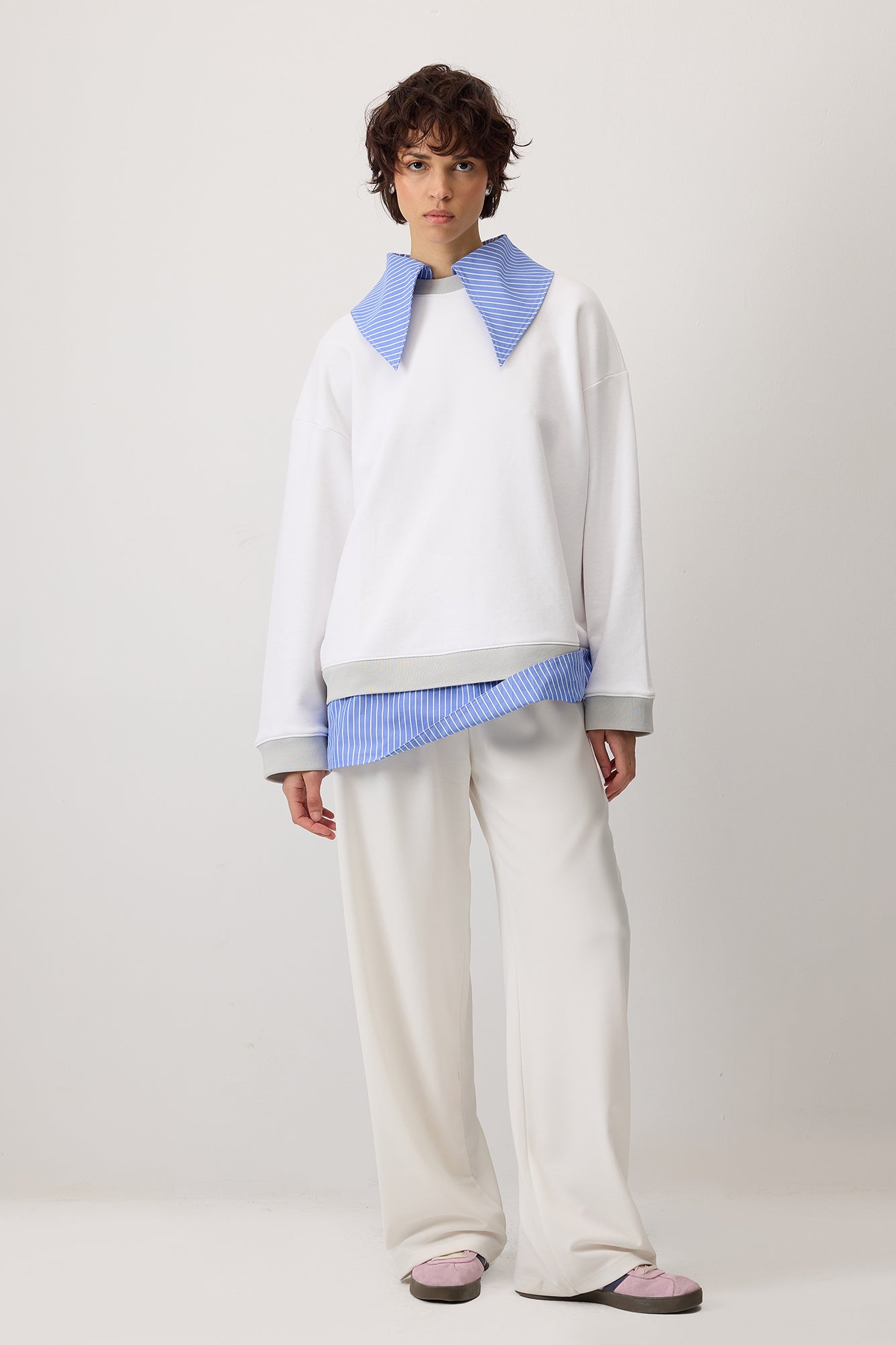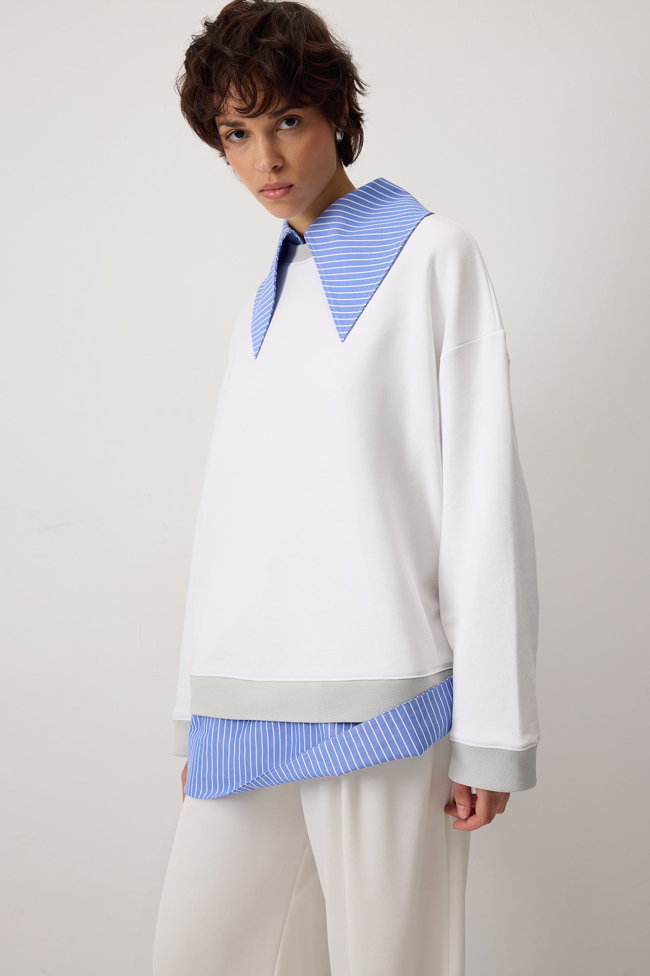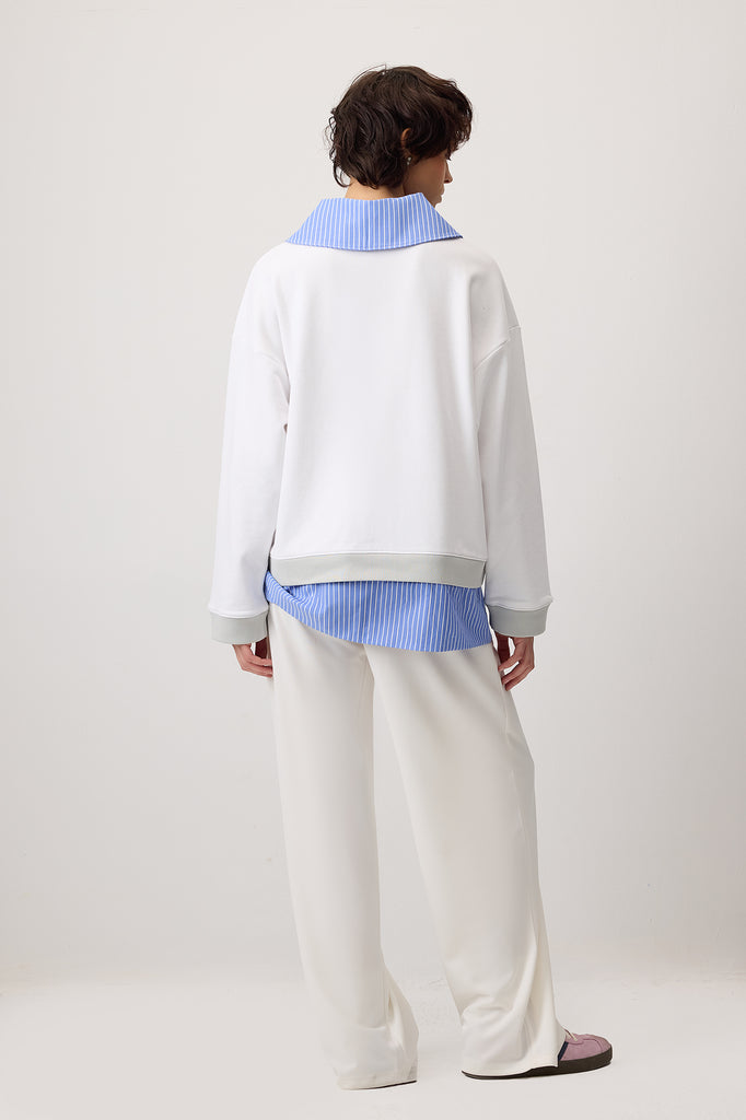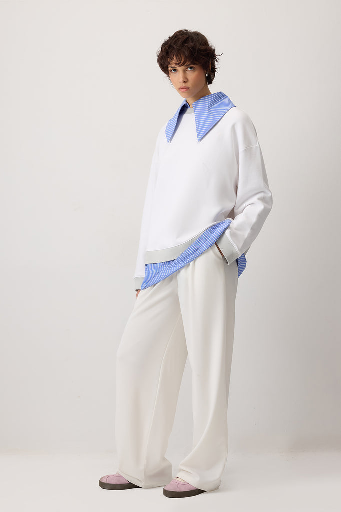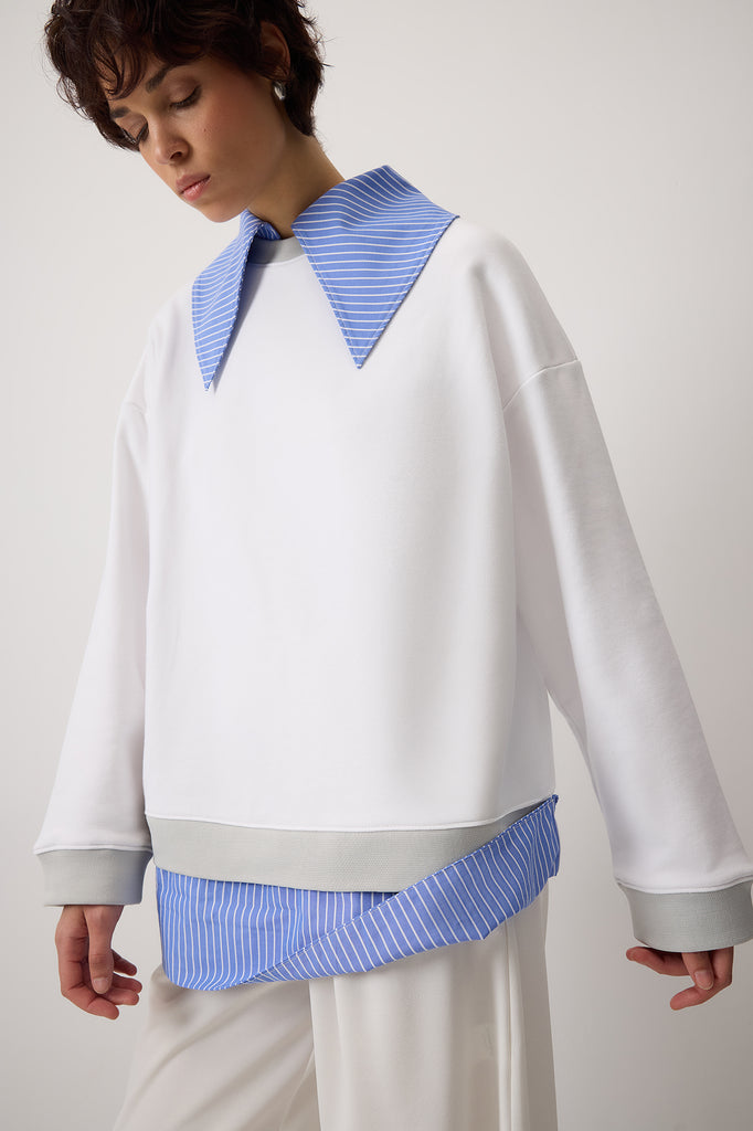 Klasik kontrast çizgili gömlek yakalı. Uzun kollu. Sweatshırt.